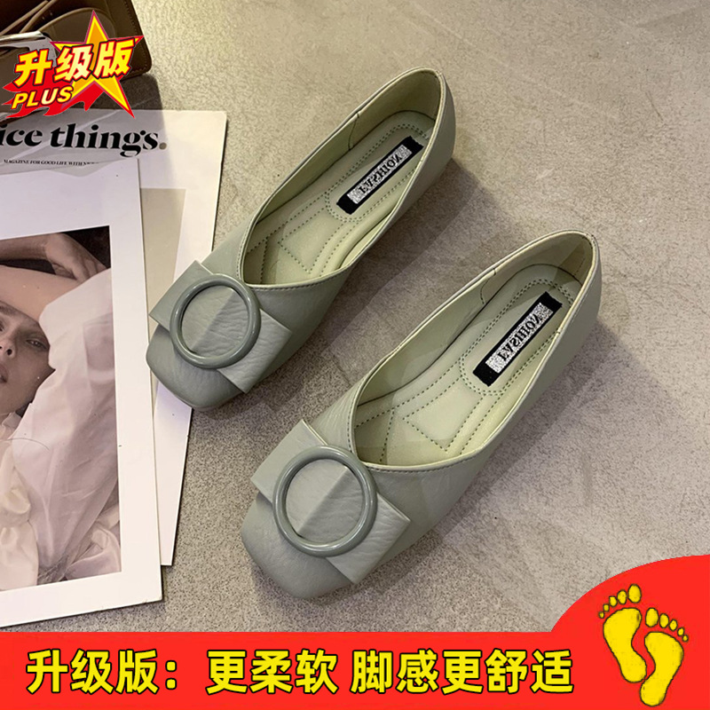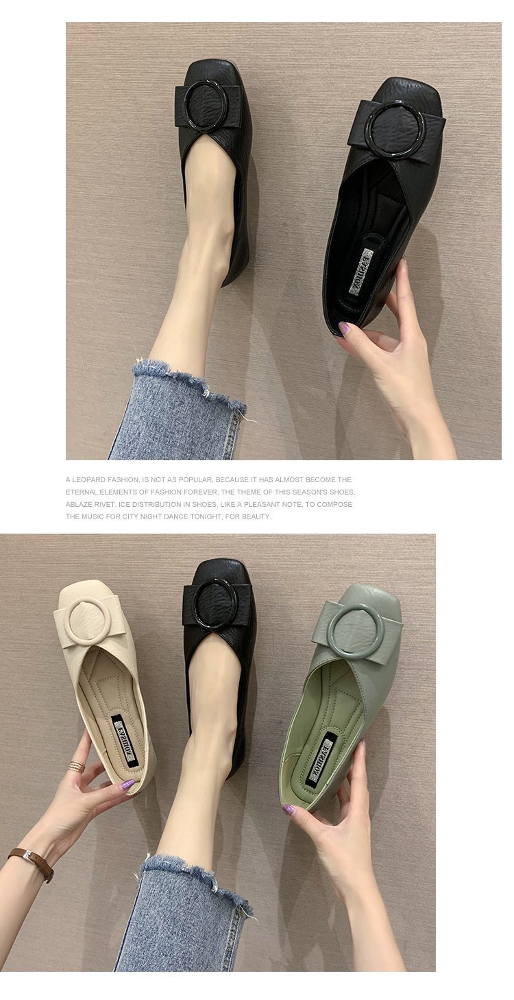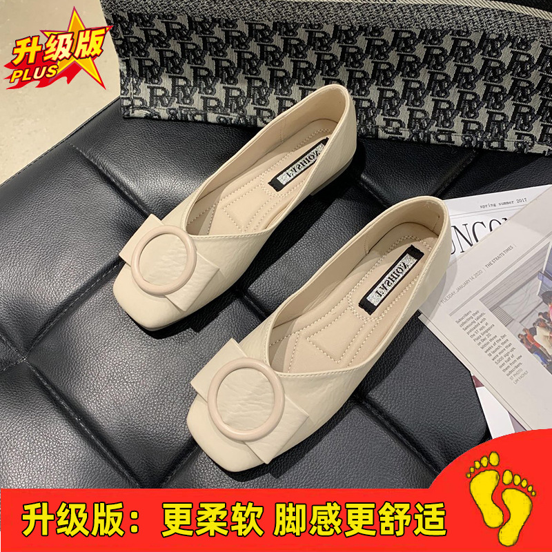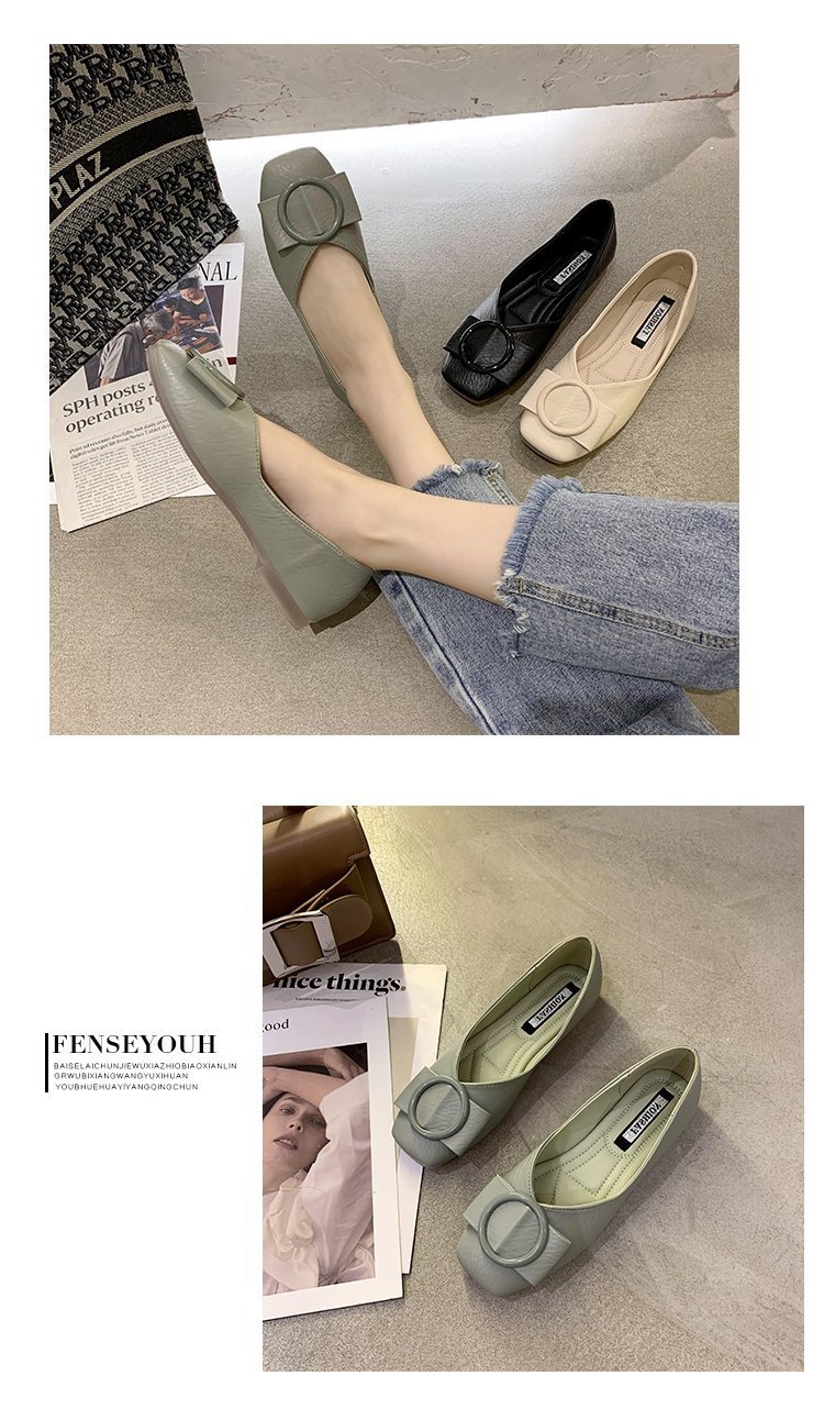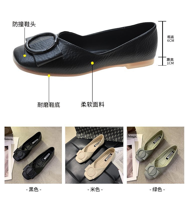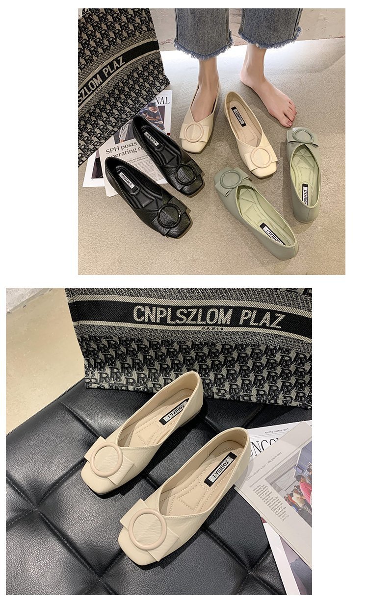 여성용 Doudou 신발 2025 봄, 가을 신상 얕은 앞코 사각 발가락 신발, 부드러운 밑창, 다용도 검은색 작업화, 작업용 플랫 슈즈스토어 가기