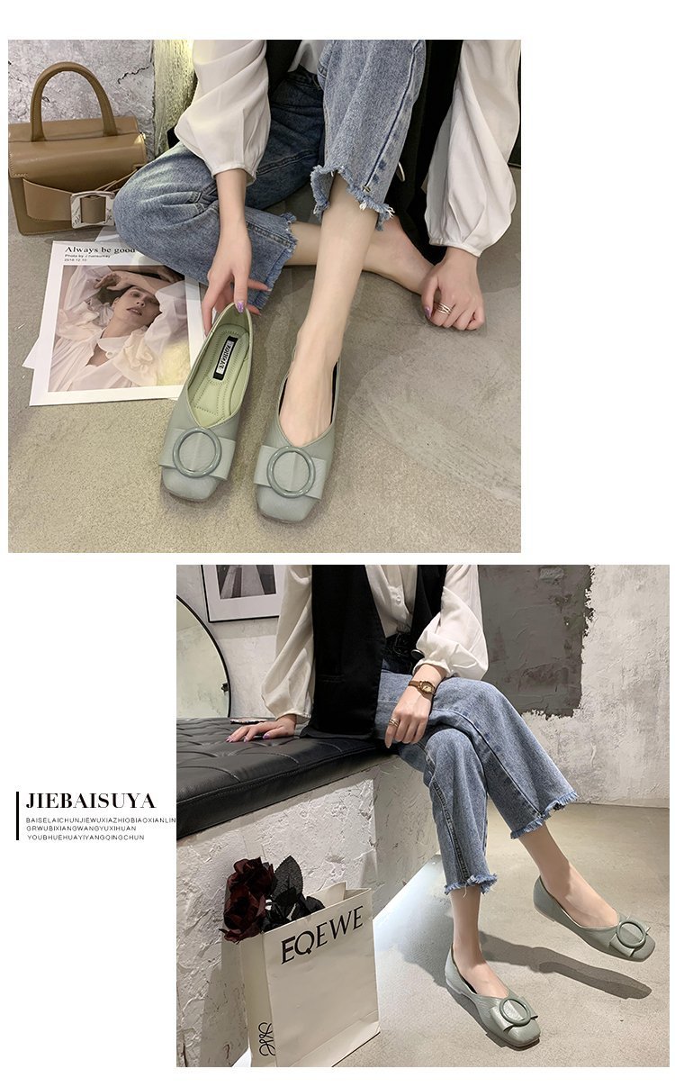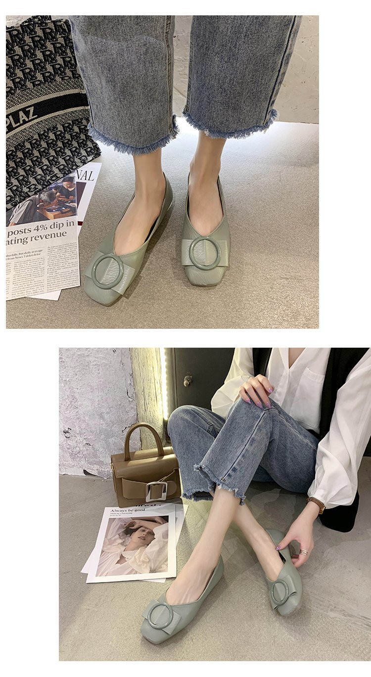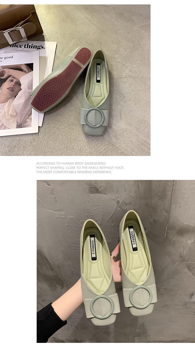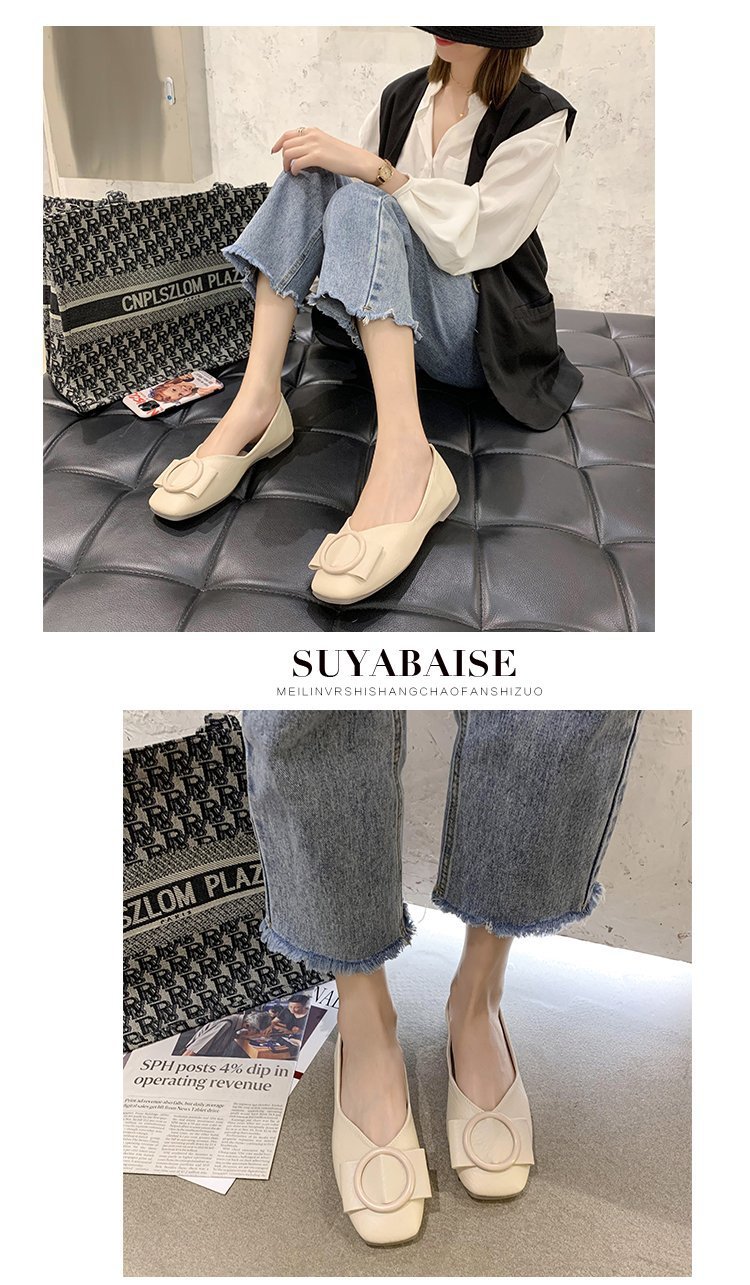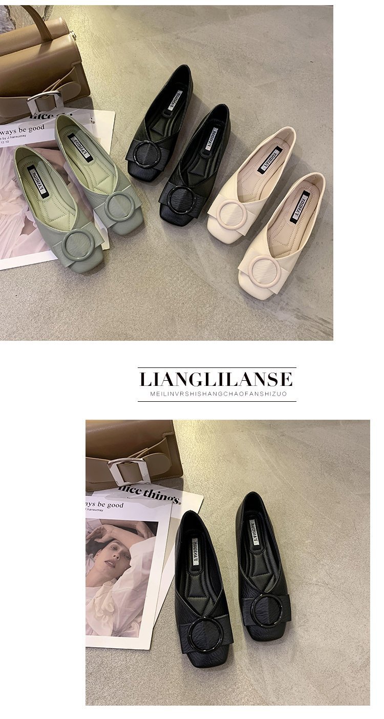 여성용 Doudou 신발 2025 봄, 가을 신상 얕은 앞코 사각 발가락 신발, 부드러운 밑창, 다용도 검은색 작업화, 작업용 플랫 슈즈스토어 가기