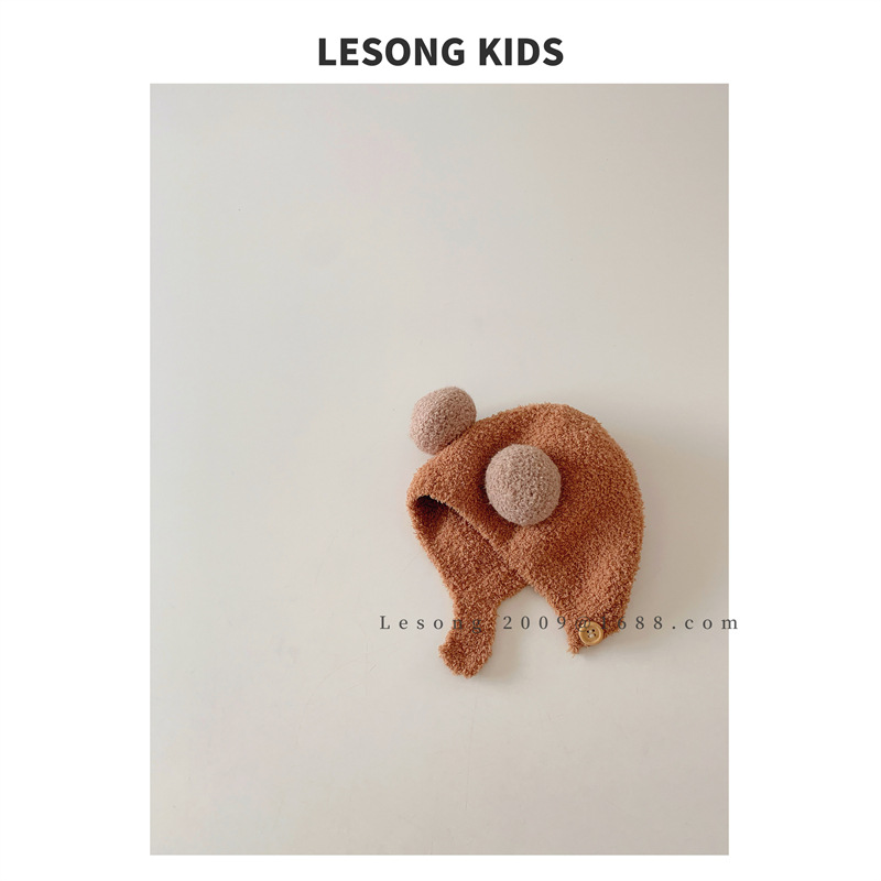 스타일 귀여운 공 ~ 어린이 스트랩 풀오버 모자 겨울 소년과 소녀 아기 귀 보호 따뜻한 아기 양모 모자