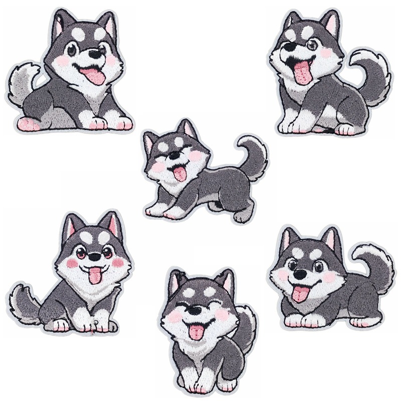Jiansing 재고 강아지 허스키 차이 개 수 놓은 천 스티커 컴퓨터 자수 라벨 옷 장식 패치 원본스토어 가기