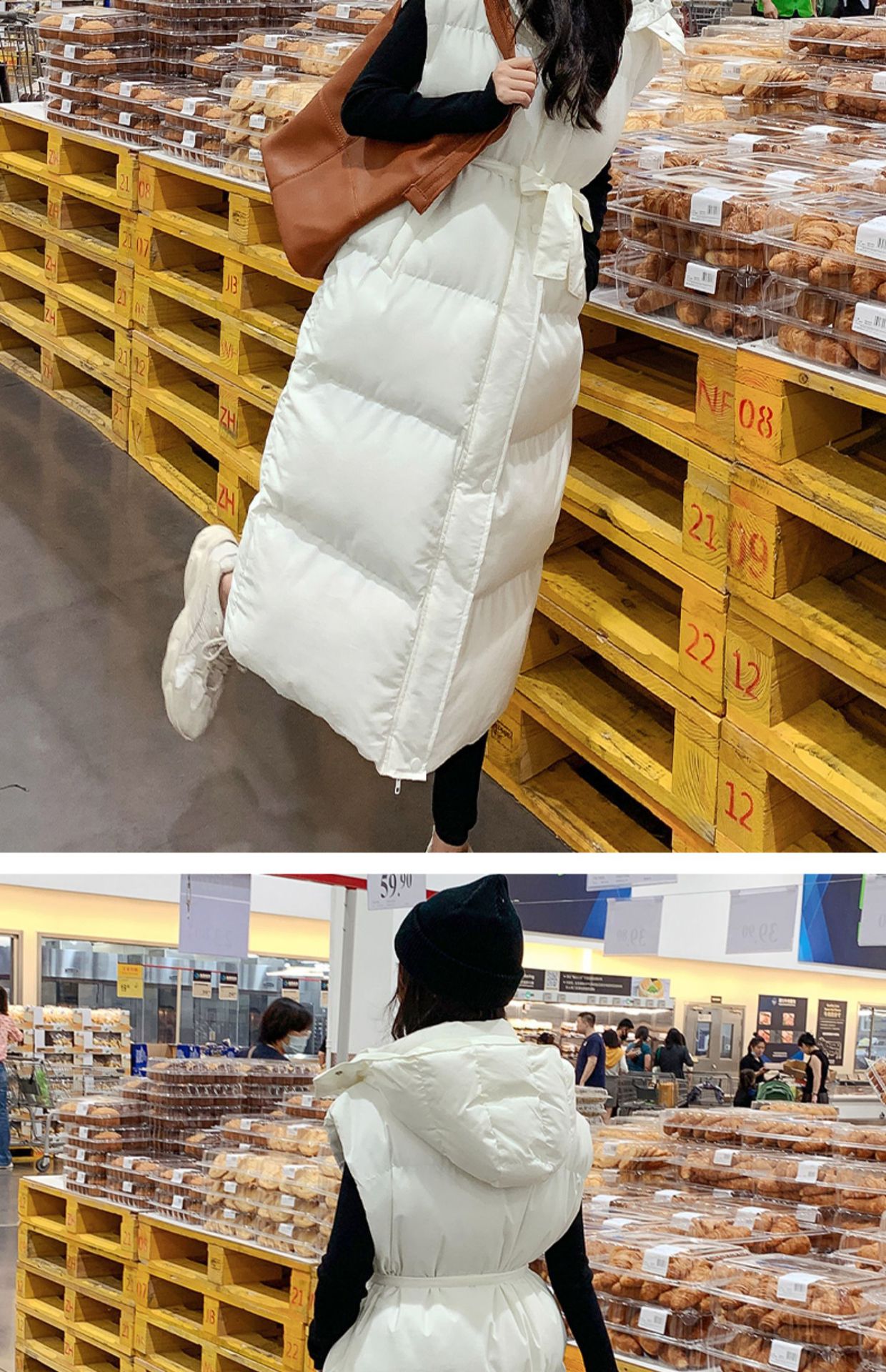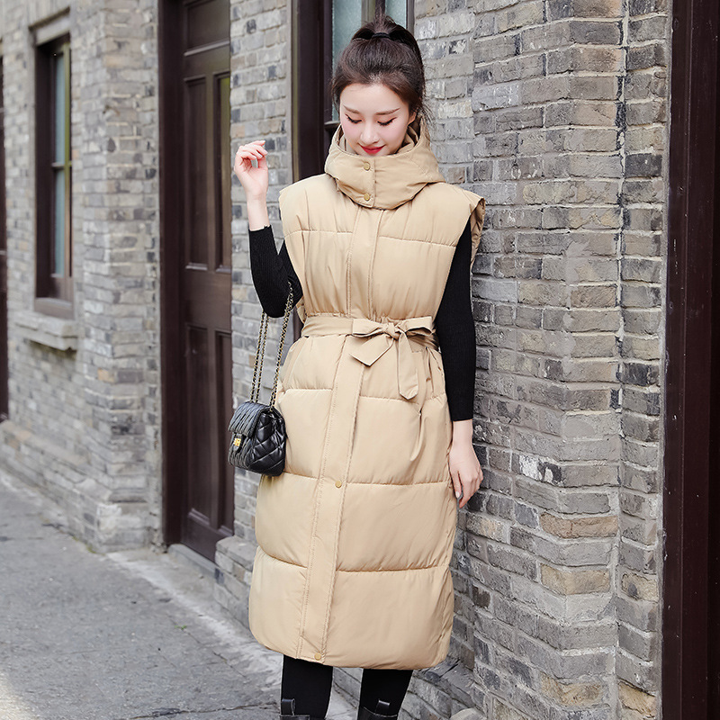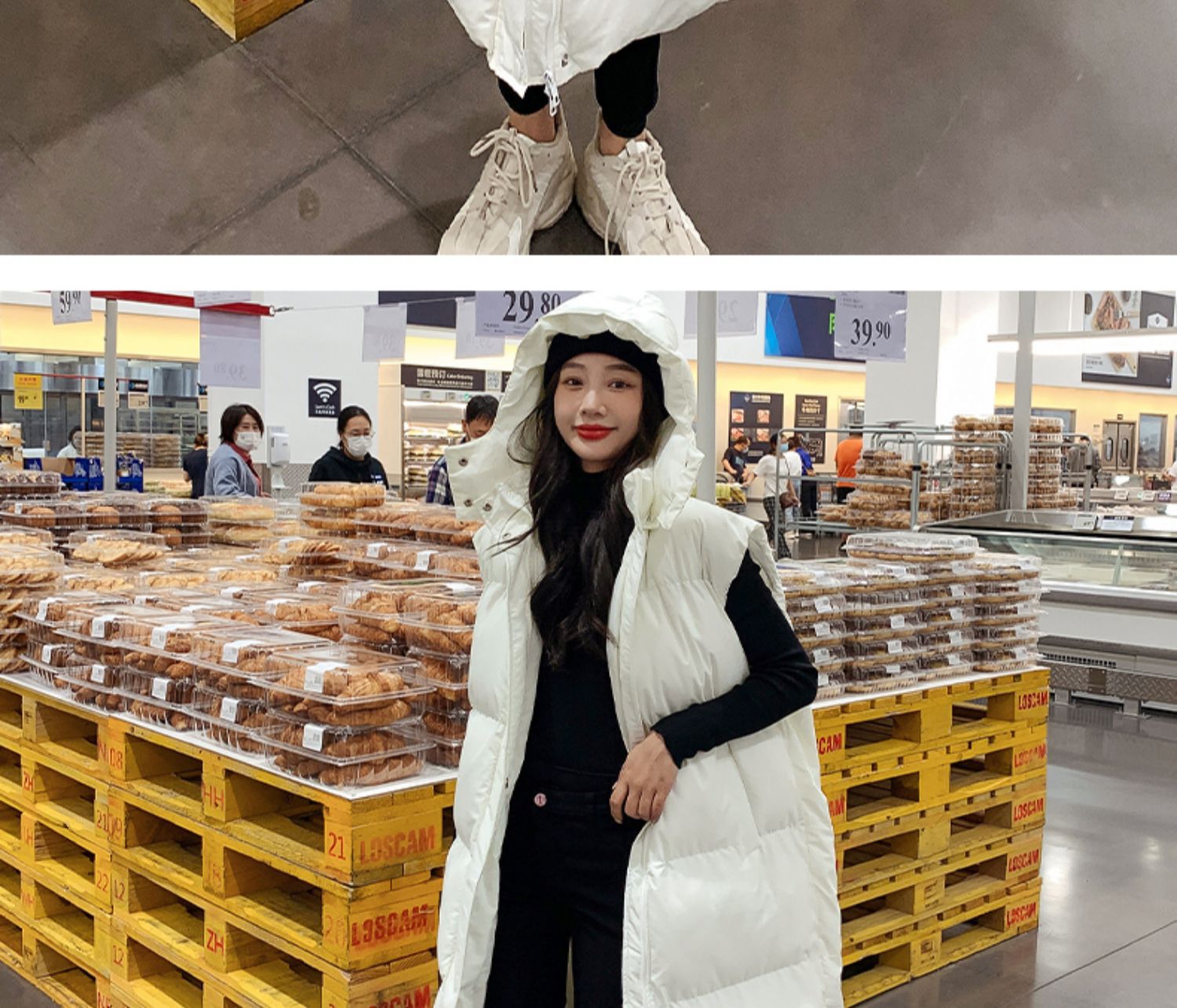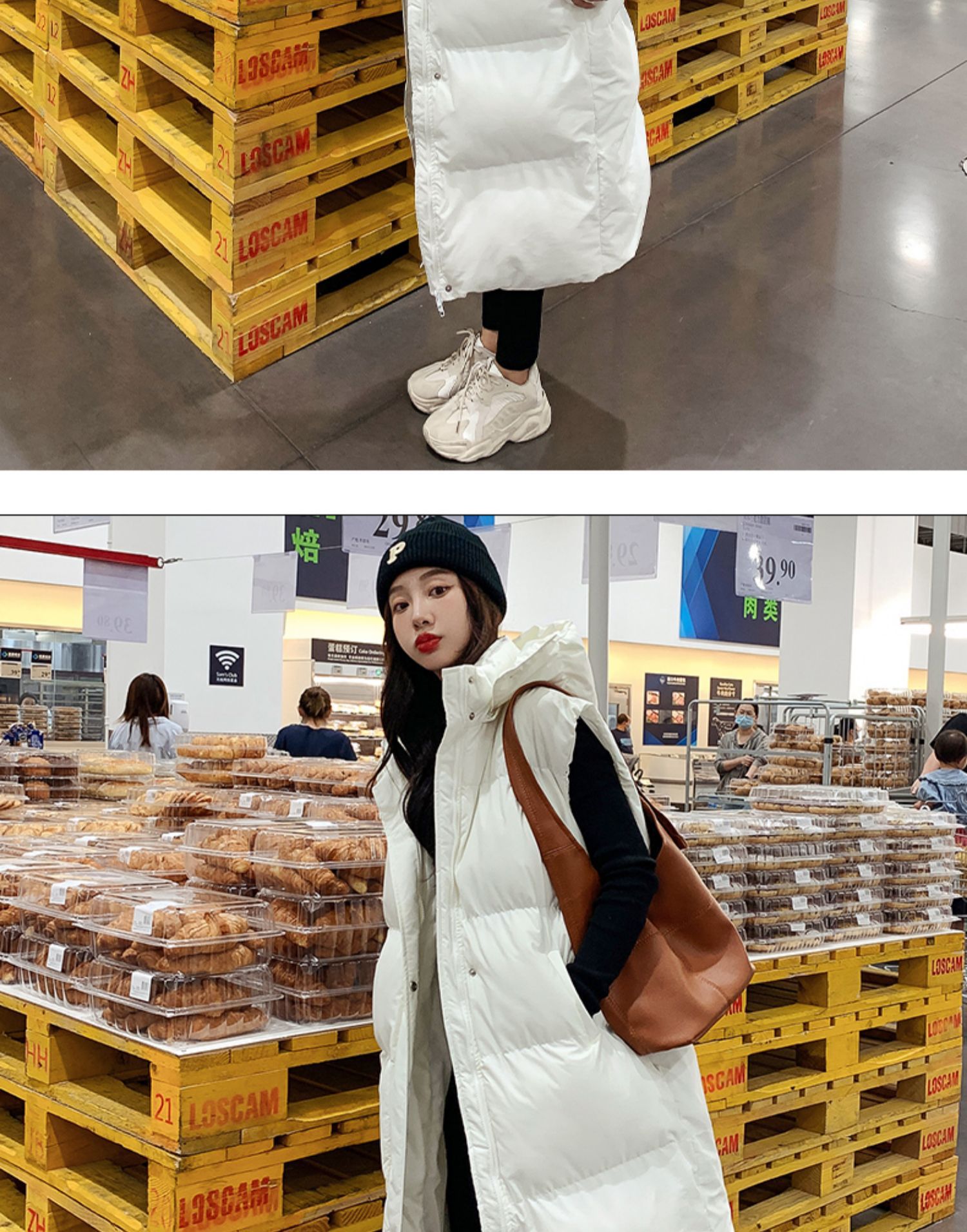 외국 무역용 무릎 위 길이의 여성용 후드 코튼 조끼 2023 겨울 다운 코튼 조끼 외투 우아한 디자인스토어 가기