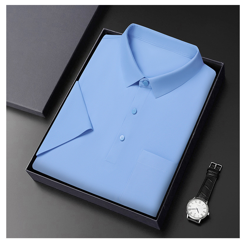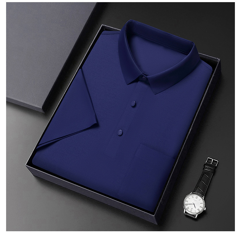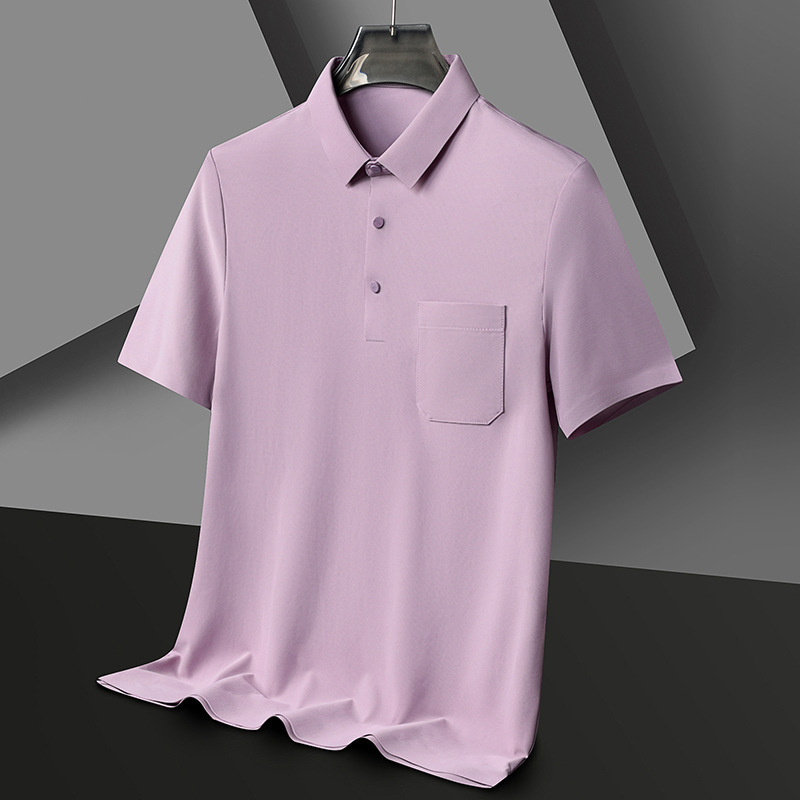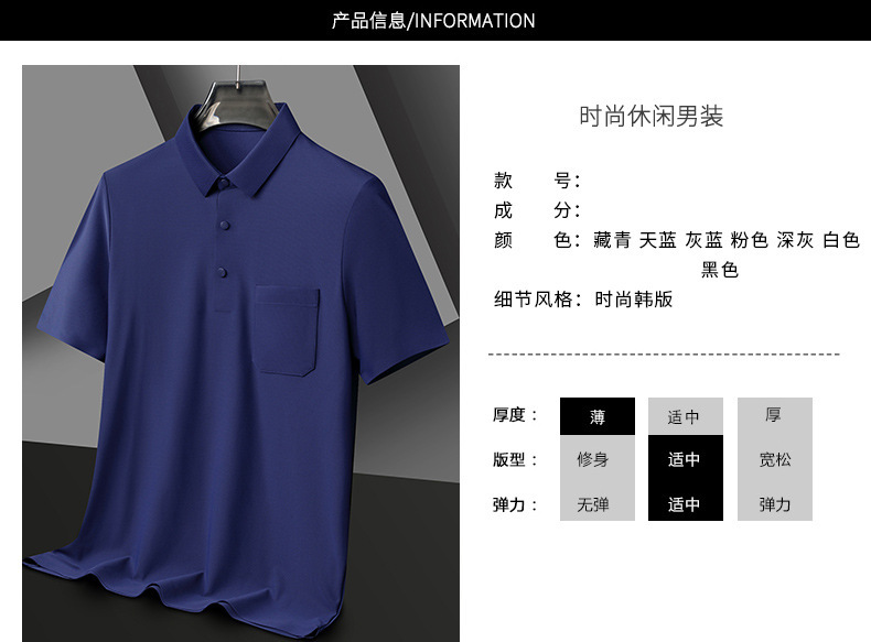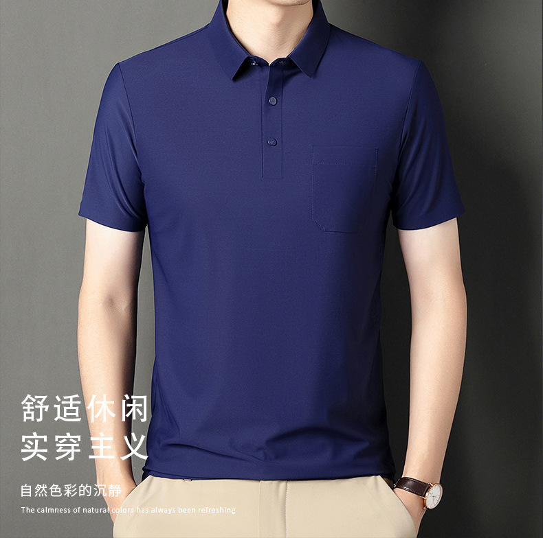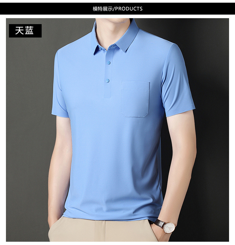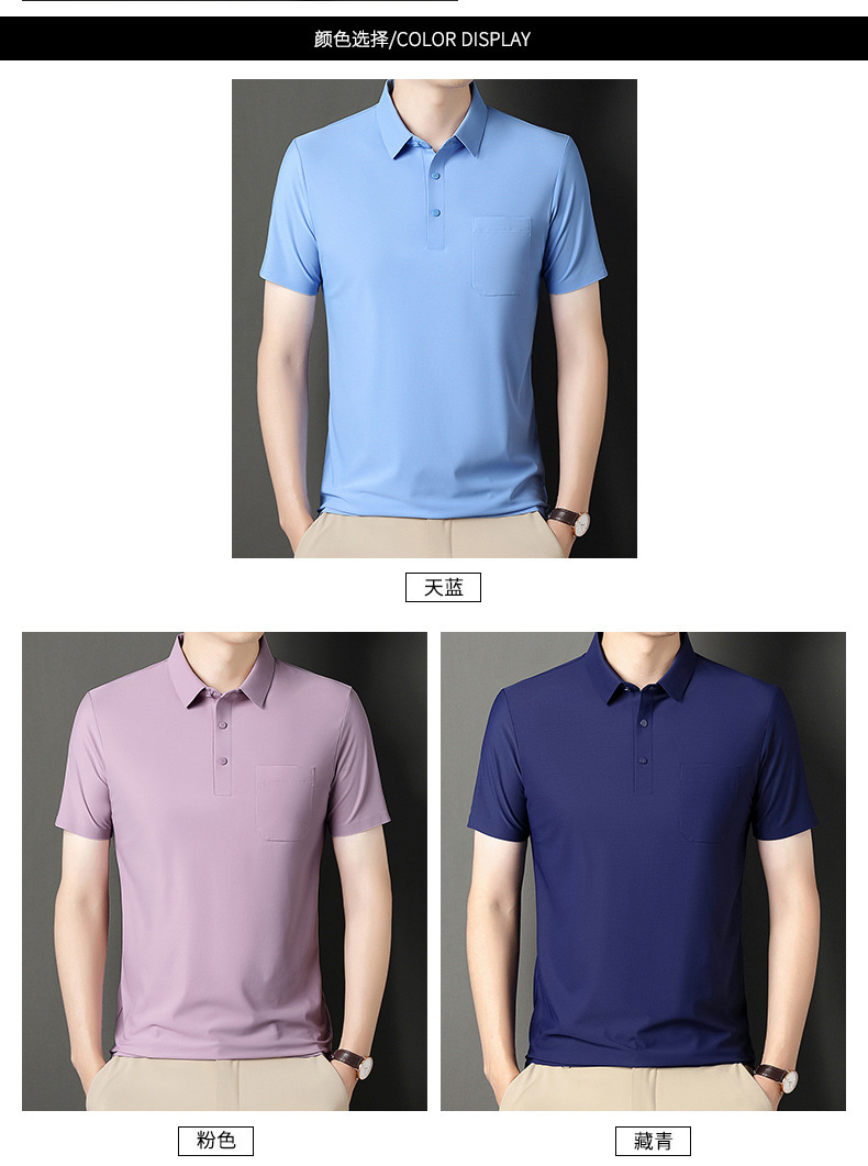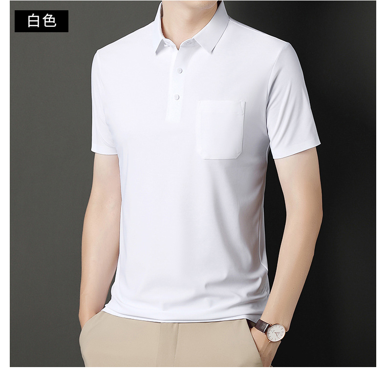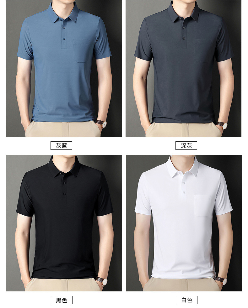 无痕短袖Polo衫男夏季T恤真口袋上衣纯色商务休闲男装薄款体恤衫