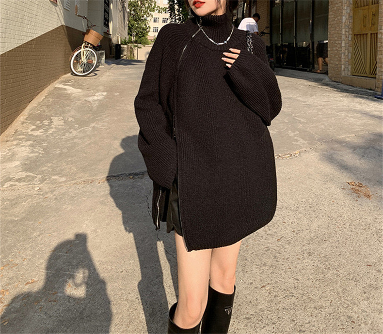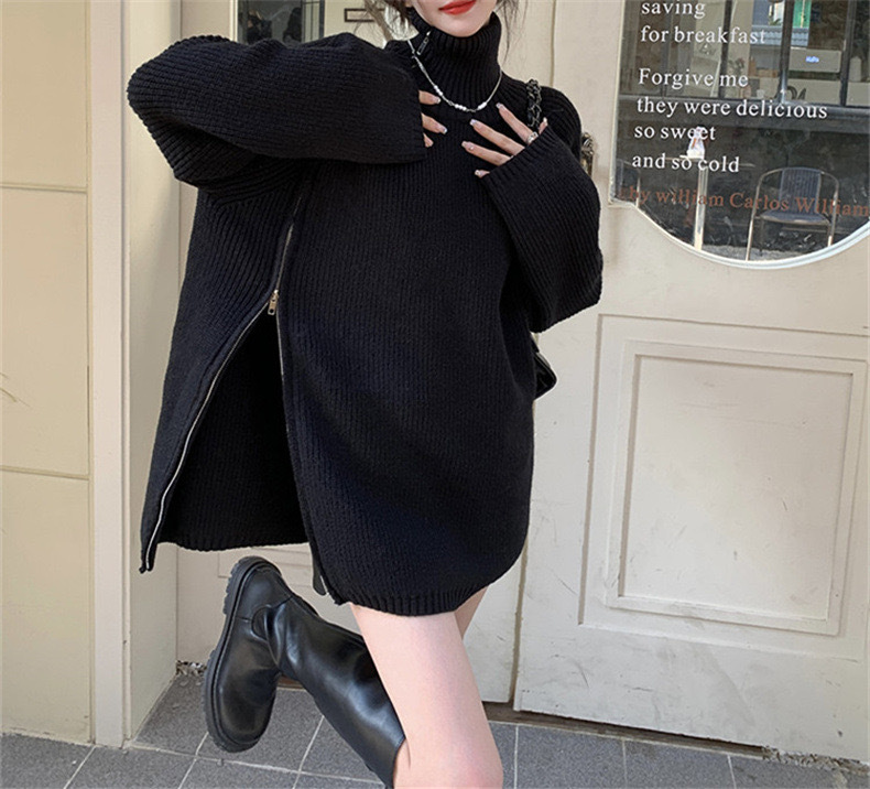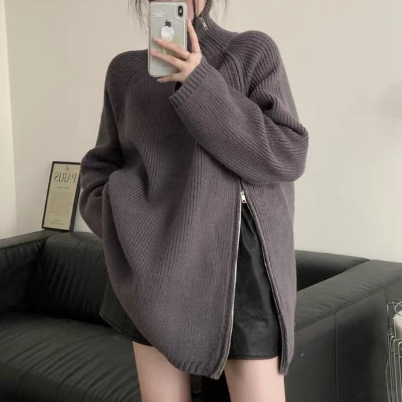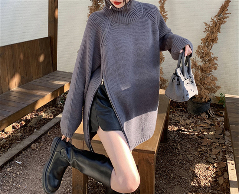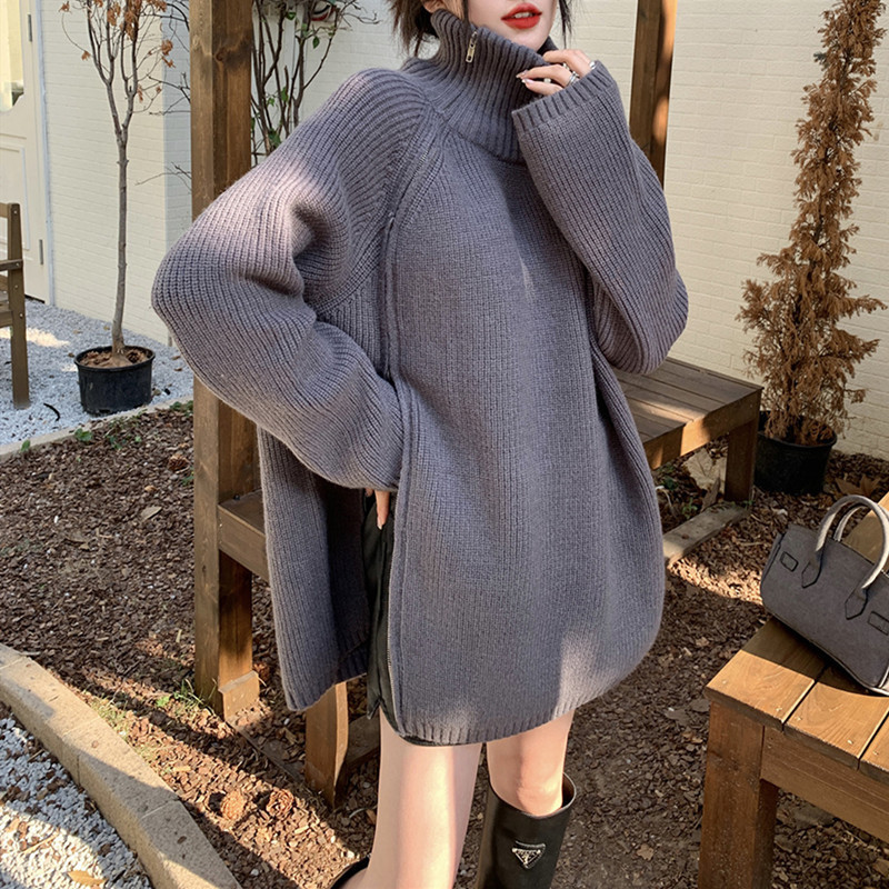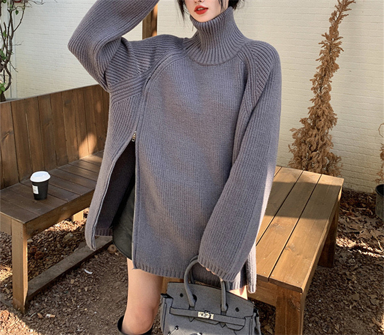 게으른 스타일 터틀넥 스웨터 여성의 겨울 한국식 2024 새로운 사이드 지퍼 디자인 느슨한 긴팔 스웨터스토어 가기