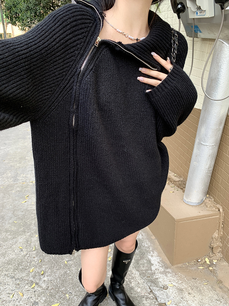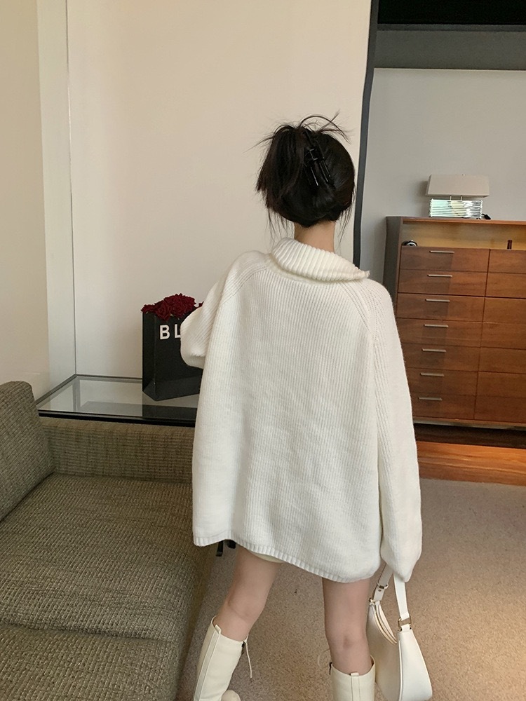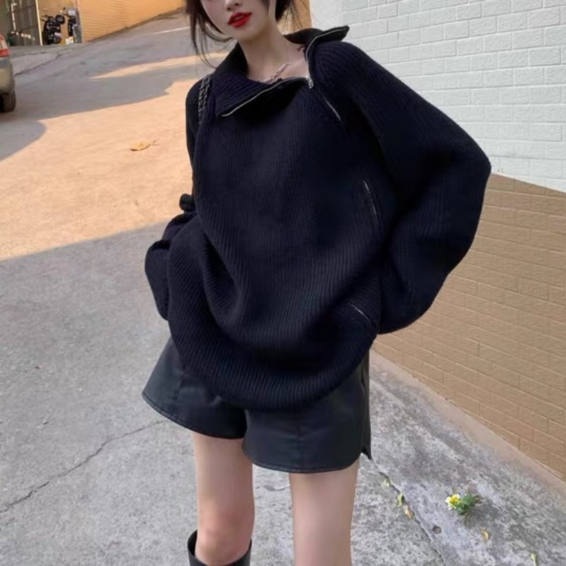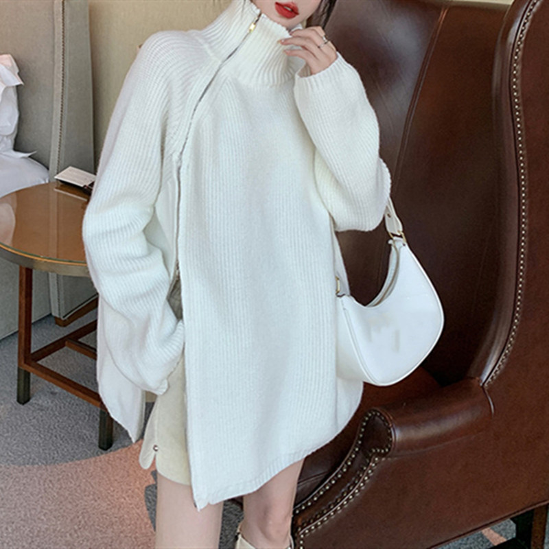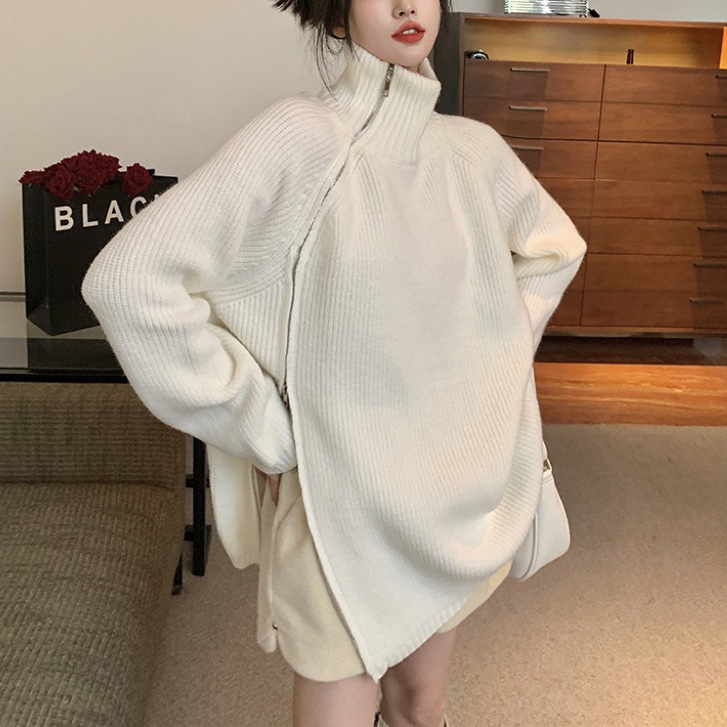 게으른 스타일 터틀넥 스웨터 여성의 겨울 한국식 2024 새로운 사이드 지퍼 디자인 느슨한 긴팔 스웨터스토어 가기