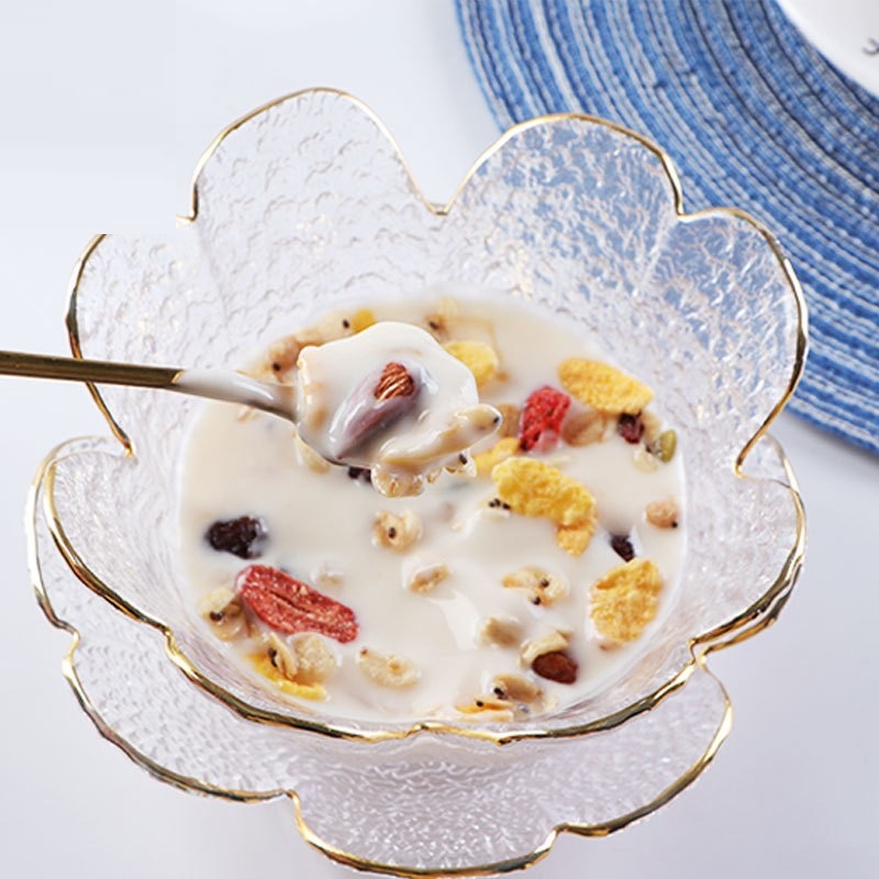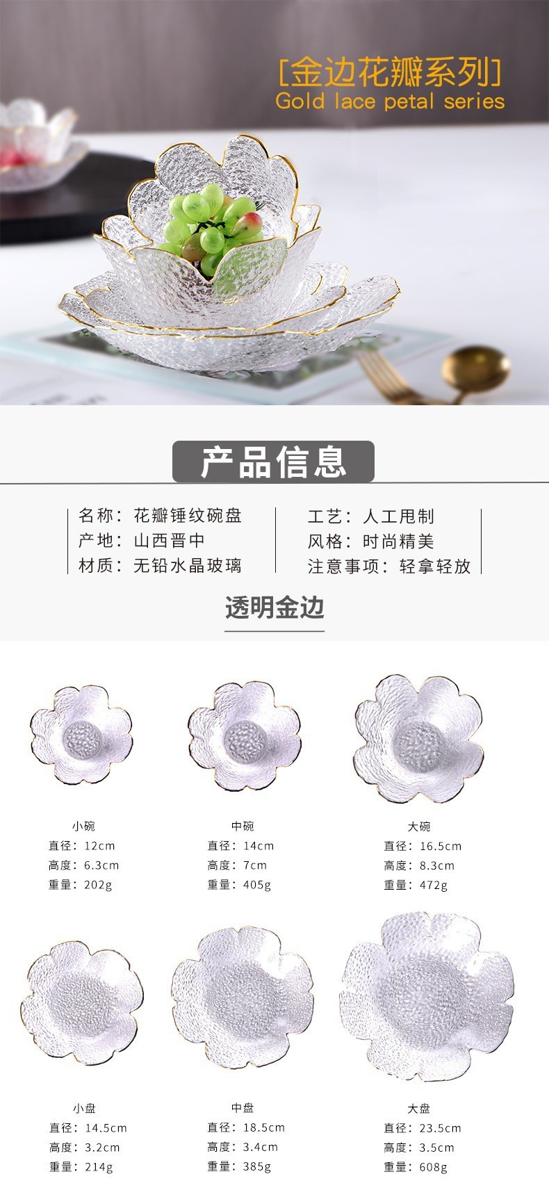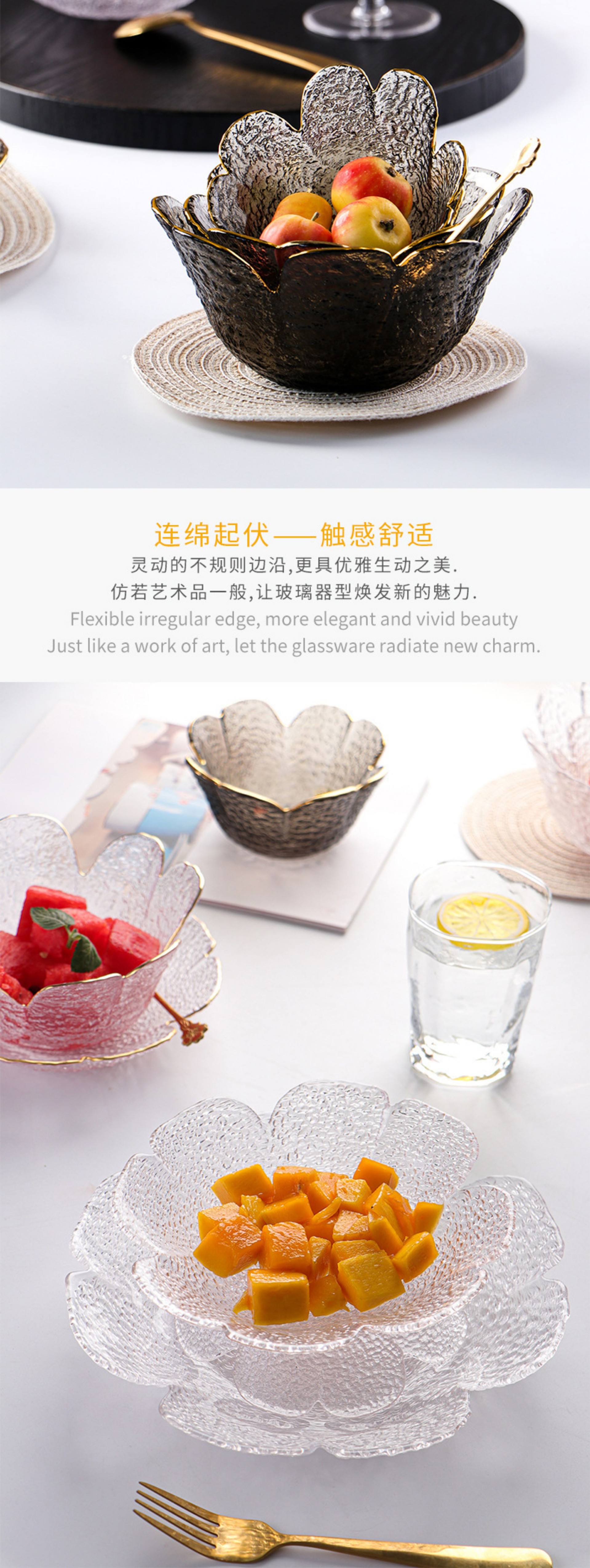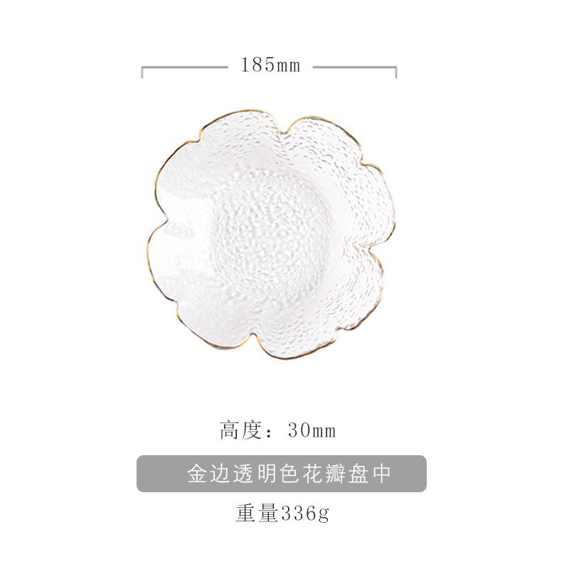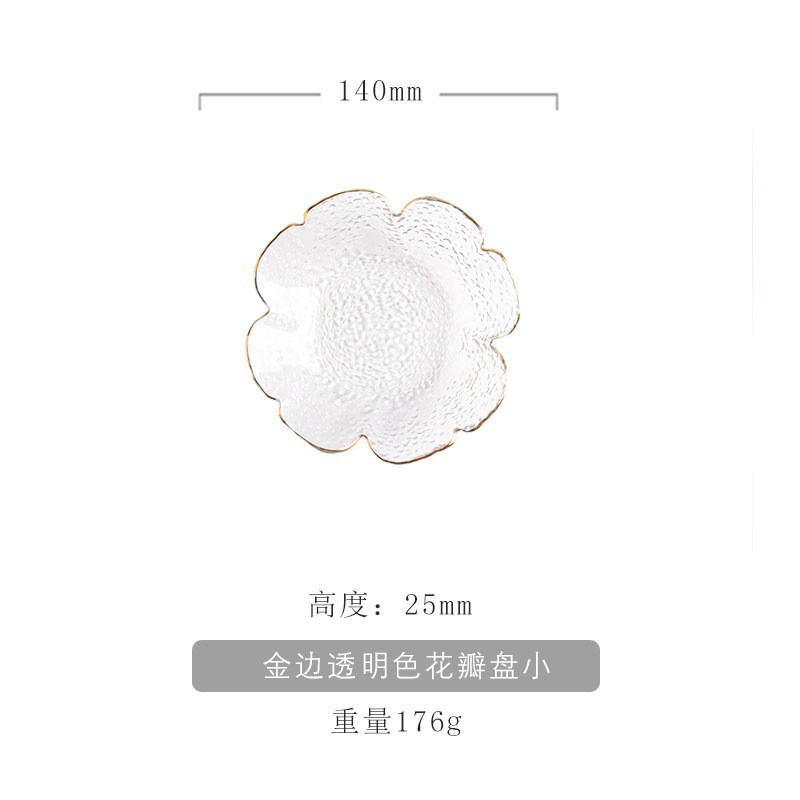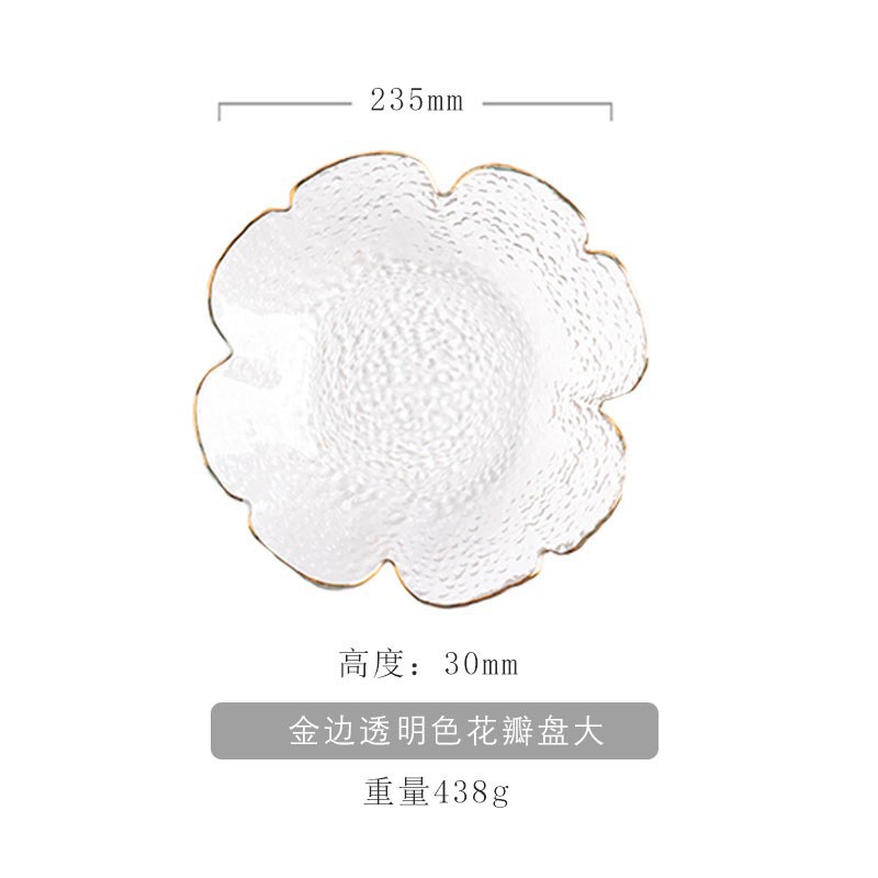 금 추적 네 잎 잔디 꽃잎 접시 유리 접시 과일 접시 샐러드 접시 가정용 아침 식사 접시 작은 접시 유리 식기스토어 가기