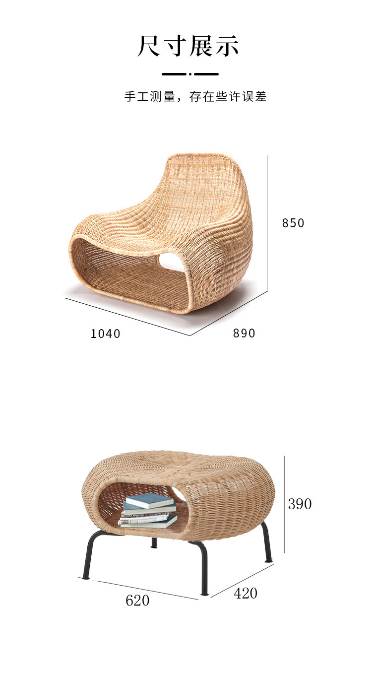 야외 등나무 소파 간단한 레저 안뜰 홈스테이 호텔 발코니 창조적 인 알루미늄 등나무 의자 소파 가구