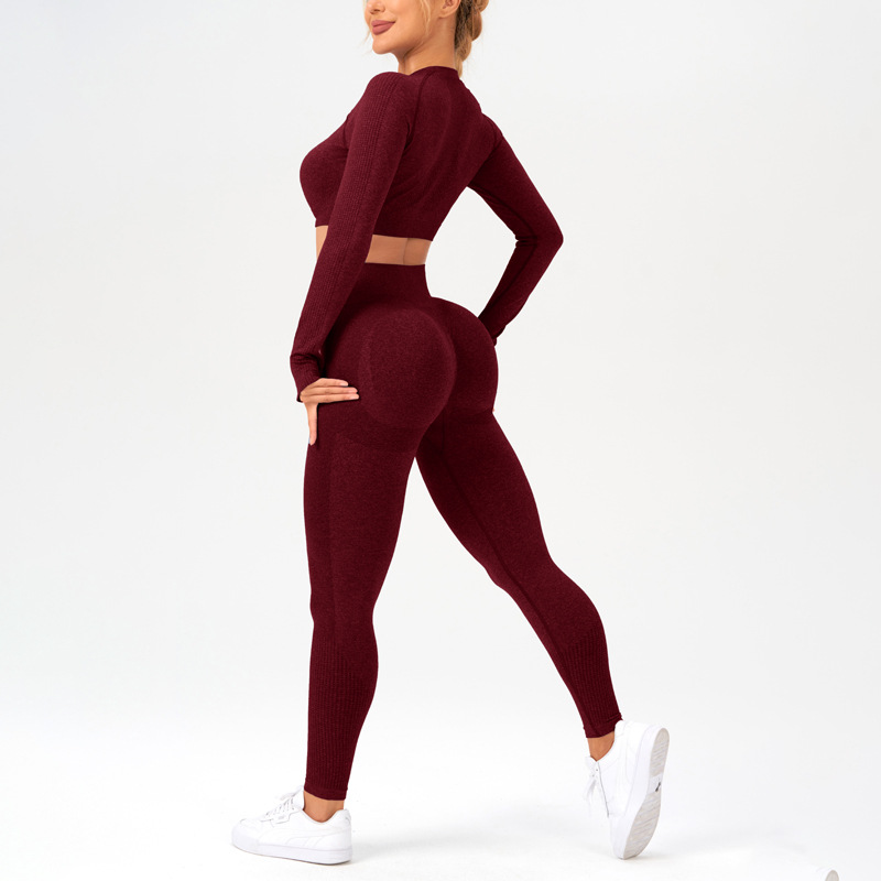 크로스-border 원활한 니트 요가 세트 세트 가을과 겨울 여성의 스포츠 피트니스 세트 세트 탑 긴 소매 꽉 요가 바지스토어 가기
