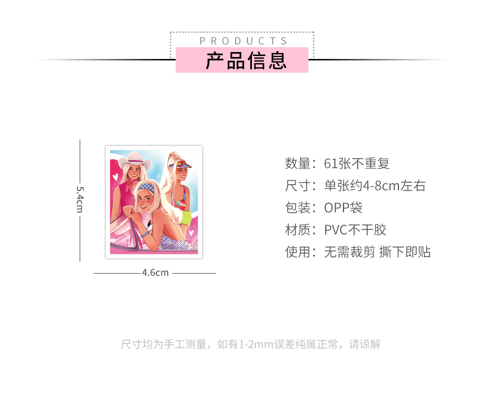 60/120 바비 인형 스티커 장식 노트북 수하물 손 계정 장난감 스티커 도매