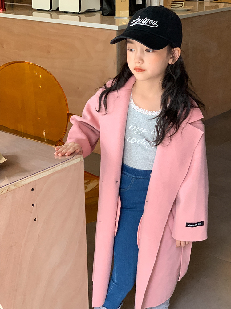 여아용 모직 코트 콩샤오메이 2025 가을 겨울 신상 아동 패션 양면 모직 중대형 아동용 롱 코트스토어 가기