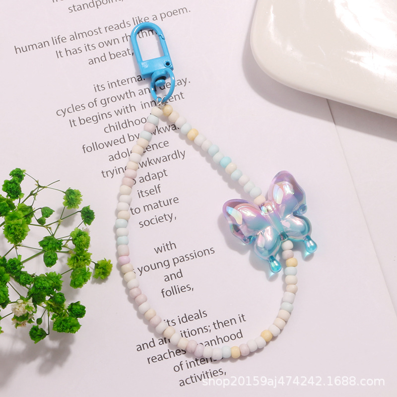 새로운 아크릴 그라디언트 나비 키 체인 펜던트 귀여운 색상 쌀 구슬 체인 액세서리 헤드셋 가방 장식스토어 가기