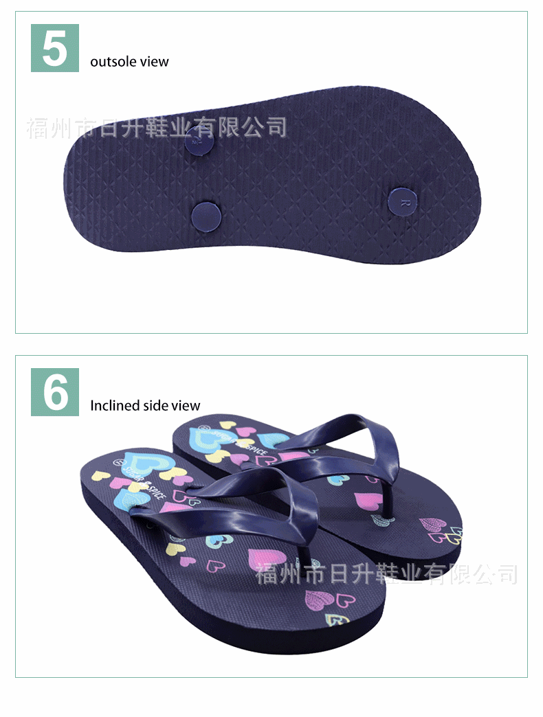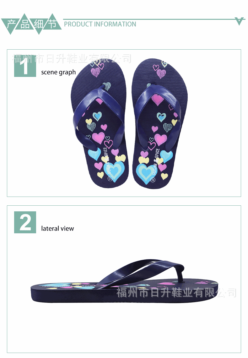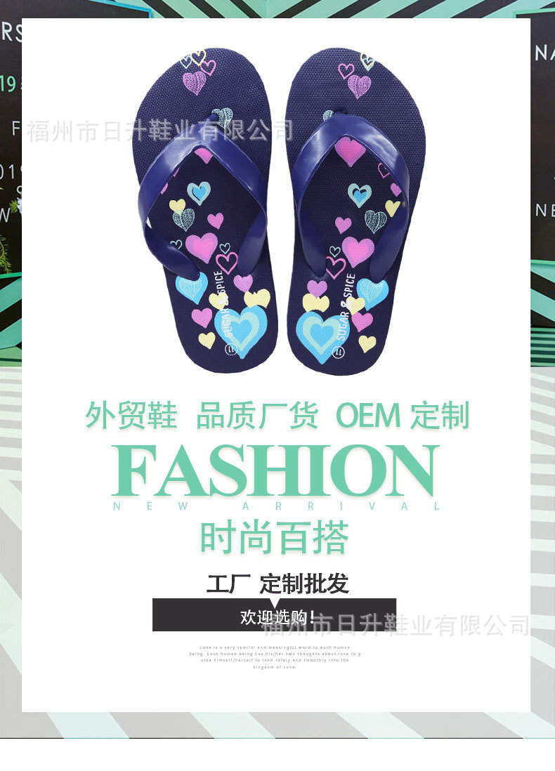 OEM 맞춤형 대외 무역 어린이 플립 플롭 소녀 사랑 패턴 PE 플랫 비치 슬리퍼 플립 플롭