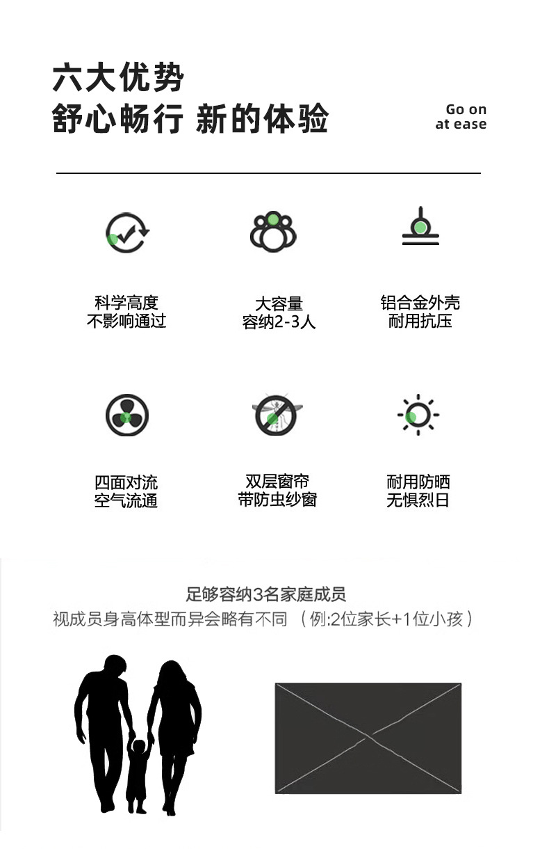 • 카키 1.4M 지붕 텐트 1.6*2.5M 측면 캐노피