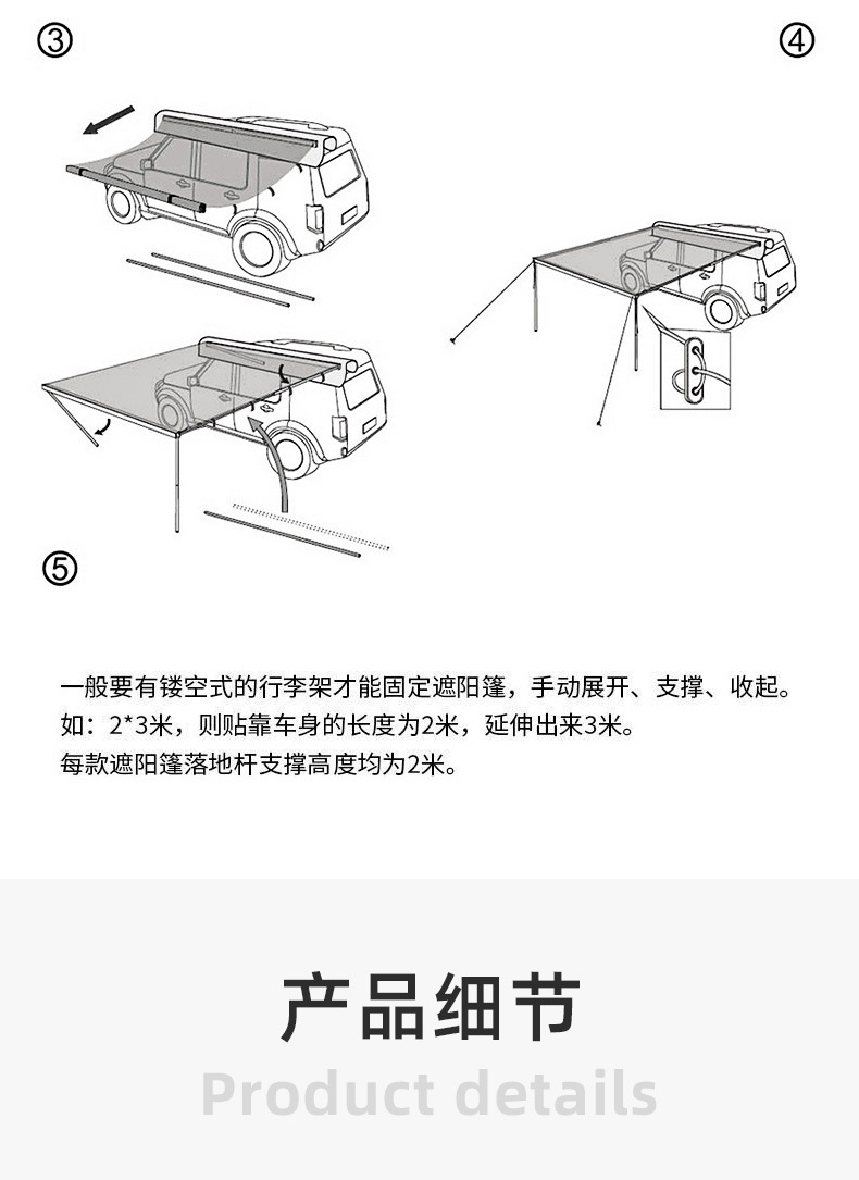 야외 오프로드 1.4m 긴 지붕 텐트 캠핑 캠핑 자동차 사이드 텐트 캐노피 휴대용 자동차 캐노피