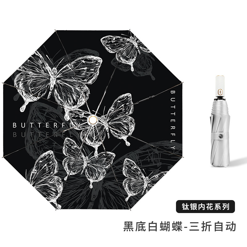 새로운 중국식 양산 우산 접는 우산 고급 써니 우산 이중 목적 완전 자동 안티 자외선 우산 컴팩트스토어 가기
