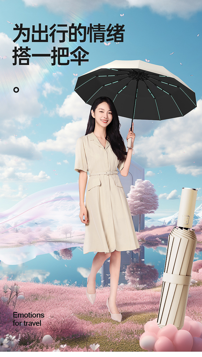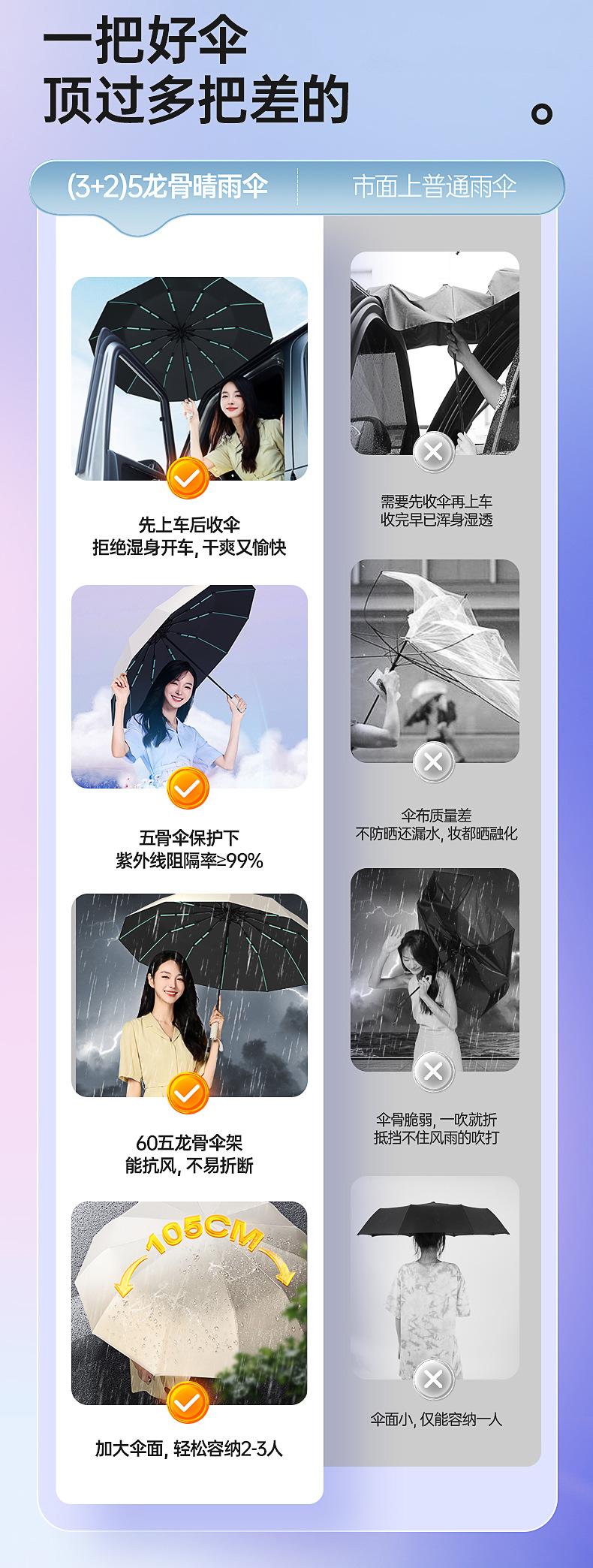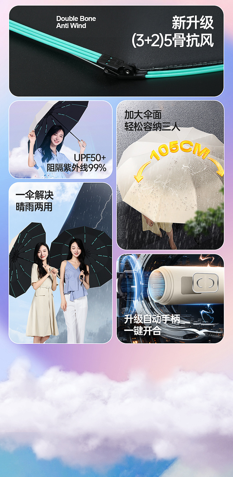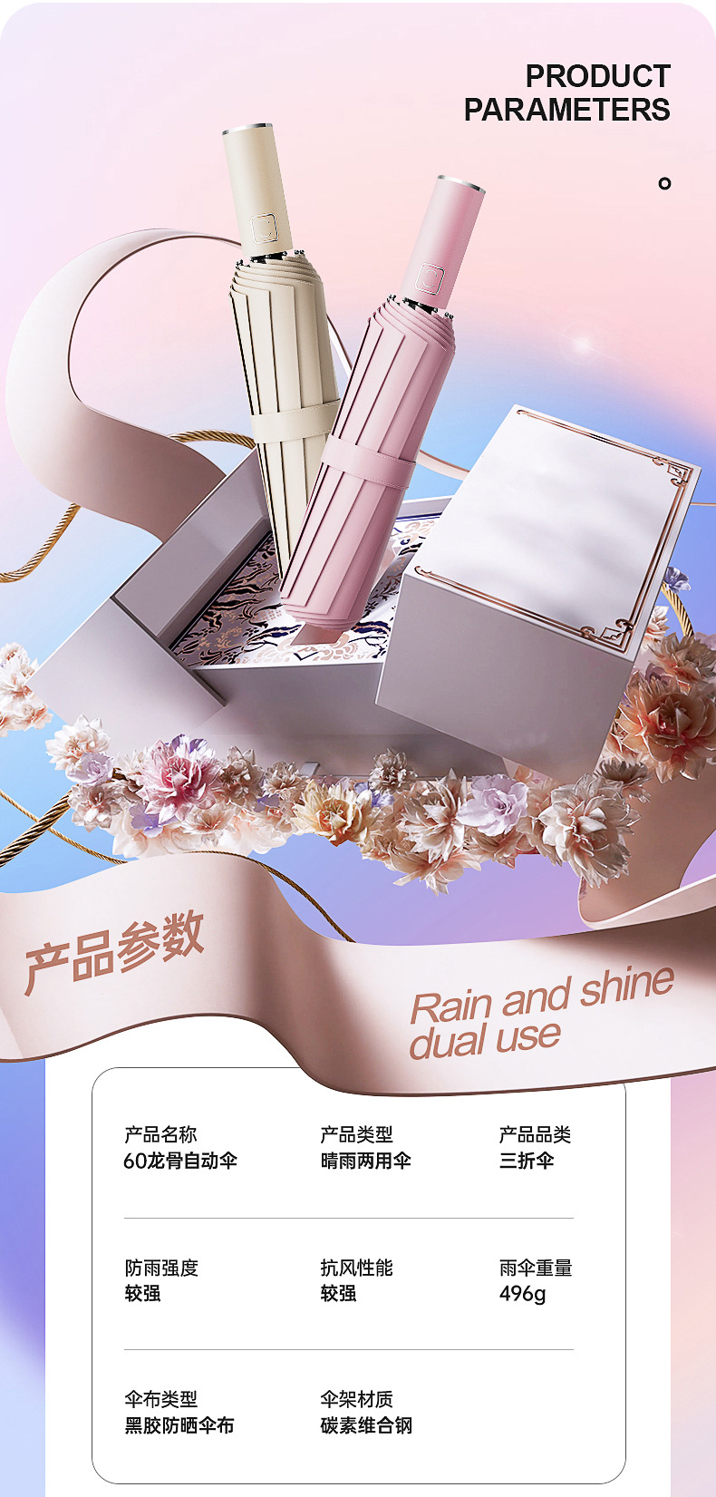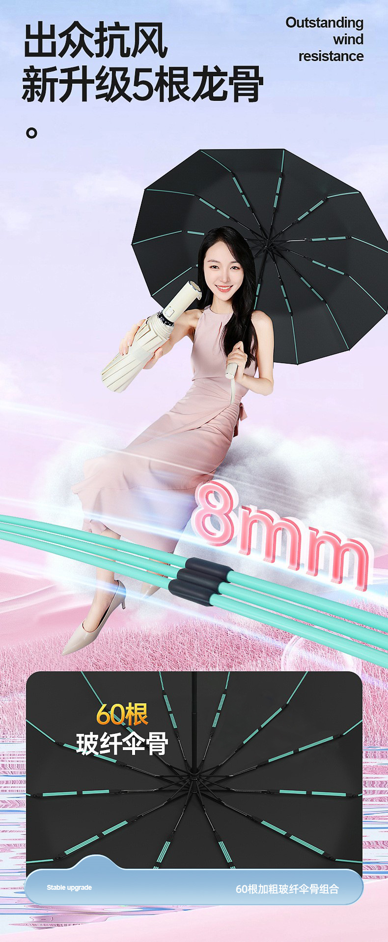 60 더블 드래곤 뼈 완전 자동 우산 남자의 맑고 비오는 이중 사용 접는 우산 더블 사이즈 여성의 태양 보호 광고