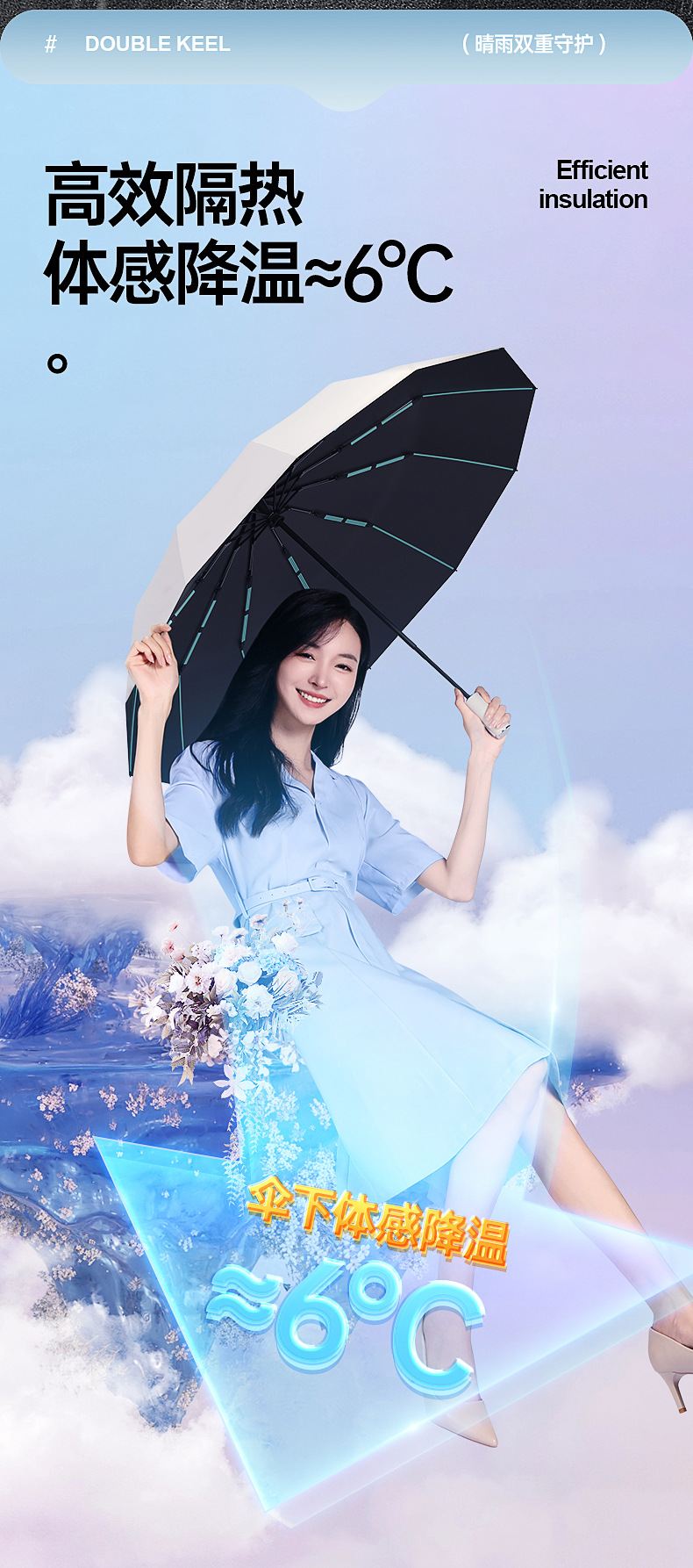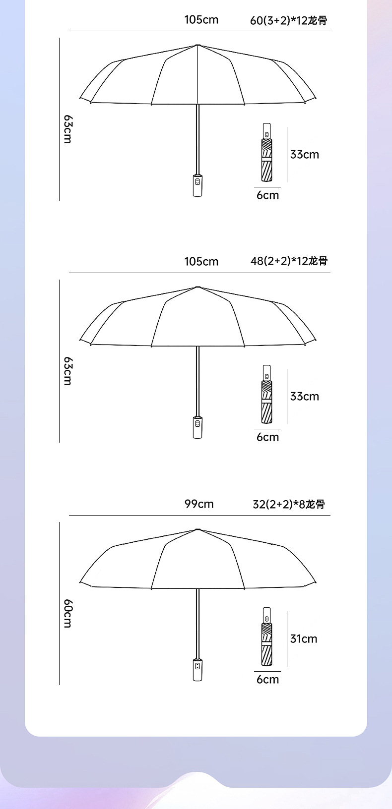 • [Zhen Xiang의 스타일] 하늘색 [60 3 2 바람 방지 우산 뼈] 선물 상자없이