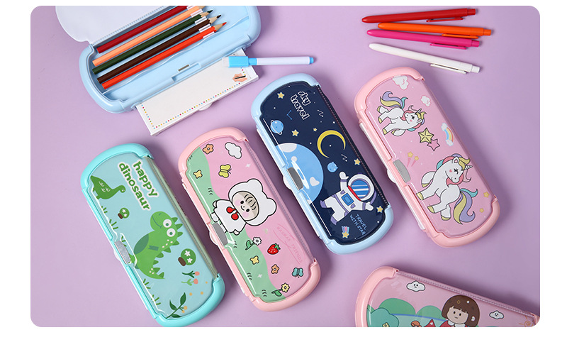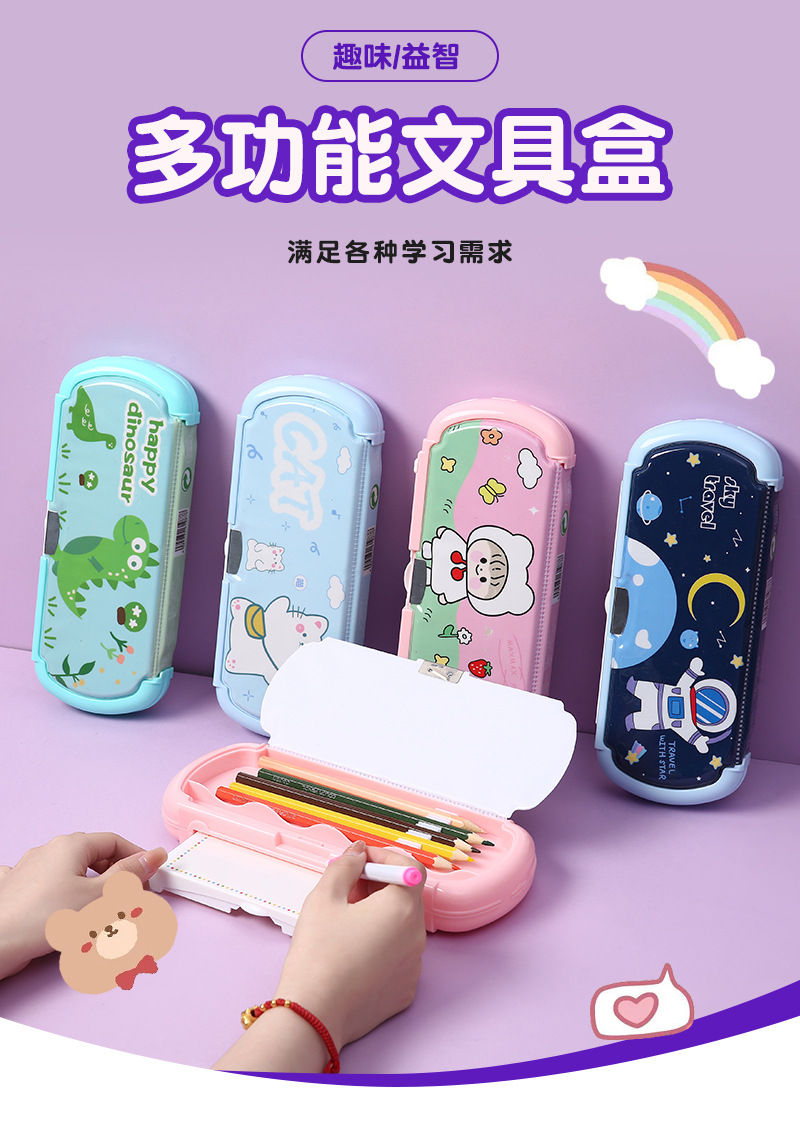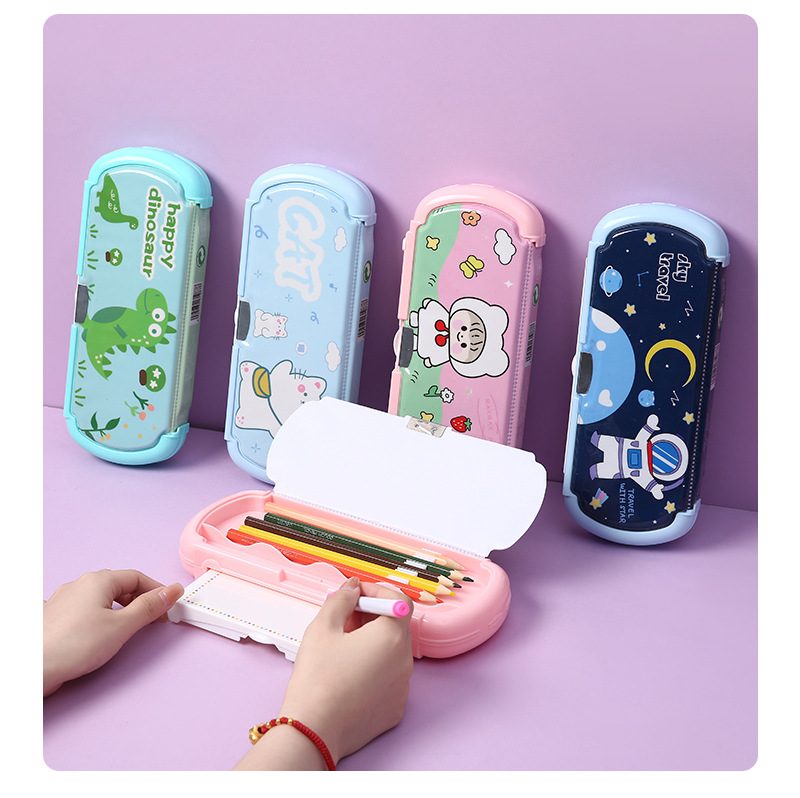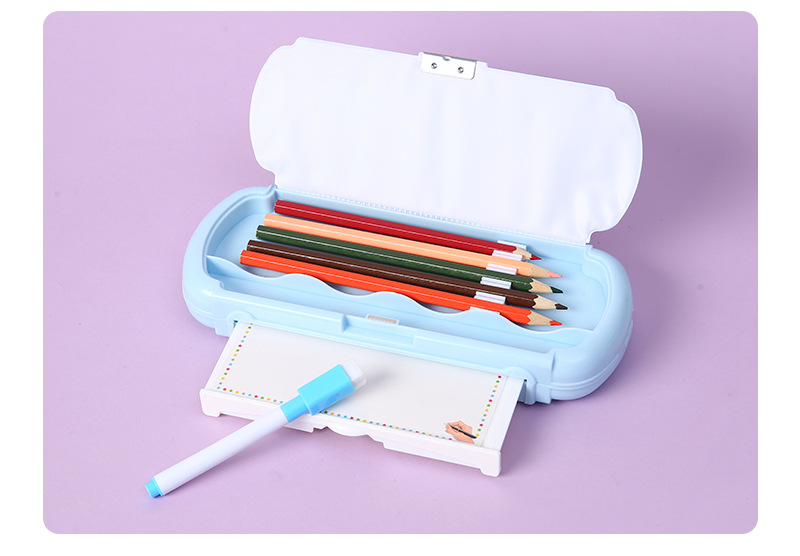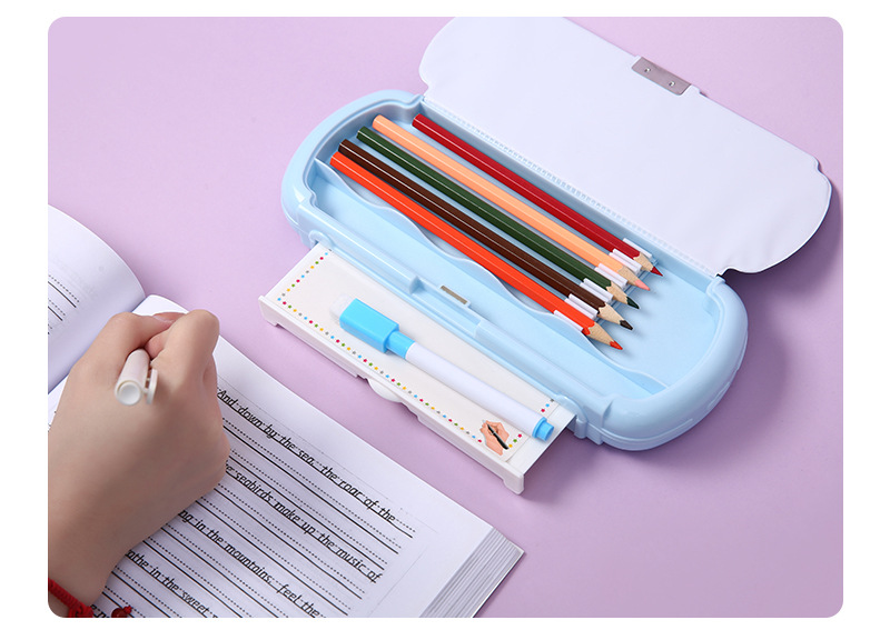 화이트 보드가있는 창조적 인 초등학교 학생 다기능 문구 상자 귀여운 높은 색상 가치 푸른 만화 어린이 연필 상자 도매스토어 가기