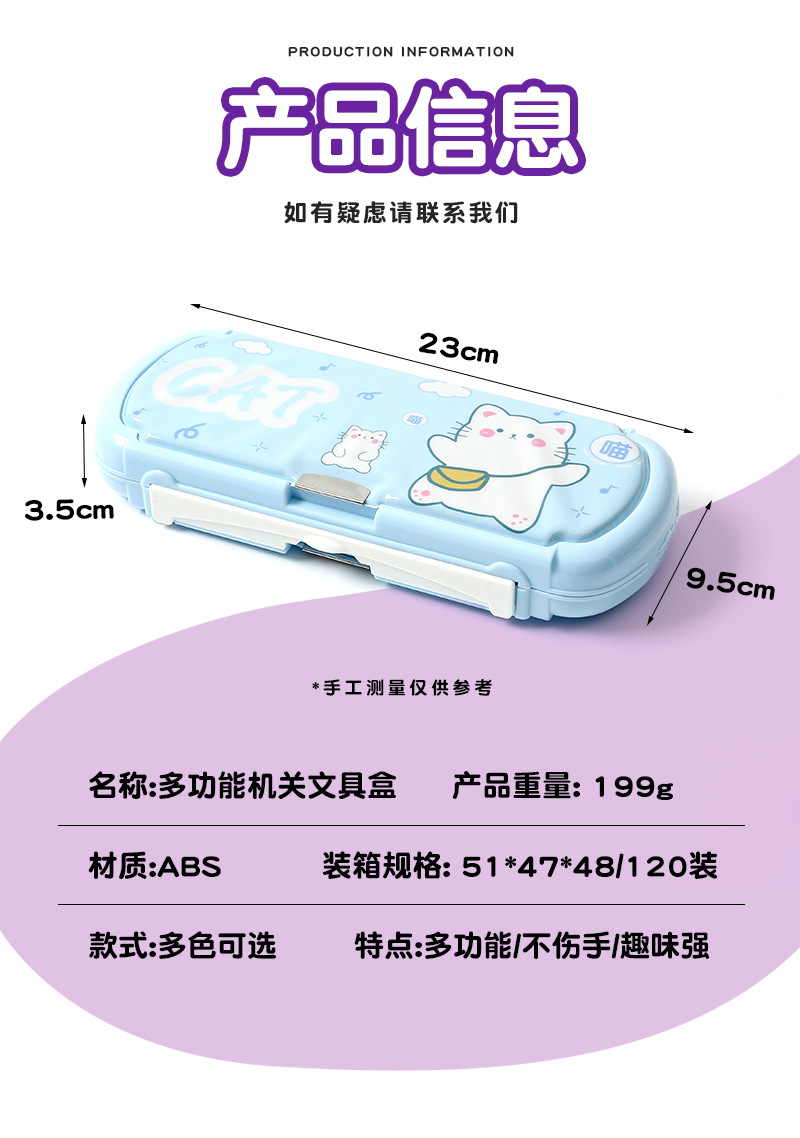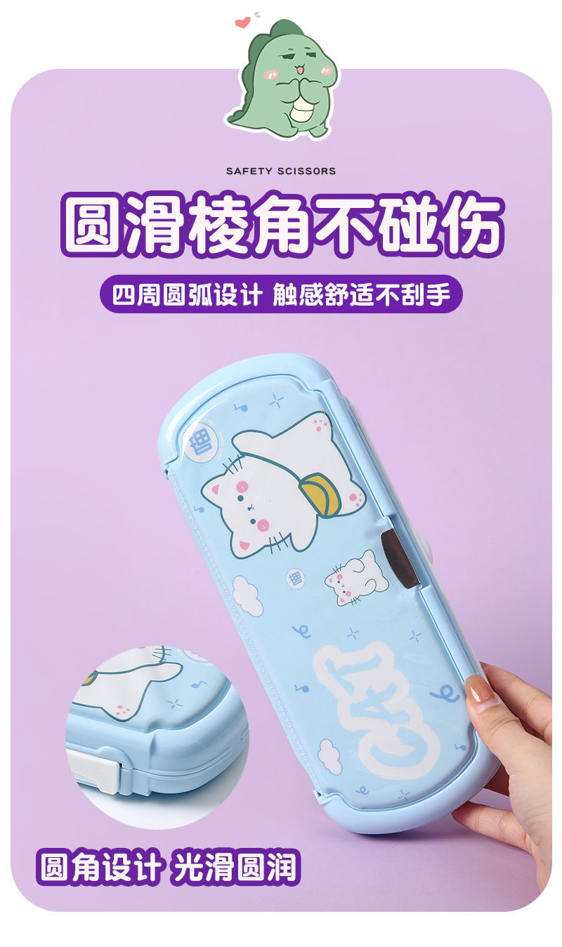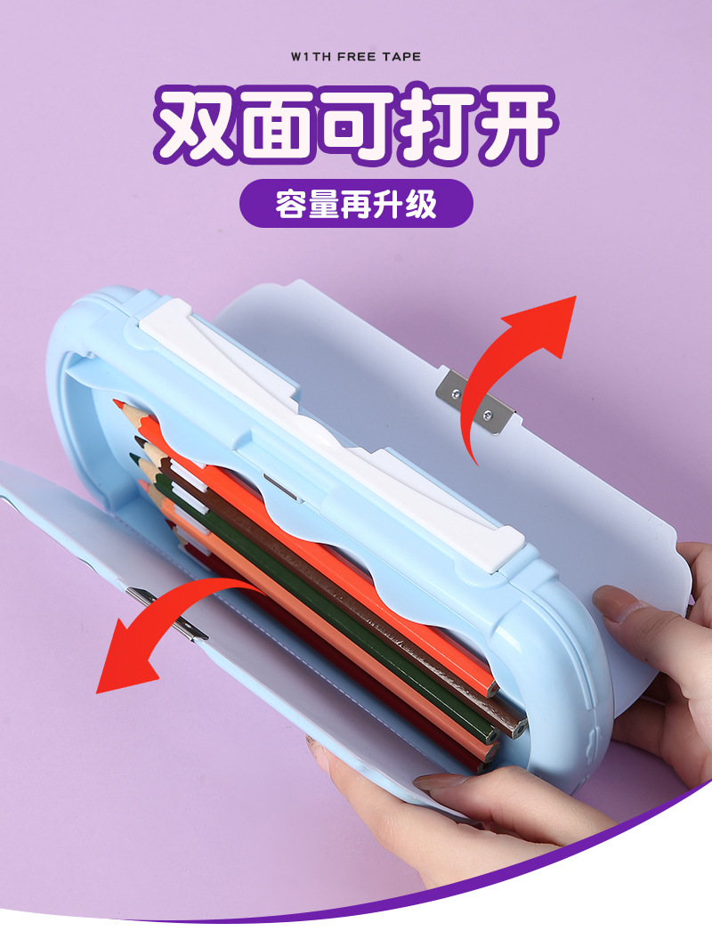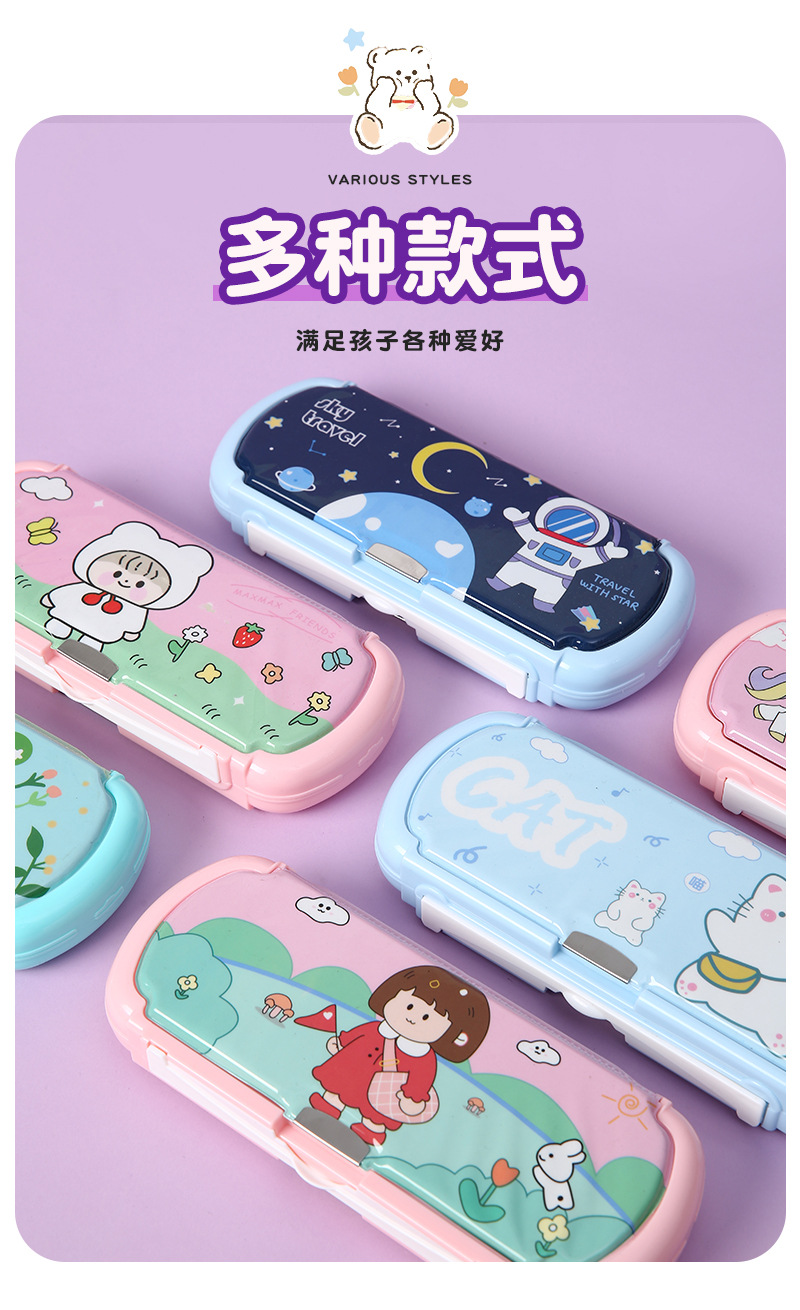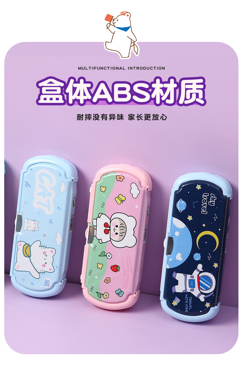 화이트 보드가있는 창조적 인 초등학교 학생 다기능 문구 상자 귀여운 높은 색상 가치 푸른 만화 어린이 연필 상자 도매