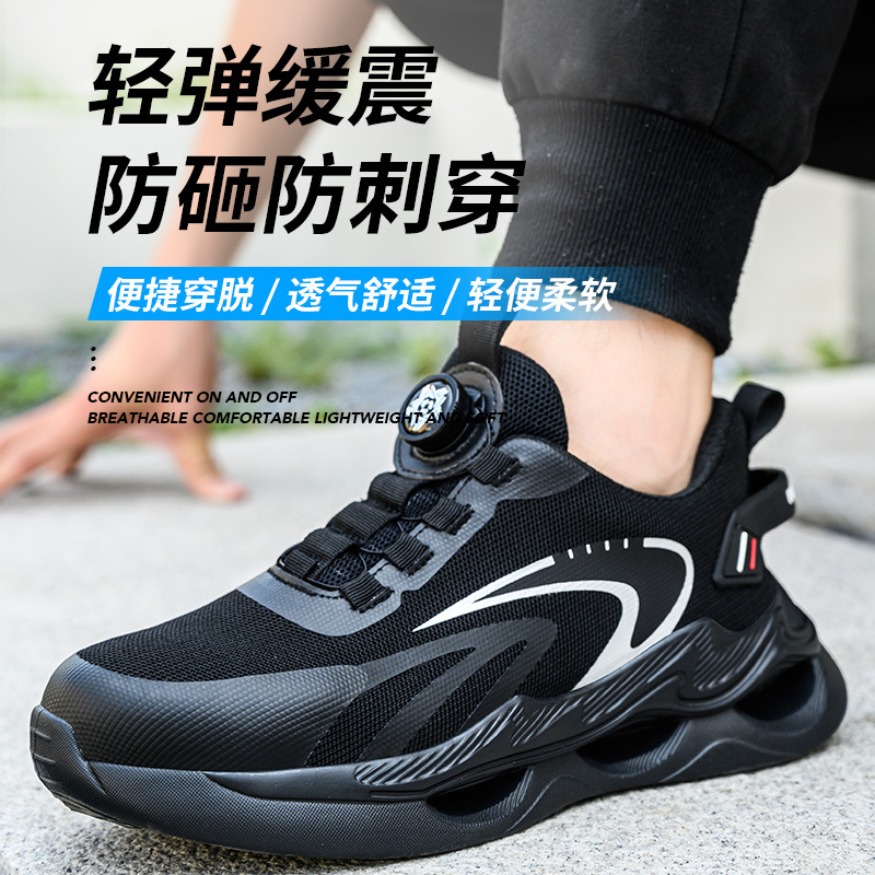 안티 스매싱 및 안티 피어싱 편안한 신발은 회전 버튼 작업 보호 신발 새로운 여름 비행 짠 통기성 노동 보호 신발