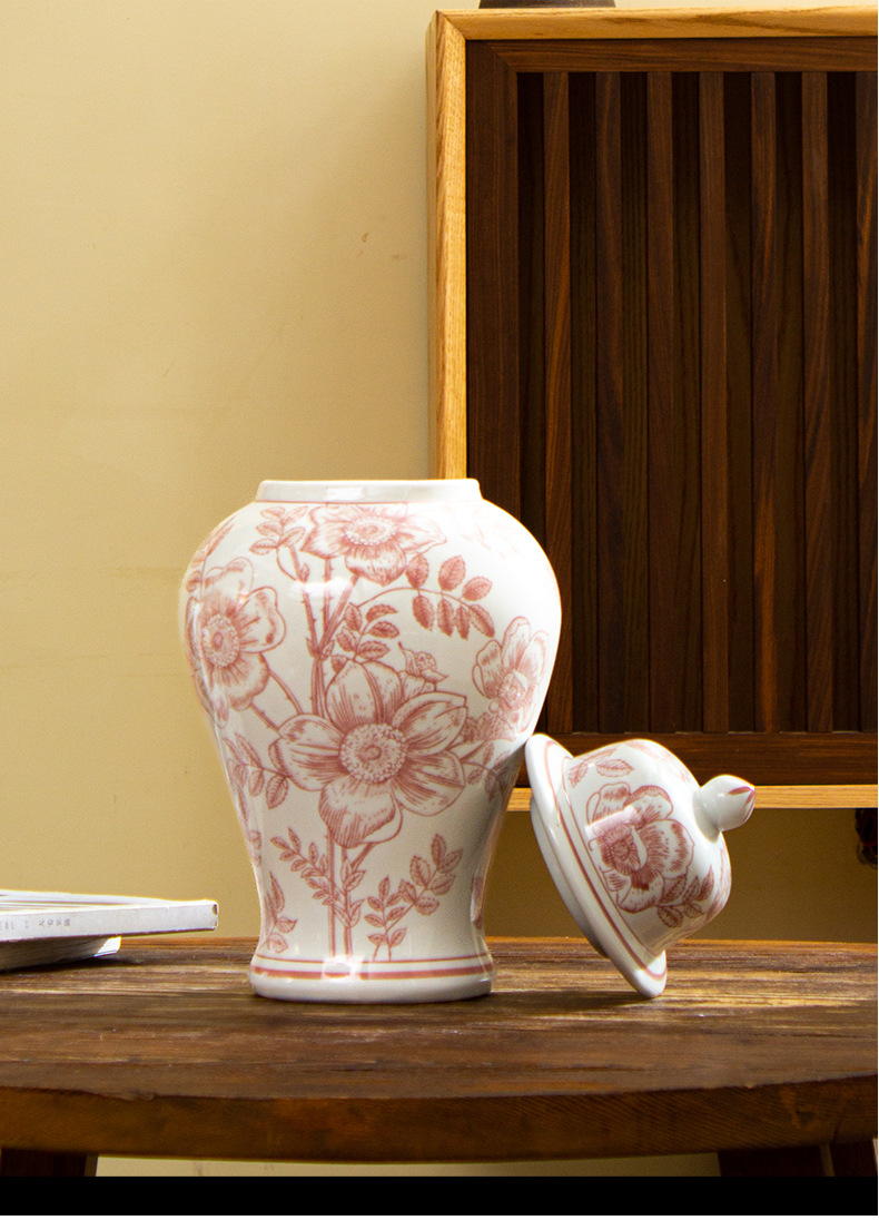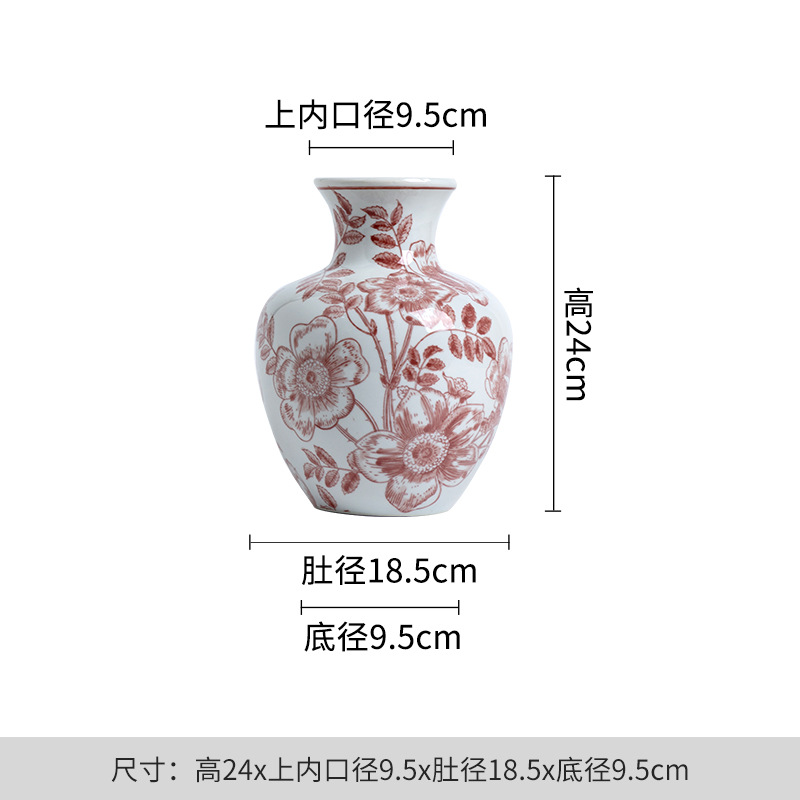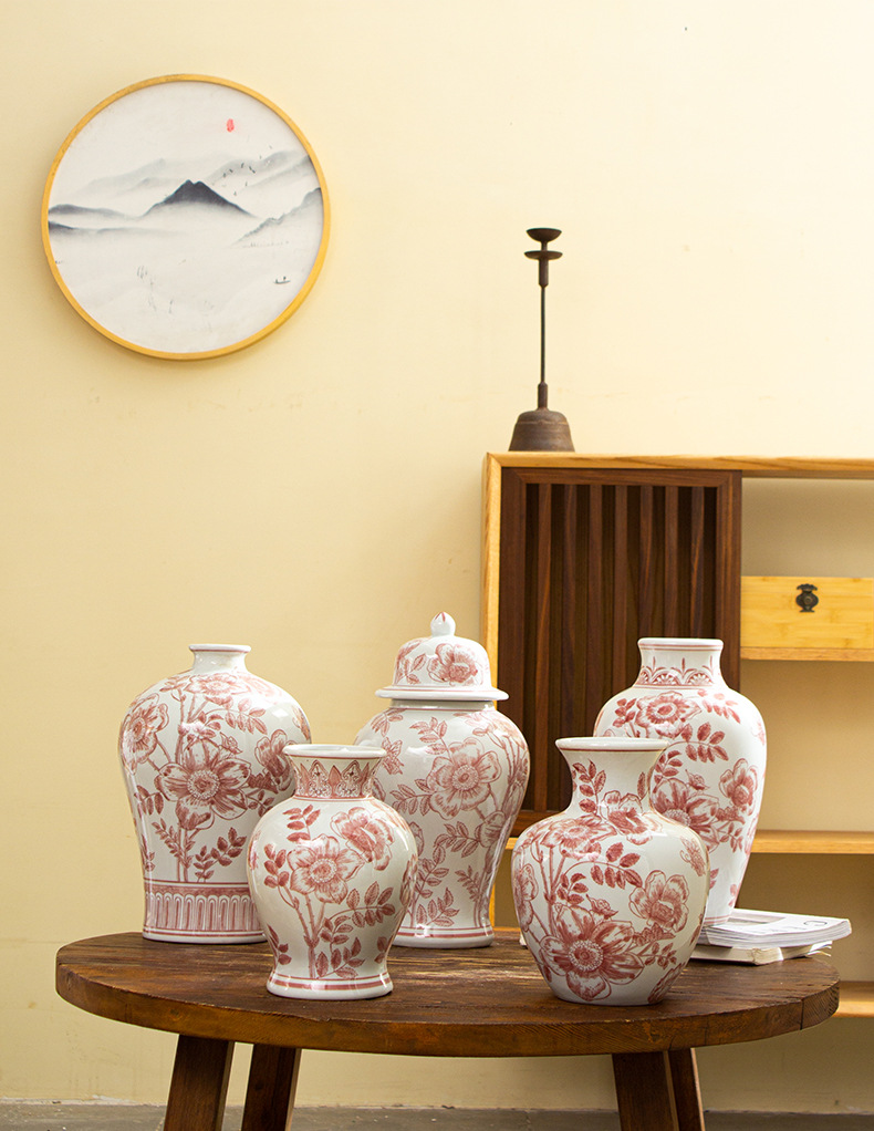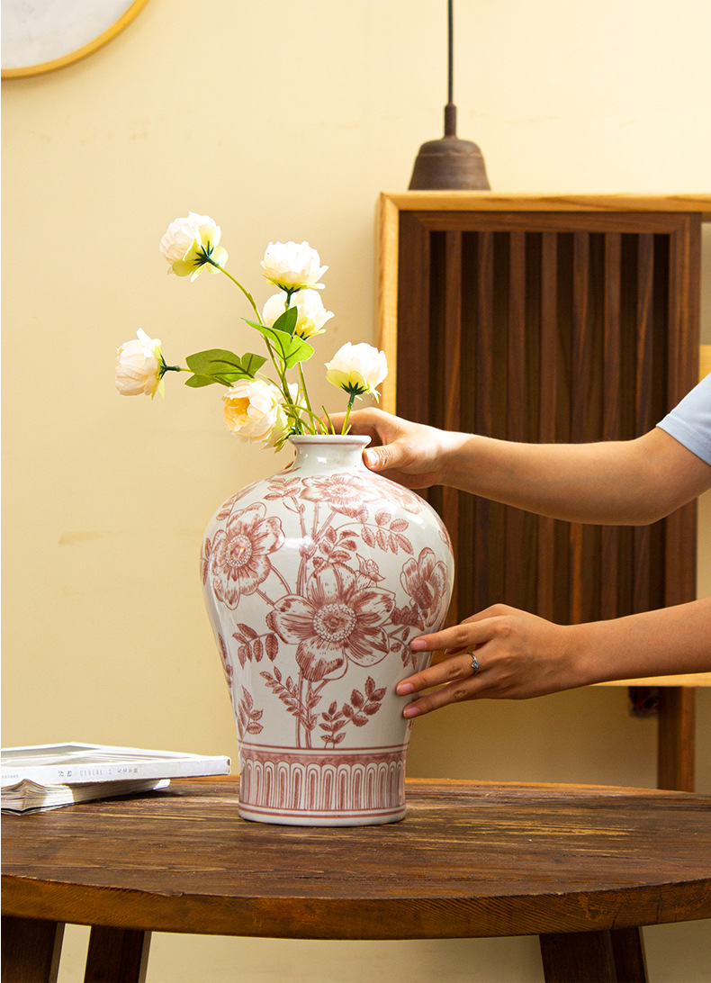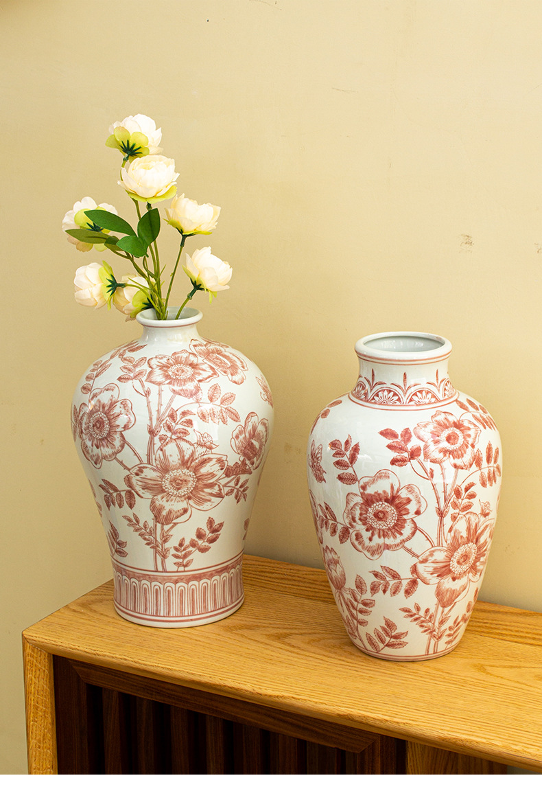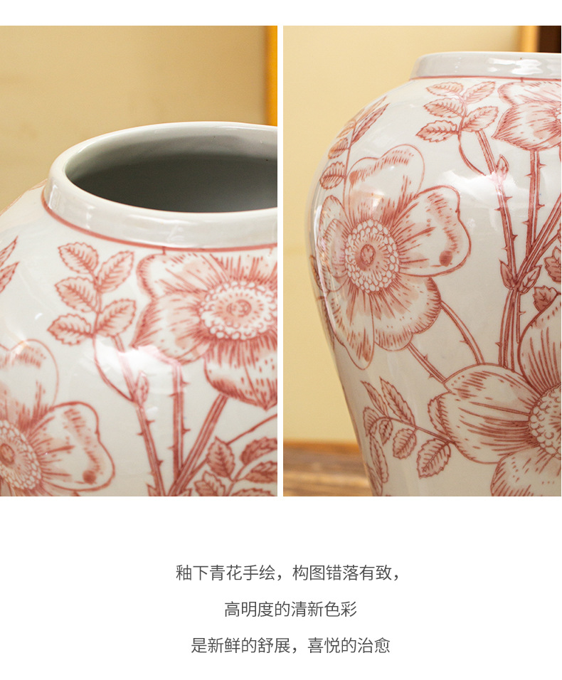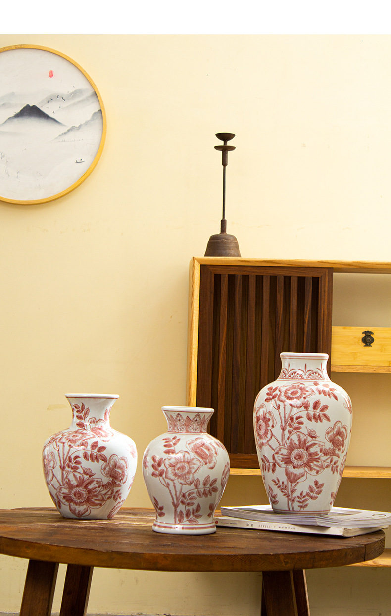 손으로 그린 세라믹 레드 로즈 세라믹 꽃병 홍콩식 세라믹 장식 장식품 수경 세라믹 보석 고급 감각스토어 가기