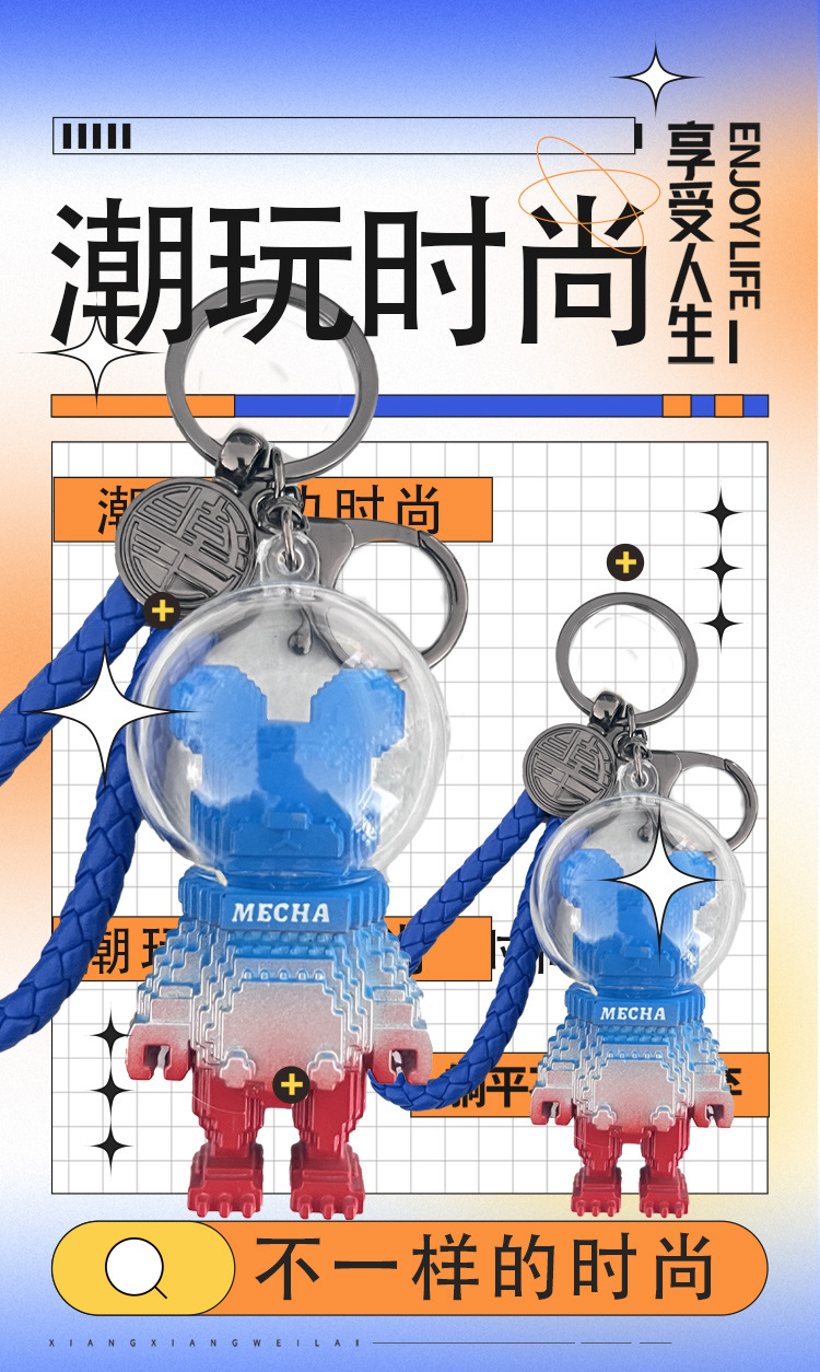 트렌디 한 멋진 빌딩 블록 곰 열쇠 고리 실리콘 가방 액세서리 만화 열쇠 펜던트 인형 잡아 공급 작은 선물스토어 가기