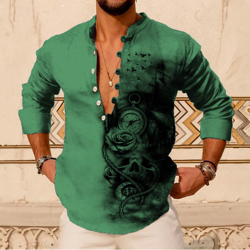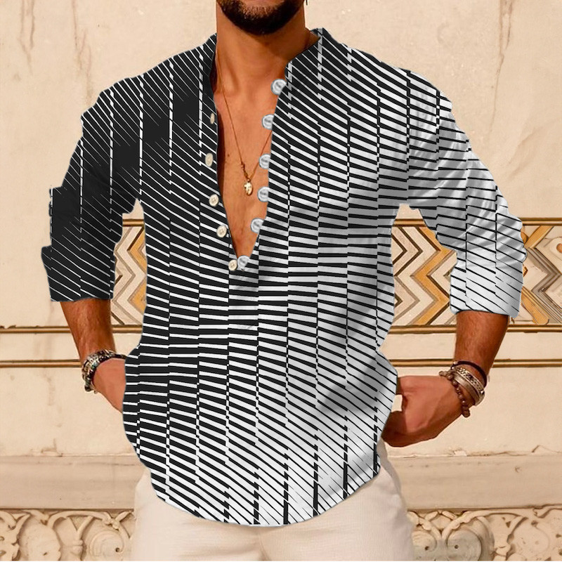 2025 새로운 봄, 가을 아마존 가벼운 성숙한 캐주얼 얇은 긴팔 청소년 인기 스탠드 칼라 인기 남성 셔츠
