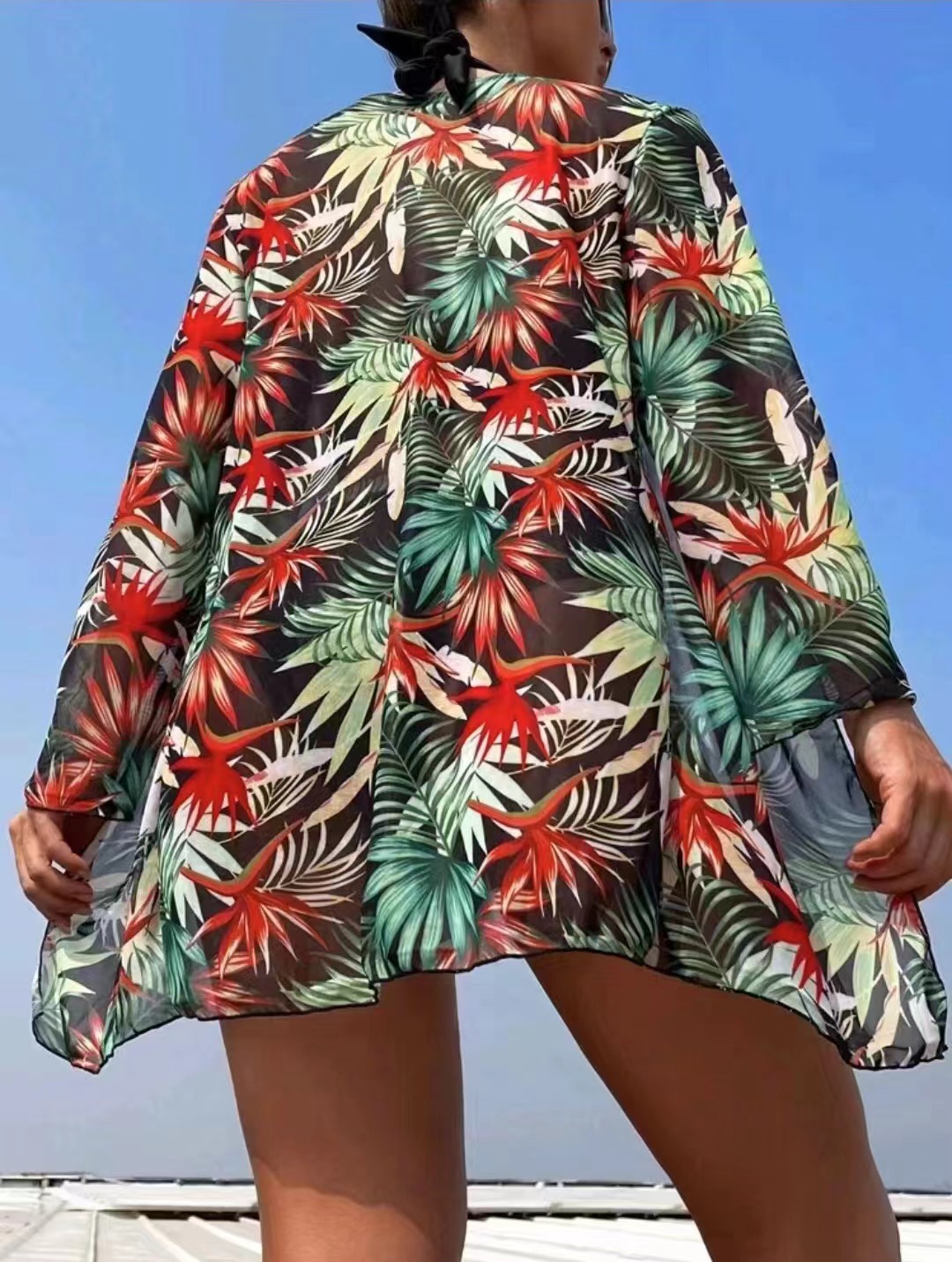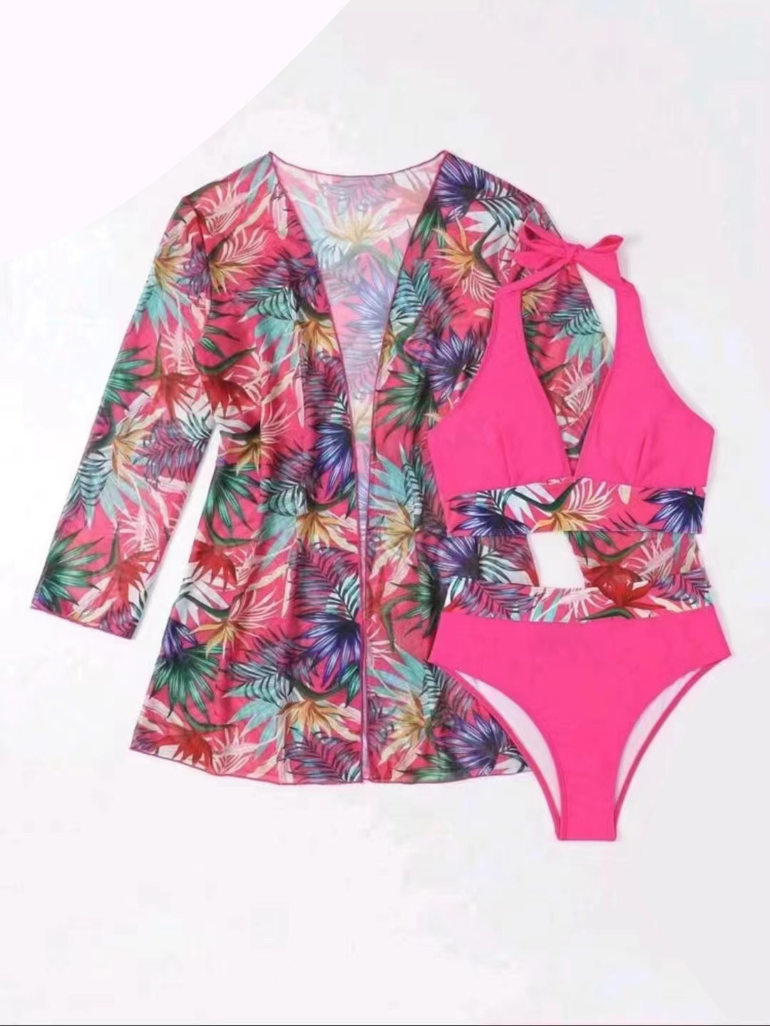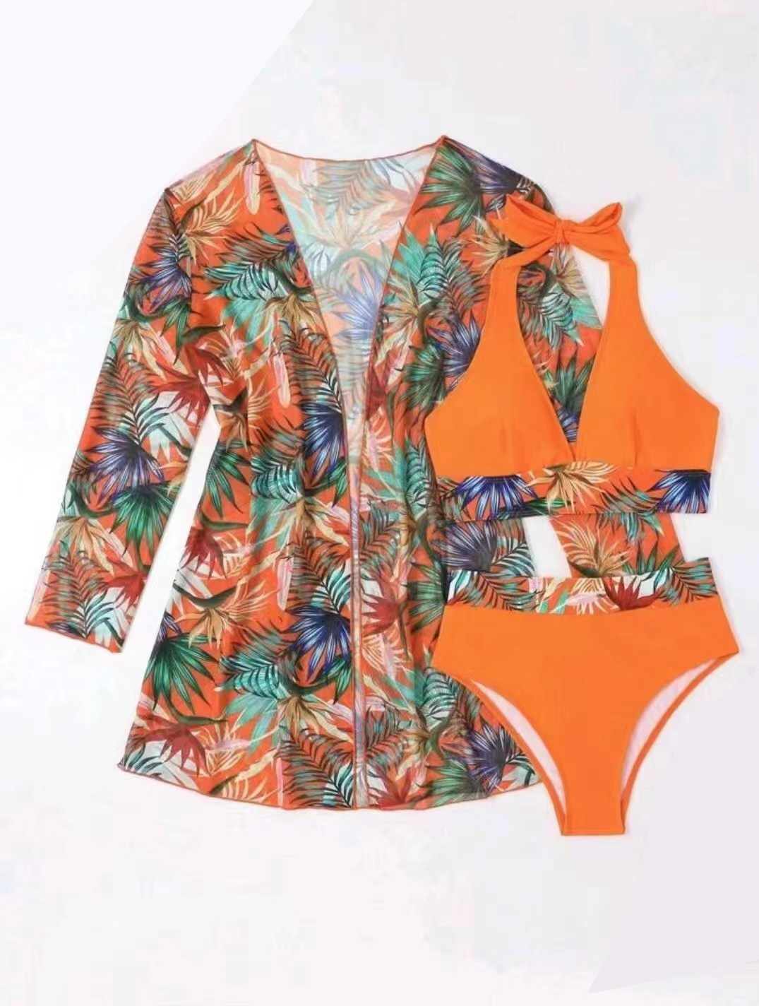 2023 새로운 크로스 보더 유럽과 미국의 섹시한 비키니 메쉬 3 피스 세트 아마존 푸시 업 스플릿 프린트 수영복 여성용스토어 가기