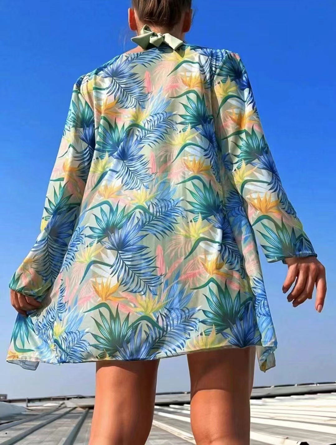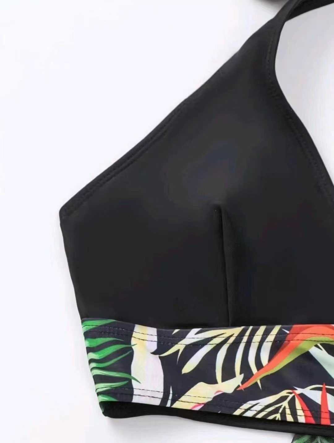 2023 새로운 크로스 보더 유럽과 미국의 섹시한 비키니 메쉬 3 피스 세트 아마존 푸시 업 스플릿 프린트 수영복 여성용