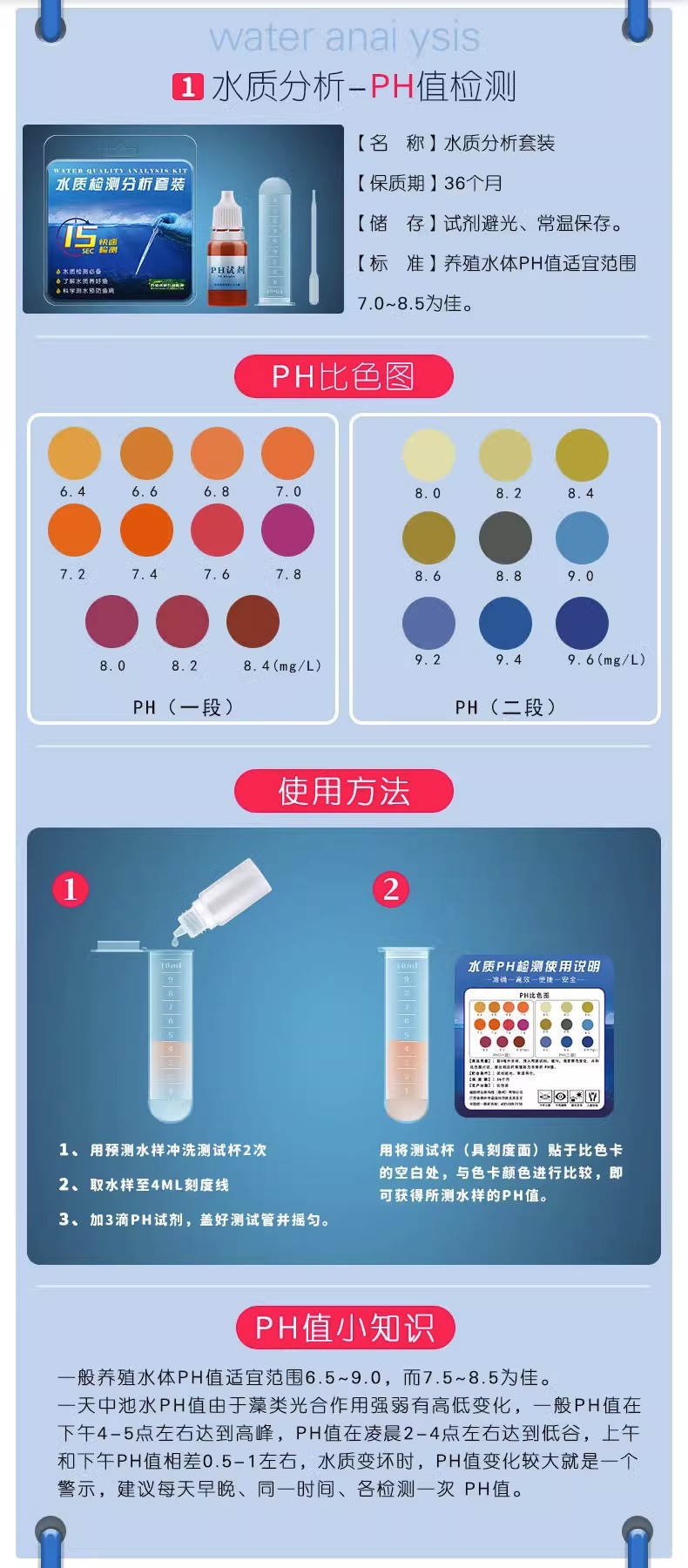 • [4 세트] pH 값 + 아질산염 + 암모니아 질소 검출 (담수) + 잔류 염소