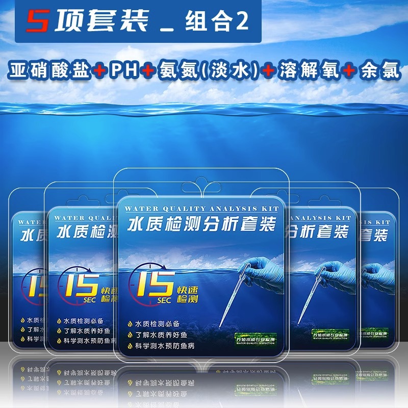 • [5 세트] pH 값 + 아질산염 + 암모니아 질소 검출 (담수) + 용존 산소 + 잔류 염소