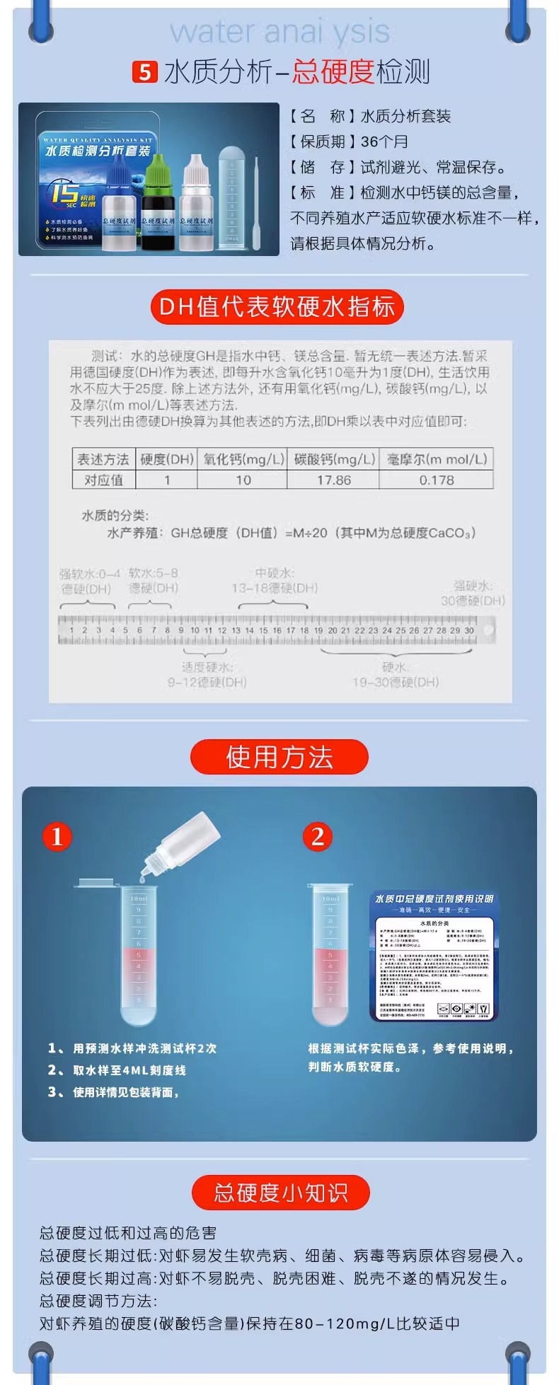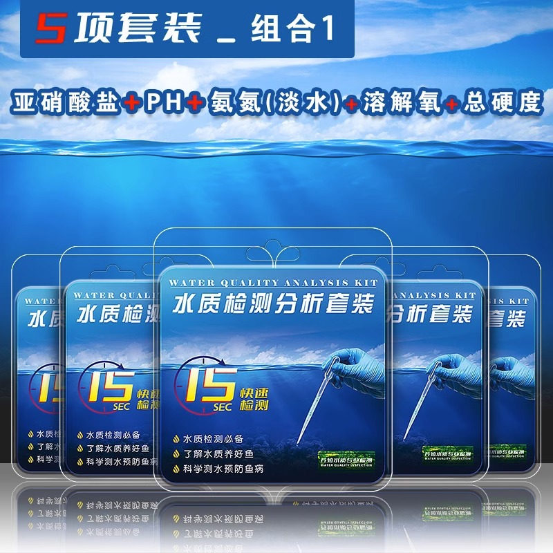 • [5 세트] pH 값 + 아질산염 + 암모니아 질소 검출 (담수) + 용존 산소 + 총 경도