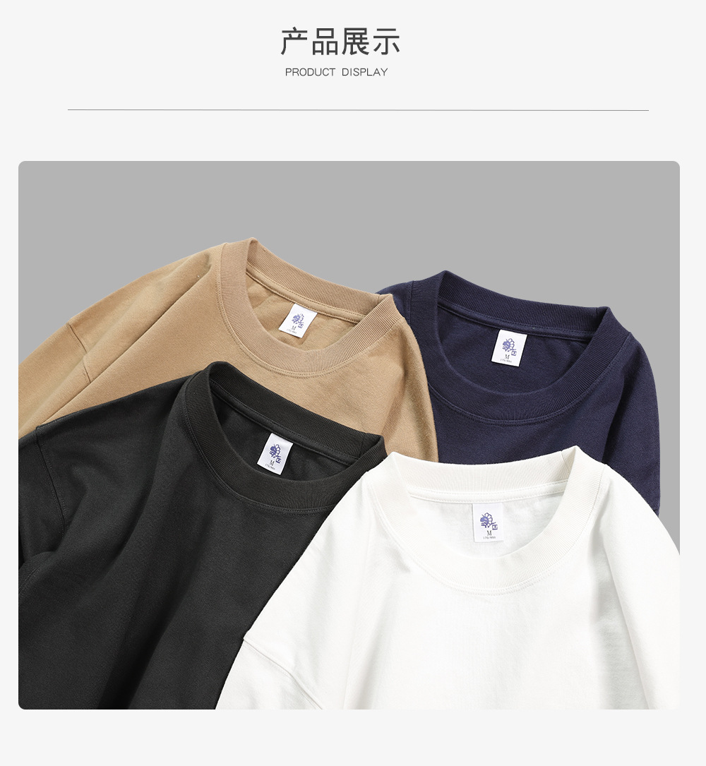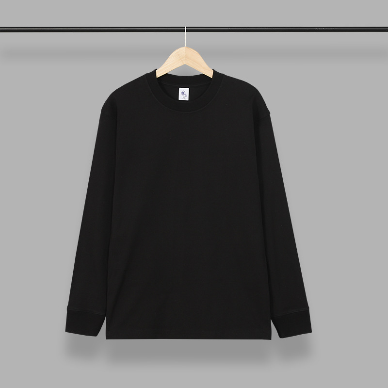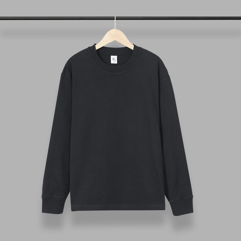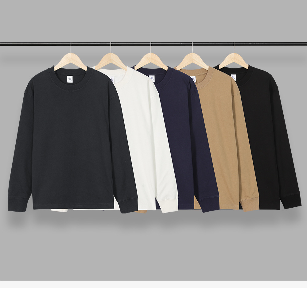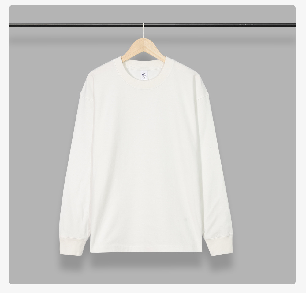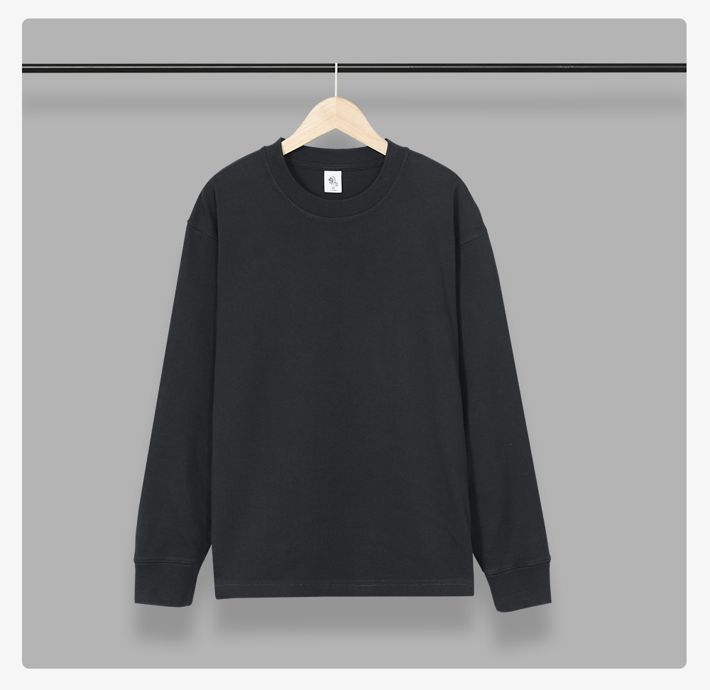 아미 카지 트렌디 브랜드 라운드 넥 320 무거운 세척 신장 순면 단색 느슨한 남여 공용 커플 남성용 긴 소매 티셔츠