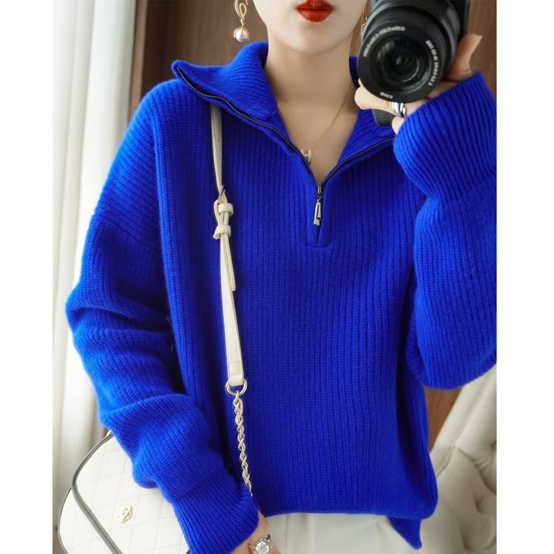 2025 새로운 가을, 겨울 지퍼 스웨터 스웨터 여성의 느슨한 겉옷 바닥 서양식 탑 디자인 틈새 시장스토어 가기