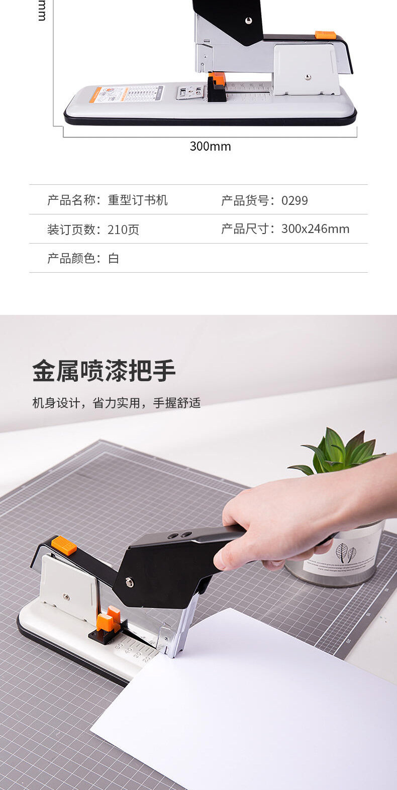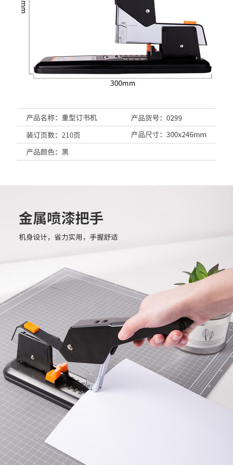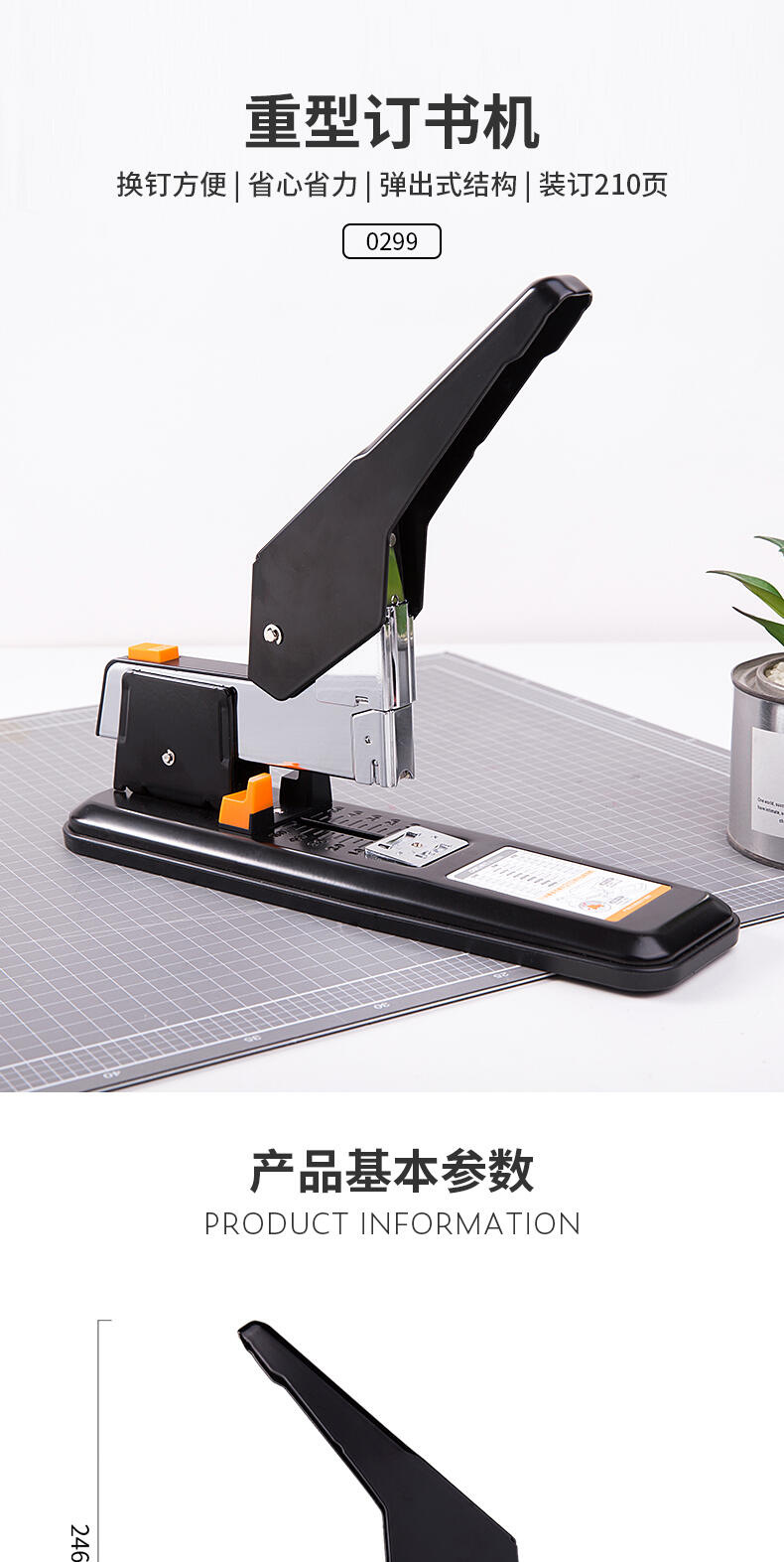 Deli 0299 헤비 스테이플러 대형 두꺼운 노동력 절약형 210 페이지 금융사무소 중대형 스테이플러