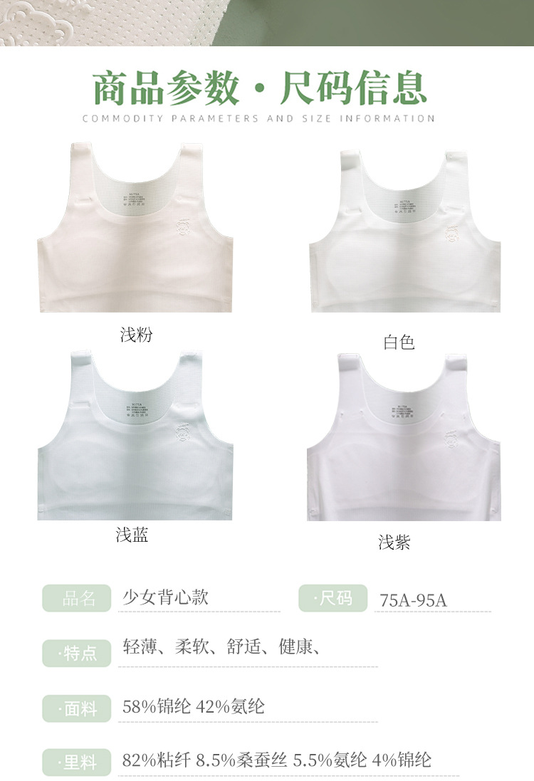 뽕나무 실크 여아 속옷 작은 조끼 사춘기 발달 여아 속옷 중학생 9-13 세 여아 브래지어스토어 가기