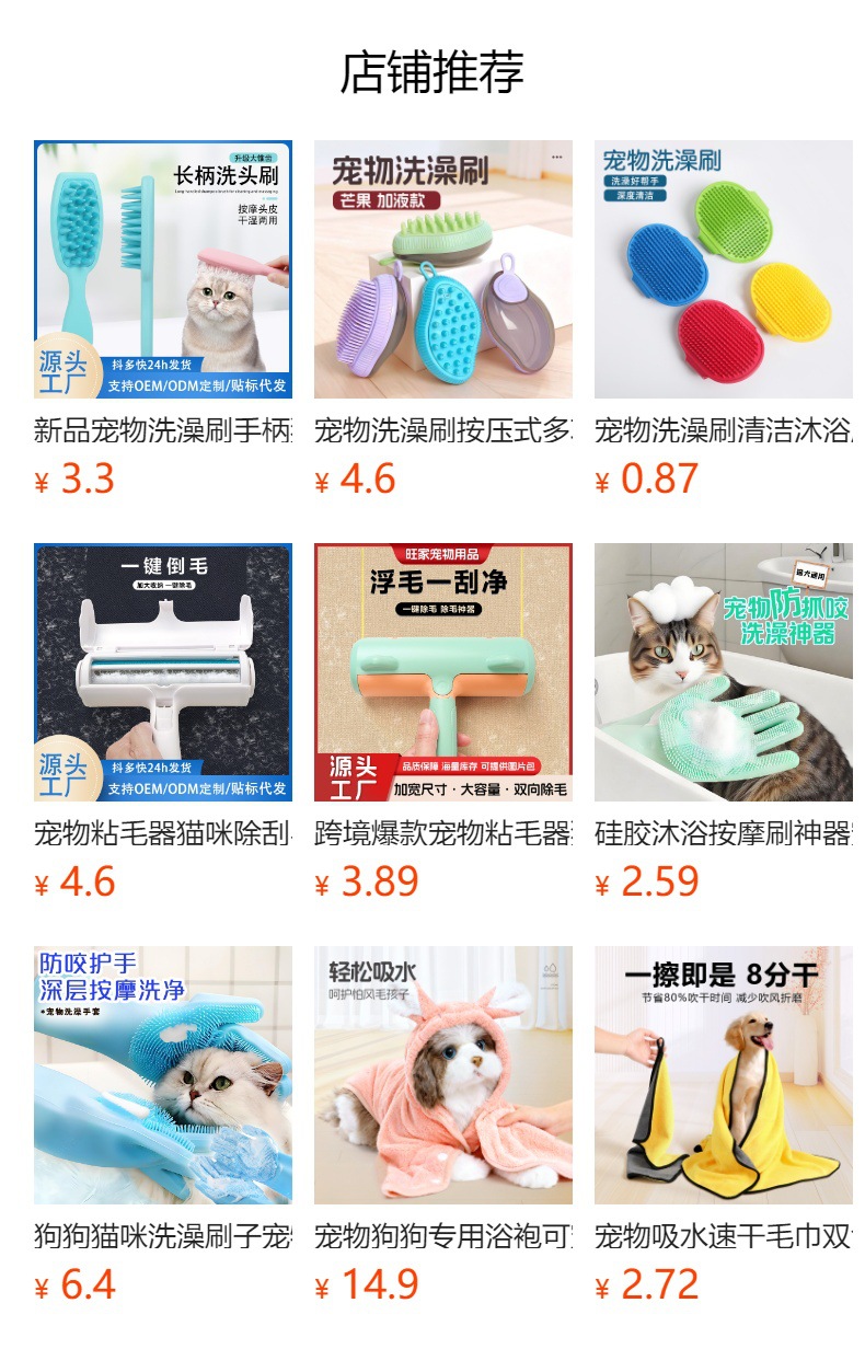 뜨는 개 마사지 브러시 헤어 제조업체 베스트 셀러 애완 동물 목욕 브러시 TPE 소프트 클리닝 제품 미용 빗 도구스토어 가기
