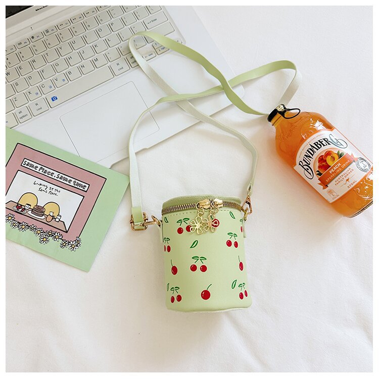 어린 소녀 가방, 소녀 체리 프린트 버킷백, 아기 미니 숄더백, 공주 외출용 크로스백, 수납용