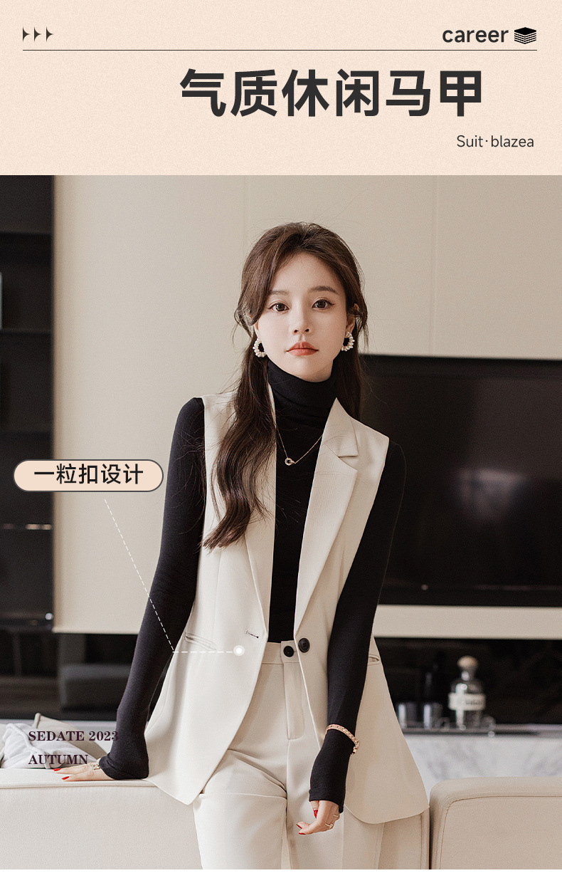 여성용 양복 조끼 봄 가을 2025 신상 상의 한국 스타일 루즈핏 조끼 캐주얼 더블 버튼 조끼 팬츠 세트스토어 가기