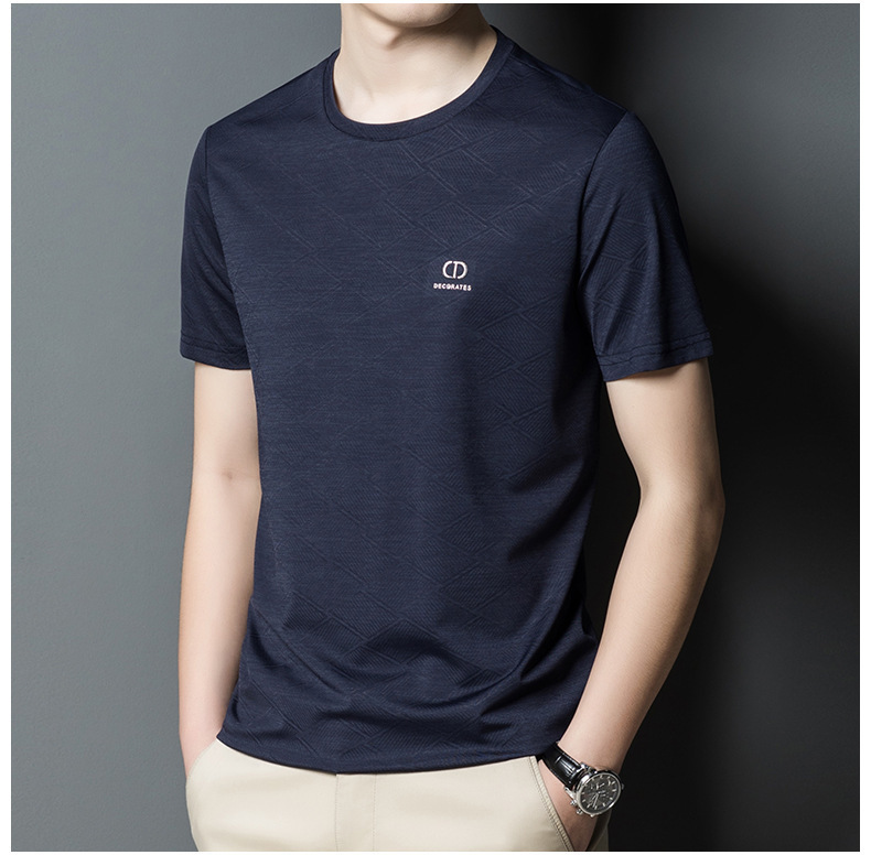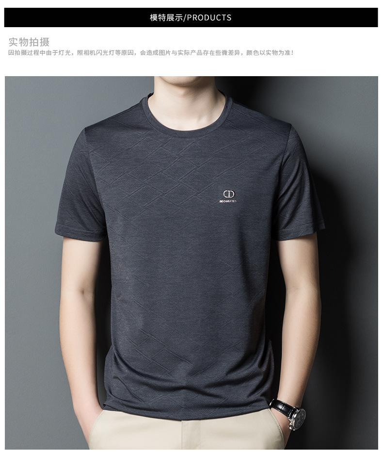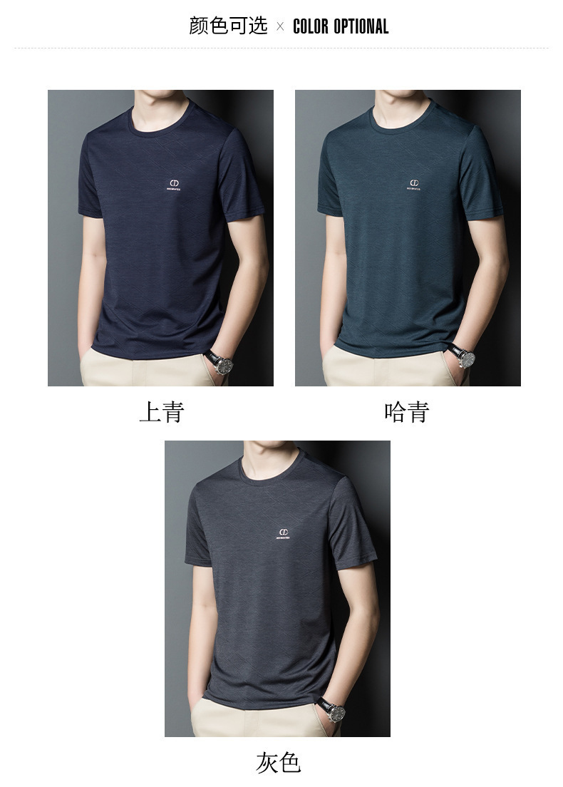 夏季冰丝短袖t恤男士圆领速干衣宽松半袖男装透气体恤汗衫爸爸装