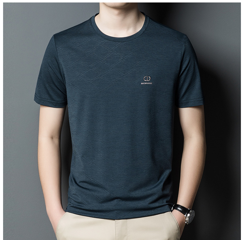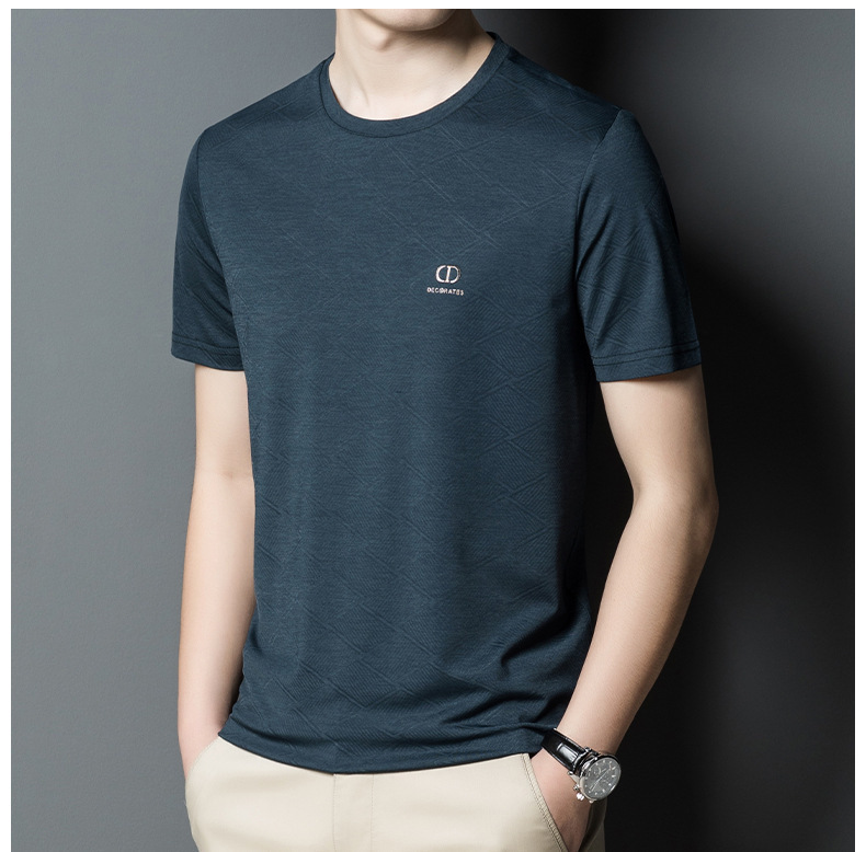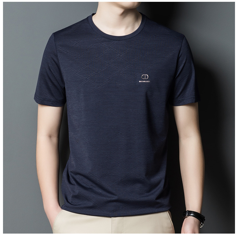 여름 아이스 실크 반팔 티셔츠 남성용 라운드 넥 속건 의류 느슨한 반팔 남성 통기성 티셔츠 언더 셔츠 아빠 옷스토어 가기