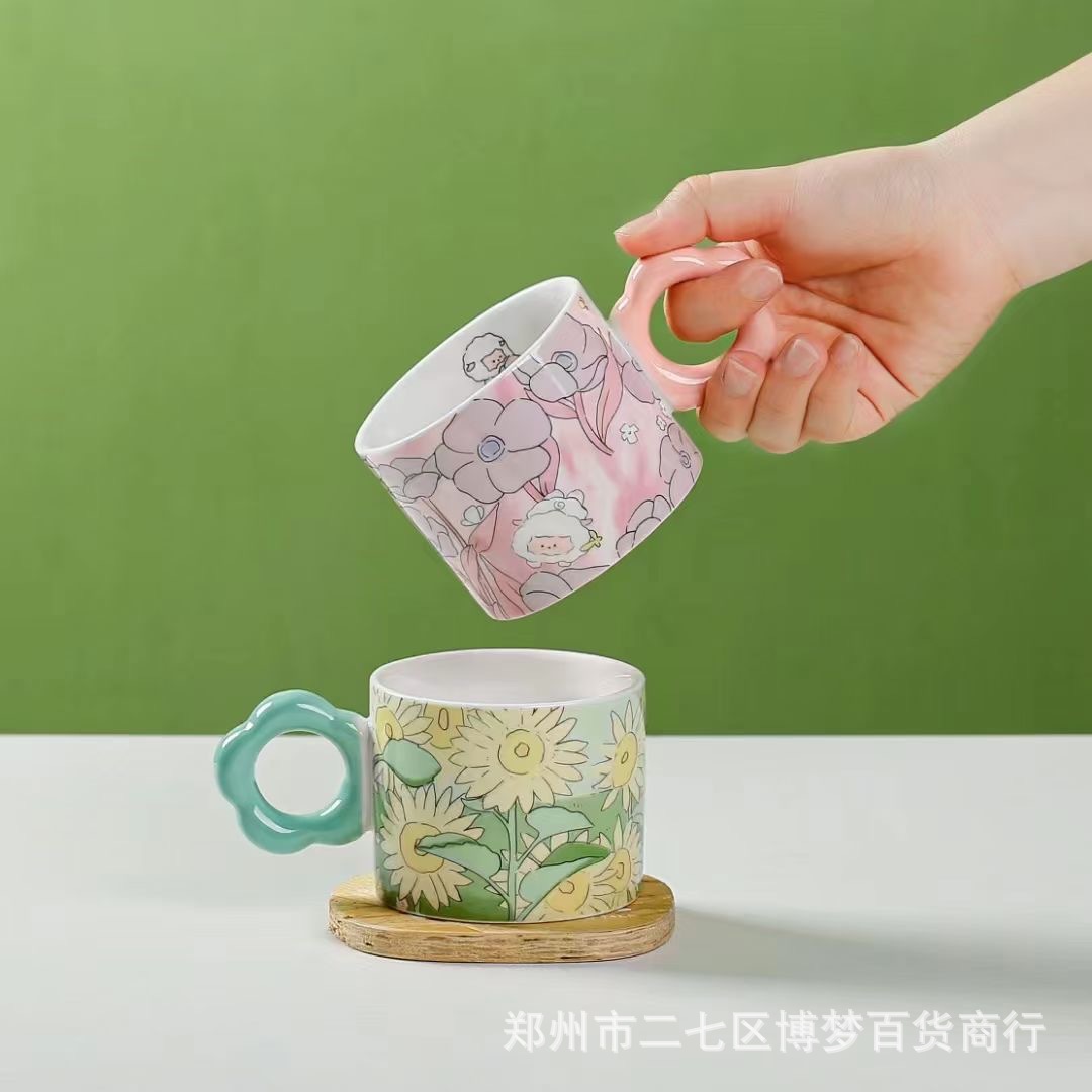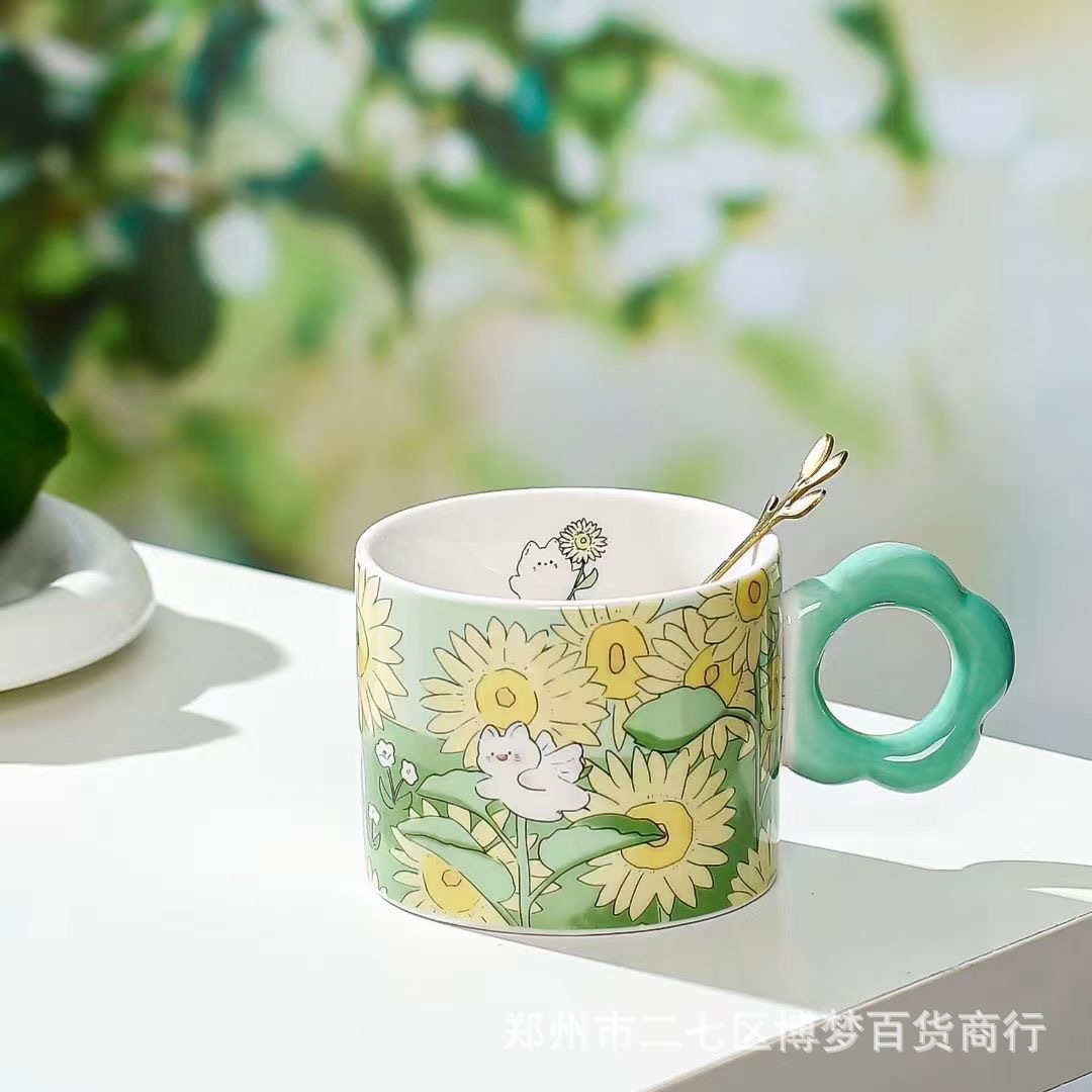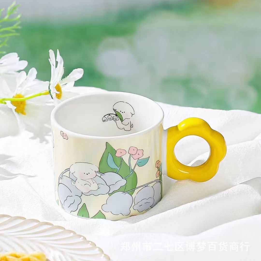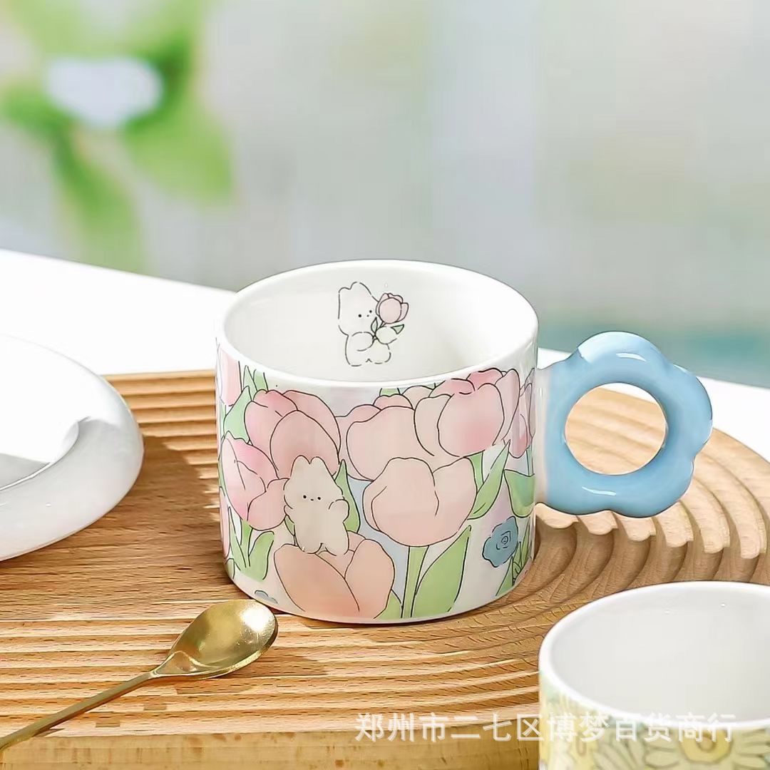 높은 얀 가치 창조적 인 물 컵 인터넷 축하 세라믹 컵 만화 튤립 토끼 홈 오피스 커피 컵 오후스토어 가기
