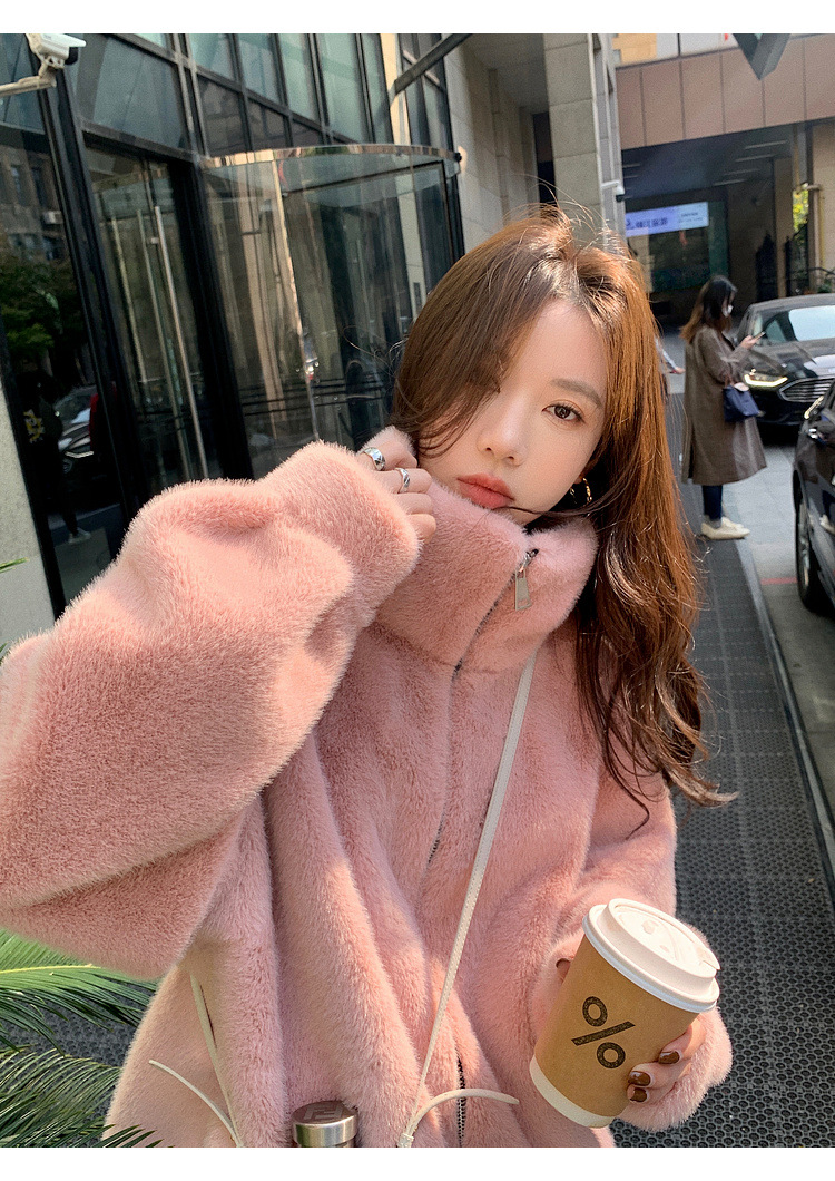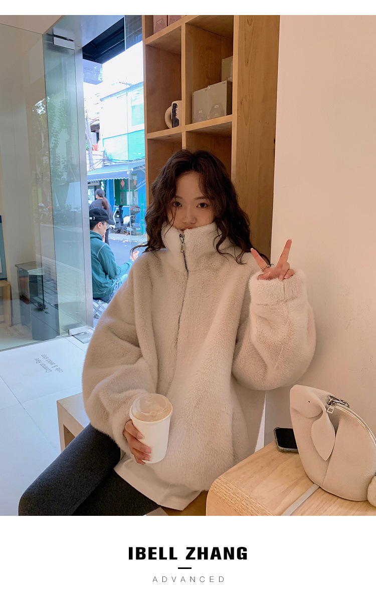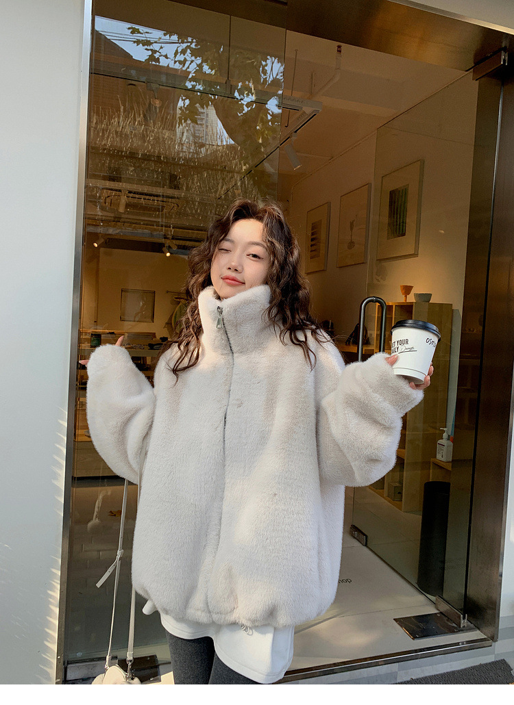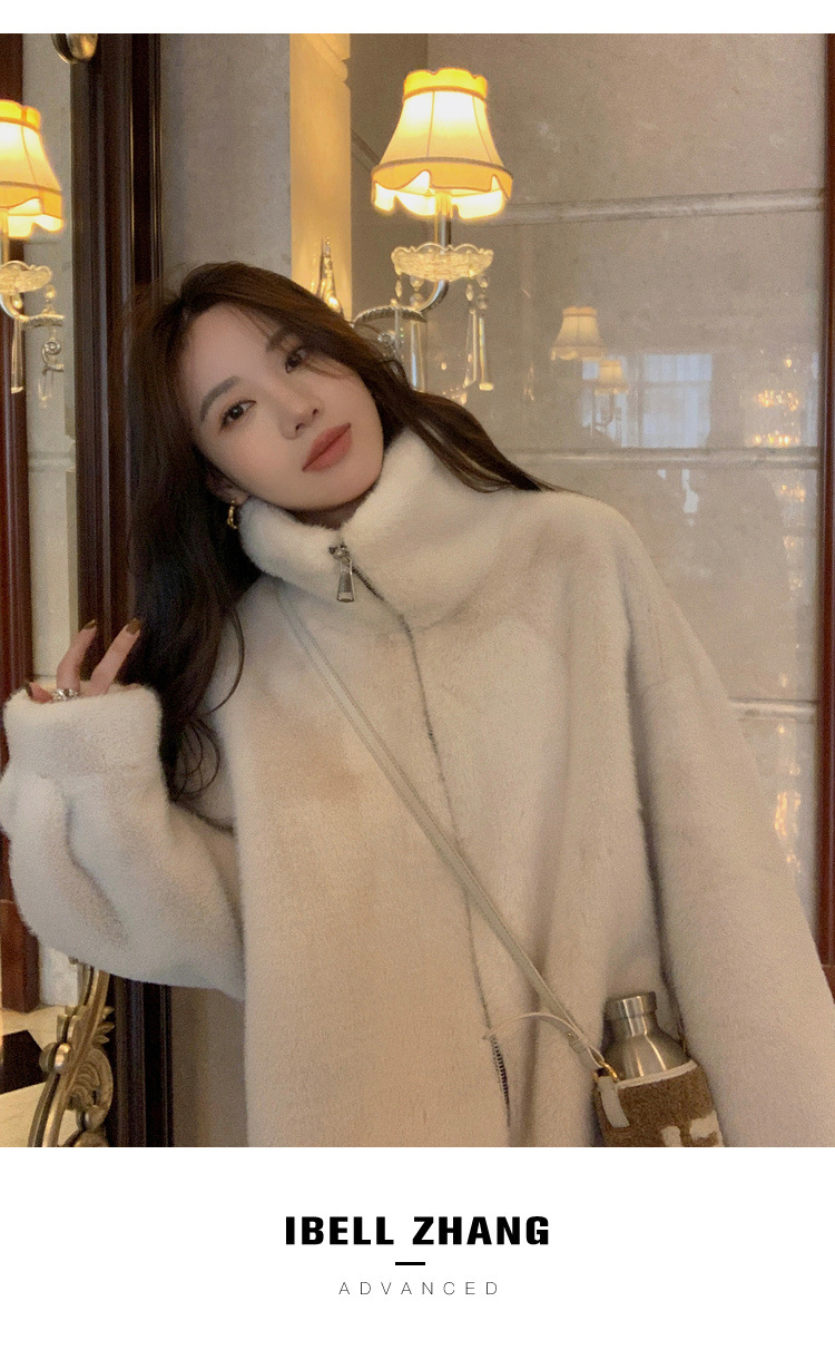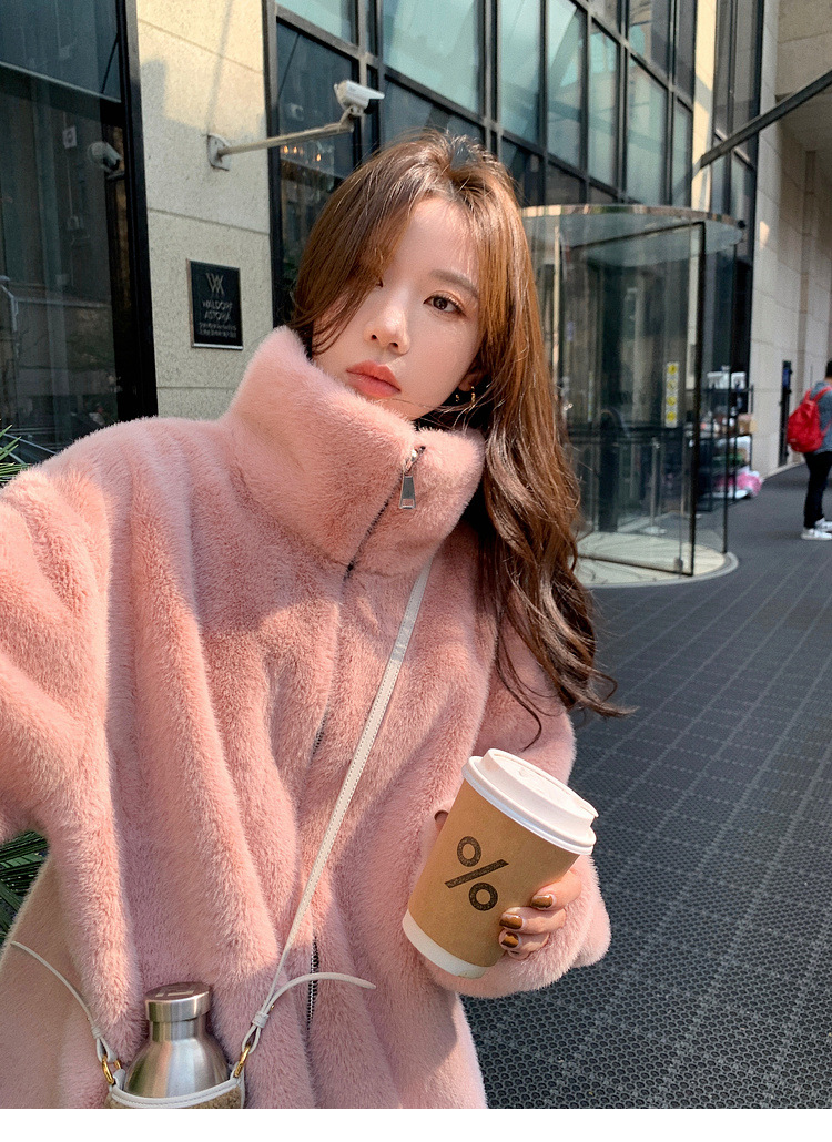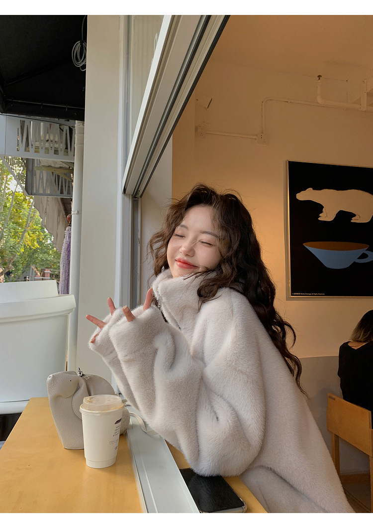 특별 제공 모피 여성의 느슨한 환경 친화적 인 마오 마오 짧은 재킷 모조 유럽 밍크 울 스탠드 칼라 따뜻한 한국 스타일 하이 칼라 겨울 새로운