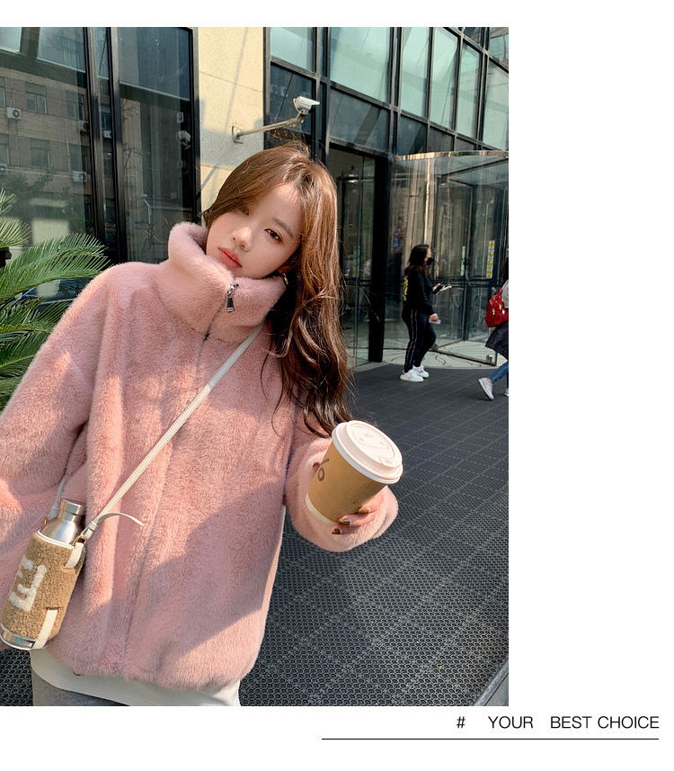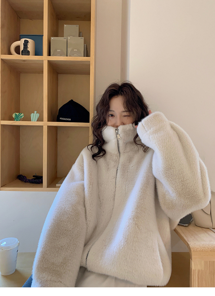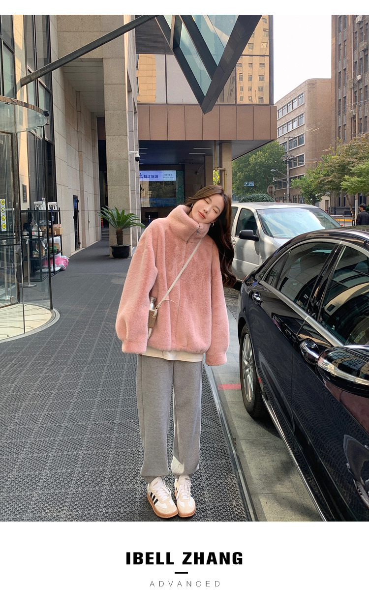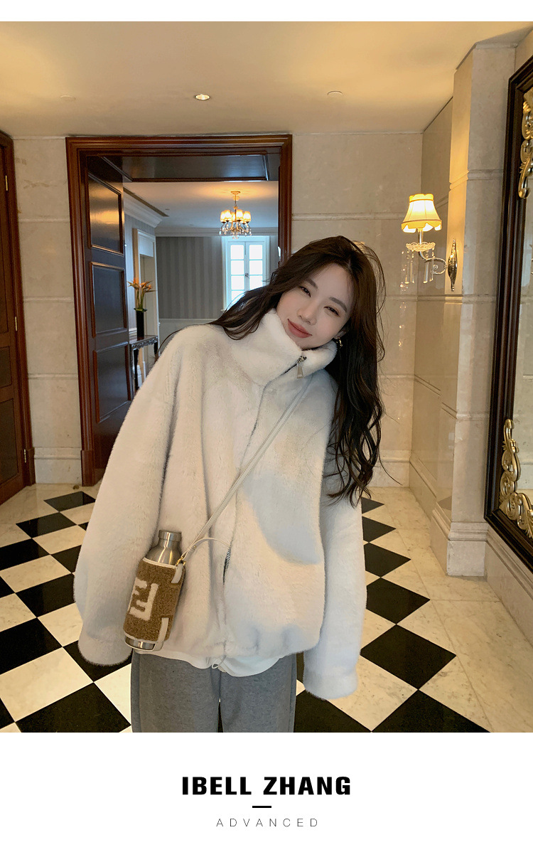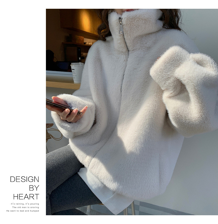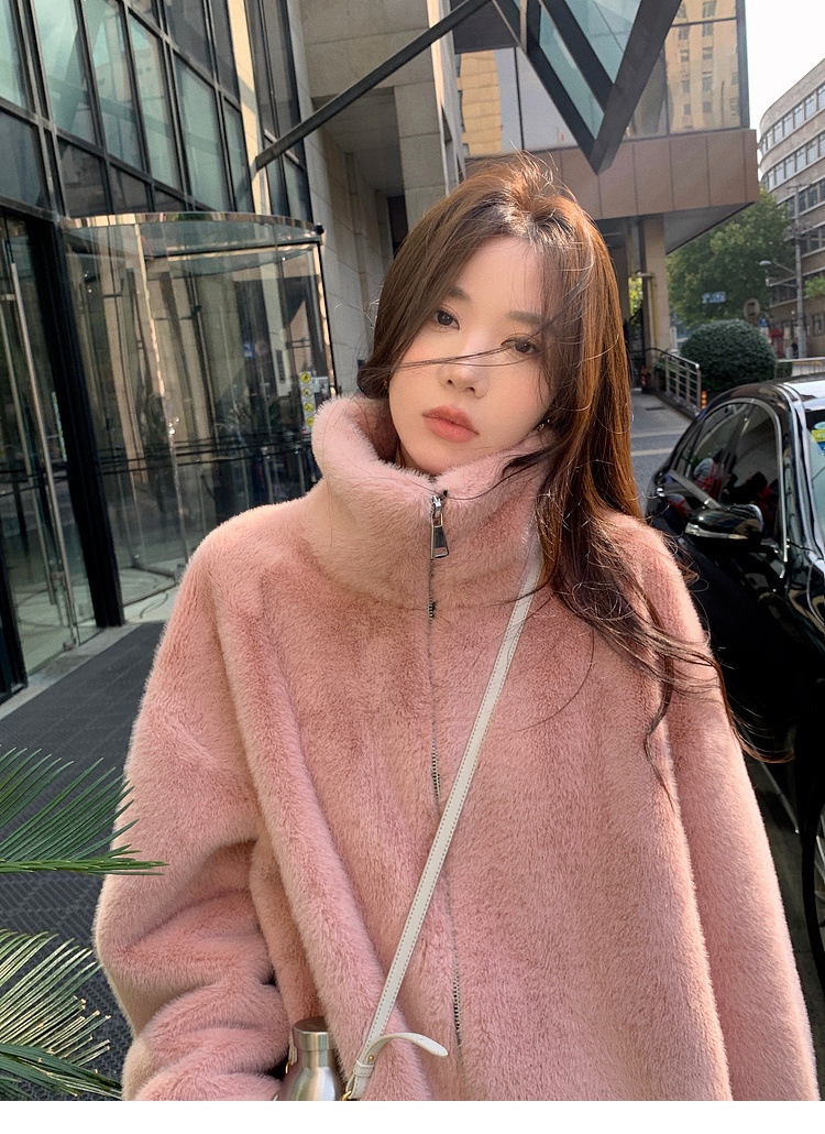 특별 제공 모피 여성의 느슨한 환경 친화적 인 마오 마오 짧은 재킷 모조 유럽 밍크 울 스탠드 칼라 따뜻한 한국 스타일 하이 칼라 겨울 새로운