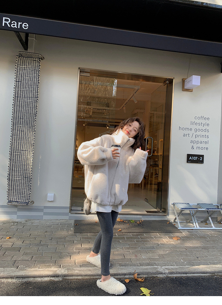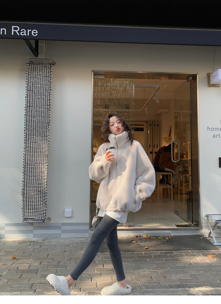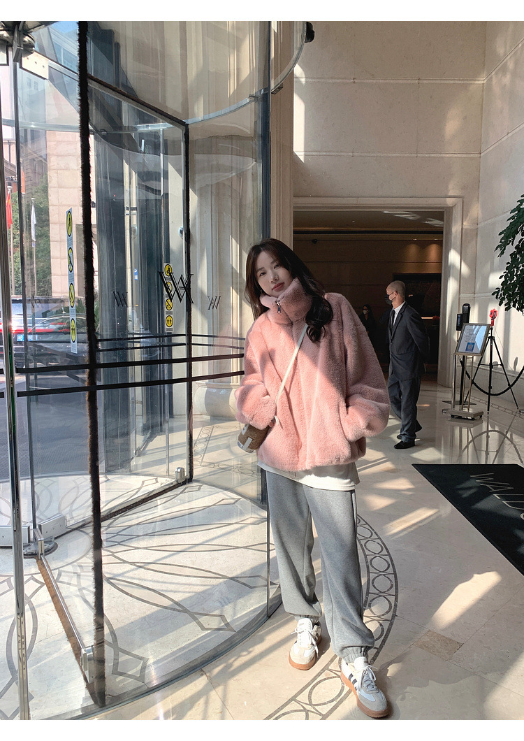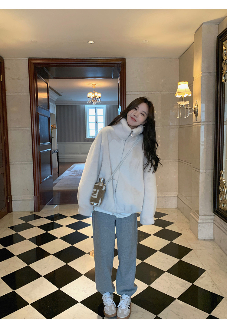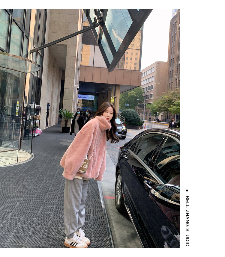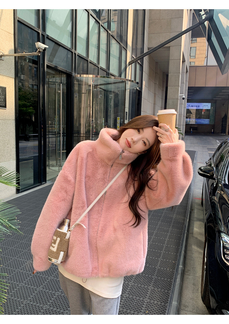 특별 제공 모피 여성의 느슨한 환경 친화적 인 마오 마오 짧은 재킷 모조 유럽 밍크 울 스탠드 칼라 따뜻한 한국 스타일 하이 칼라 겨울 새로운