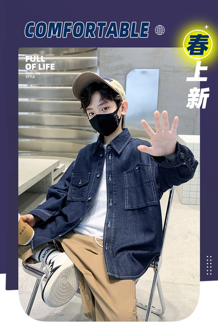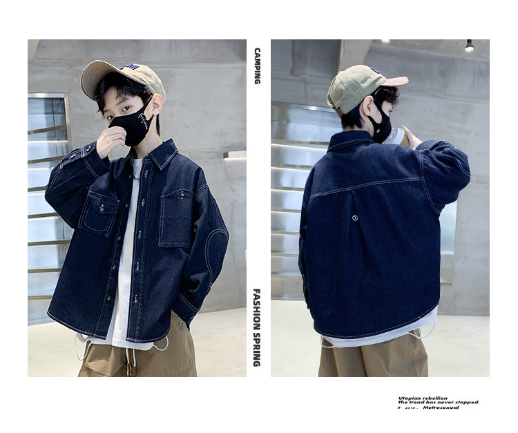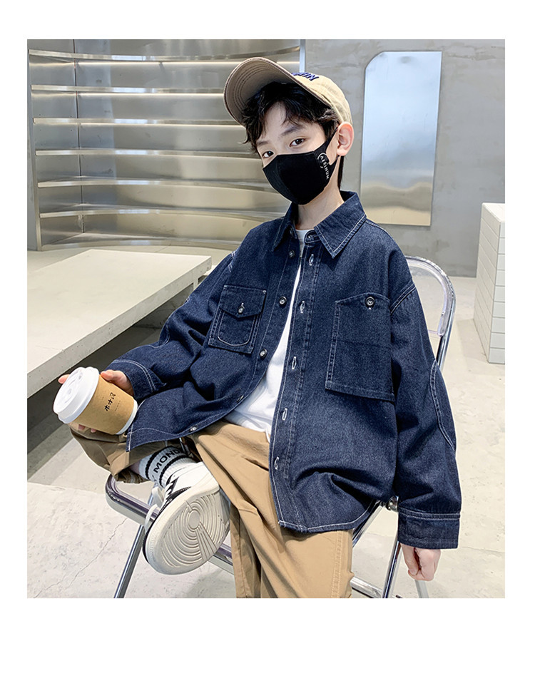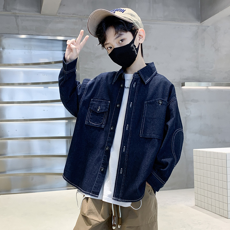 남학생 '한국식 데님 자켓 봄과 가을 어린이 얇은 셔츠 봄 2024 새로운 중형 어린이 서양식 탑
