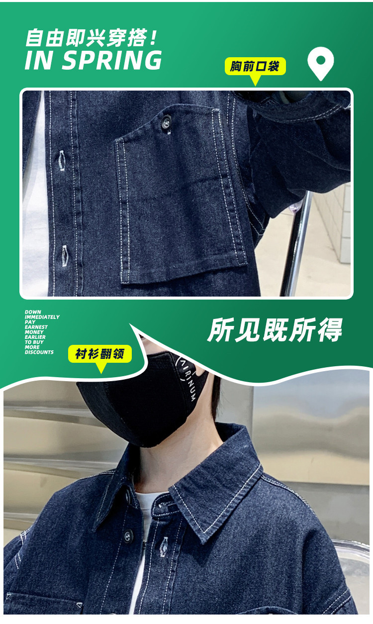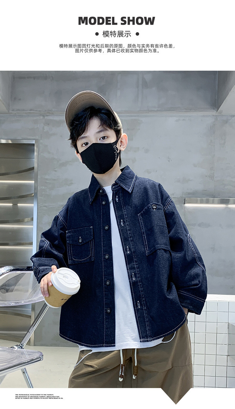 남학생 '한국식 데님 자켓 봄과 가을 어린이 얇은 셔츠 봄 2024 새로운 중형 어린이 서양식 탑스토어 가기