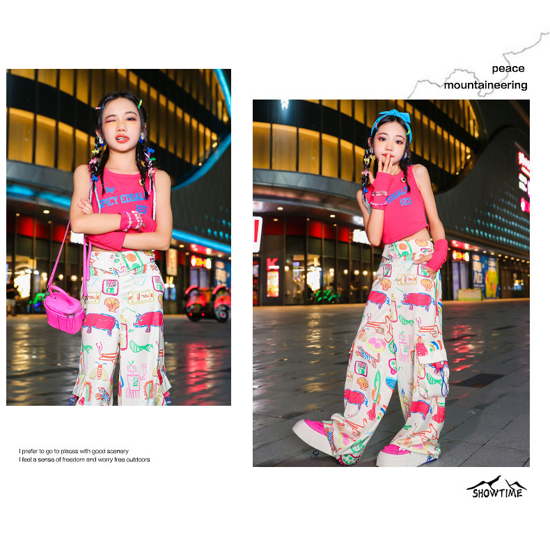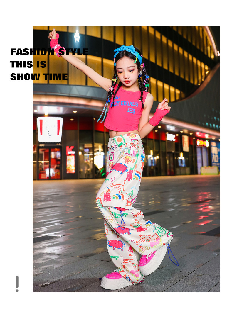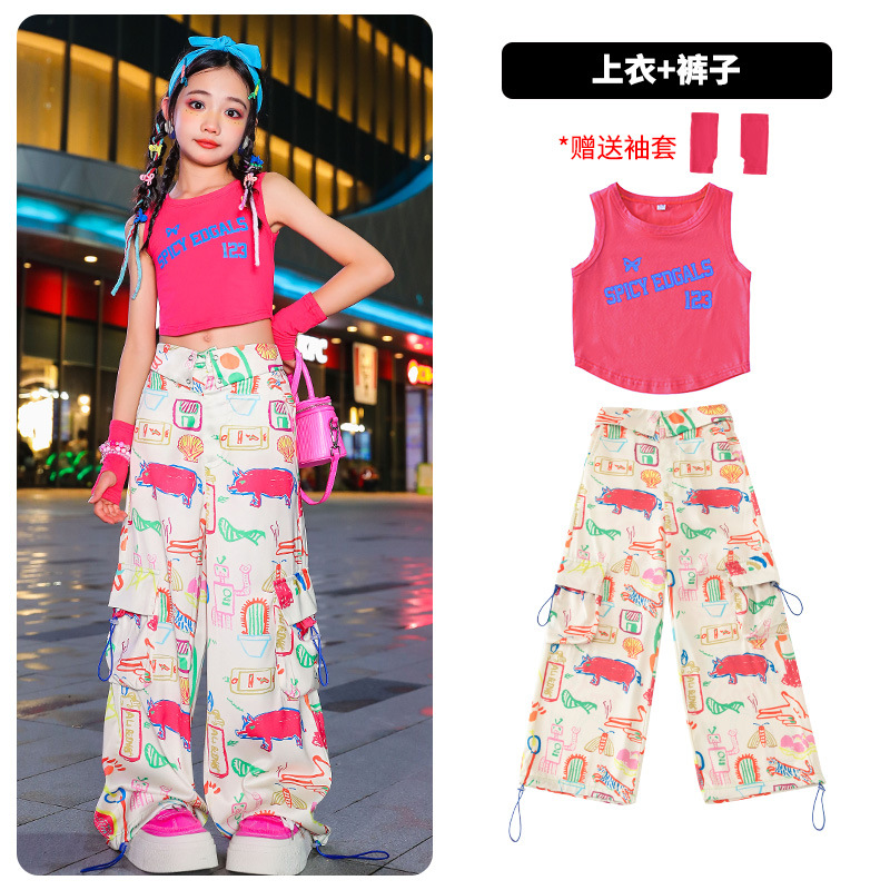 어린이 재즈 댄스 의류 멋진 소녀의 배꼽 조끼 세트 소녀 여름 패션쇼 패션 의류 핫 소녀 의상 공연 의류스토어 가기
