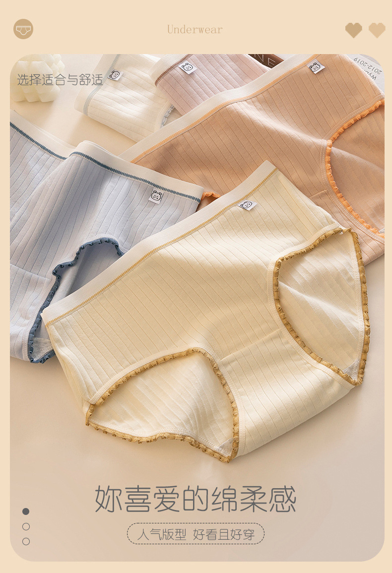 일본식 소녀의 순면 속옷 여성용 순면 가랑이 편안한 통기성 여성 속옷 스트라이프 면 원활한 팬티 여성용스토어 가기