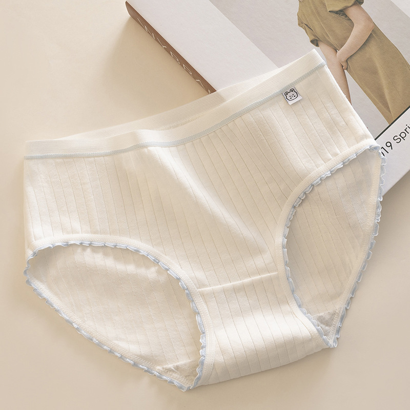 일본식 소녀의 순면 속옷 여성용 순면 가랑이 편안한 통기성 여성 속옷 스트라이프 면 원활한 팬티 여성용