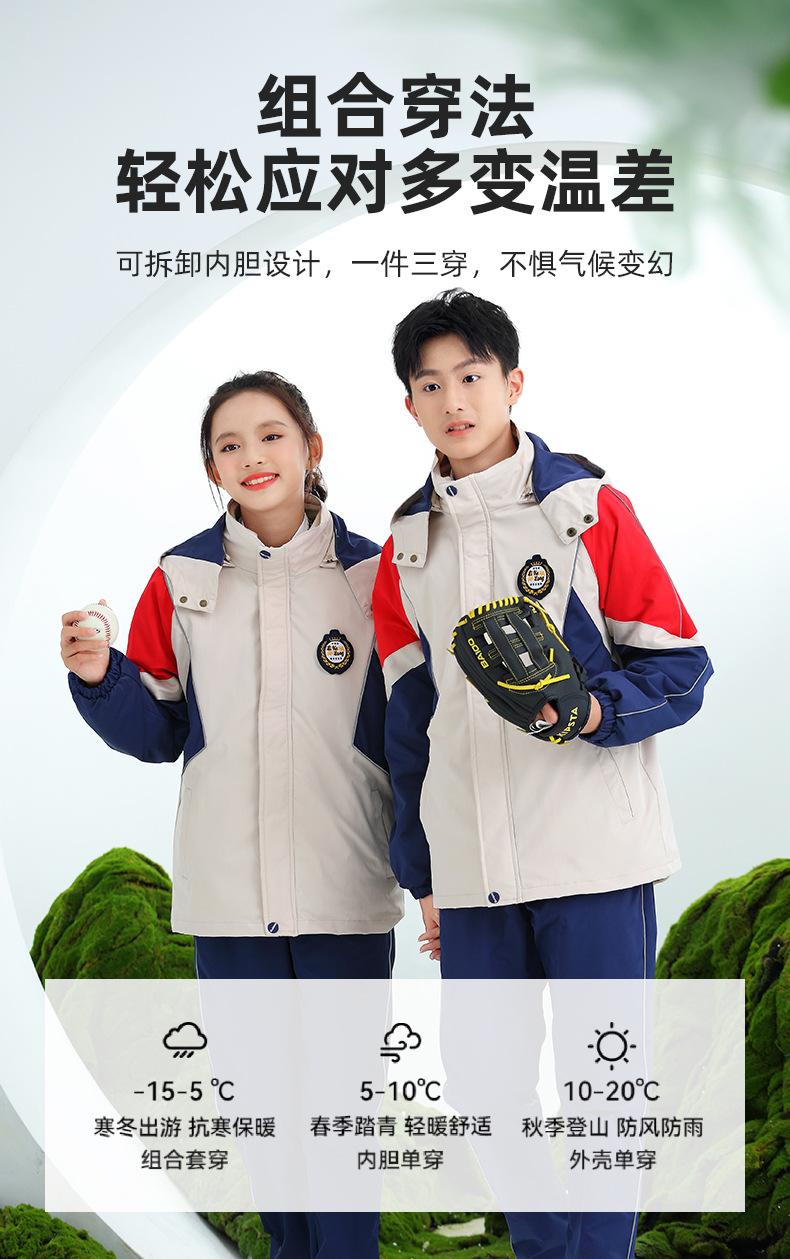 리코롱 2025 가을 겨울 신상 어린이 3-in-1 탈부착 가능한 재킷 세트 유치원 교복 입학 사진